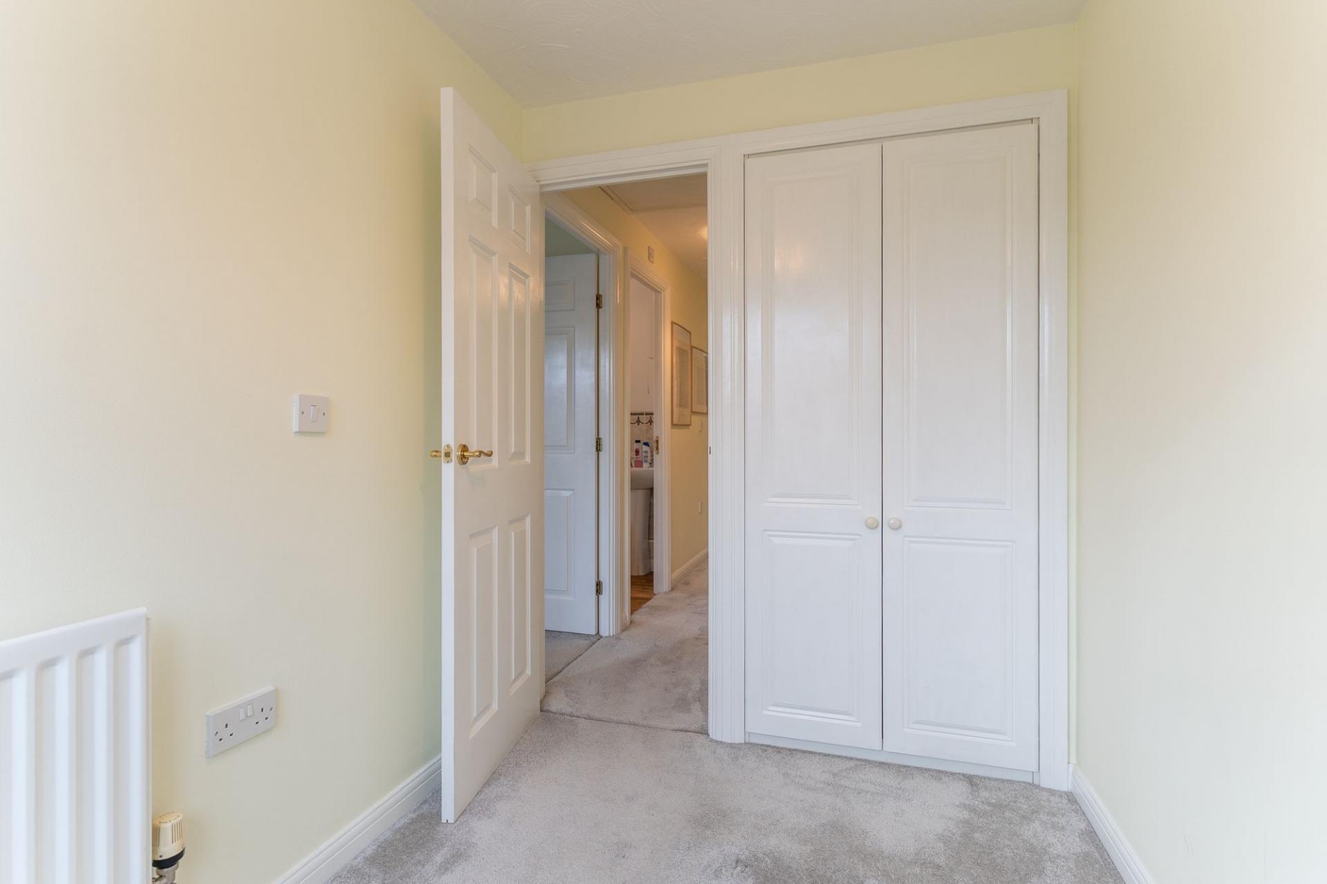 Externally, the property enjoys low-maintenance outdoor spaces and practical amenities. To the right-hand side, there is a driveway and garage, providing off-road parking and additional storage with an electric garage door. To the rear, the property features an enclosed garden, designed for easy upkeep and offering a pleasant area for outdoor seating, dining, or relaxing. The garden’s layout provides both privacy and functionality, making it ideal for families or those seeking a peaceful outdoor retreat.