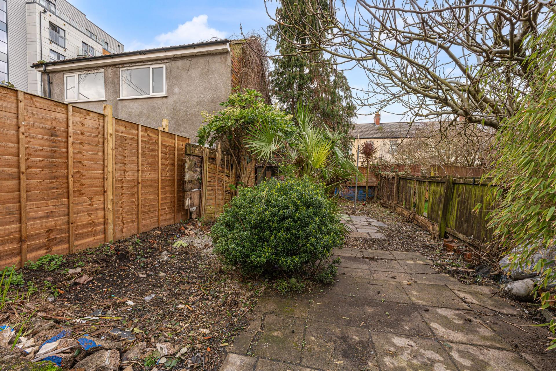 The rear garden is fully enclosed, and features an extensive patio space complimented by mature trees and a helpful storage shed - offering ample space for relaxing and entertaining, as well as a great deal of potential for landscaping. On-road parking is readily available to the front of the house.