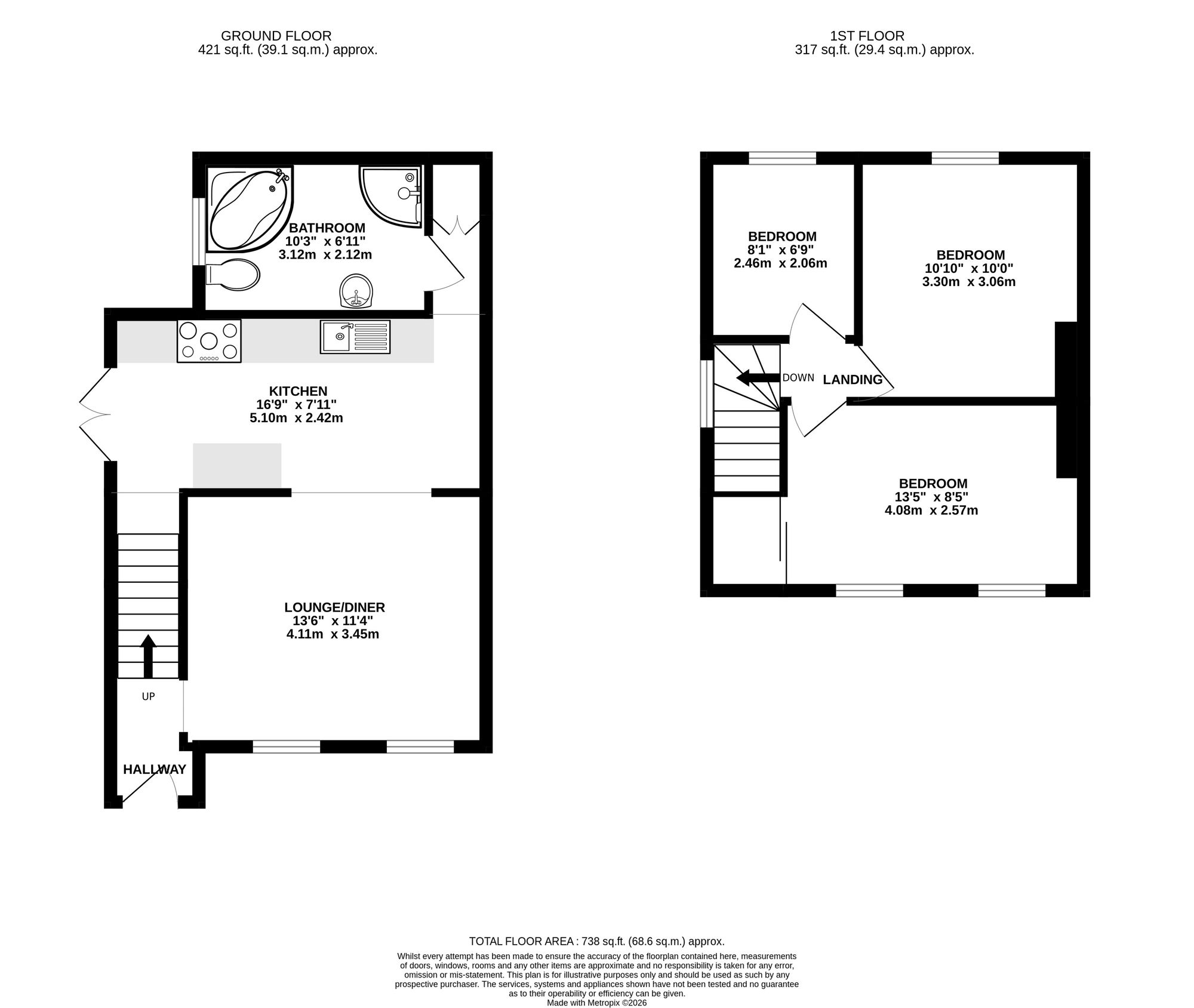 On the first floor are three bedrooms, comprising two comfortable double rooms and a single bedroom, offering versatile accommodation suitable for families, guests or home working.