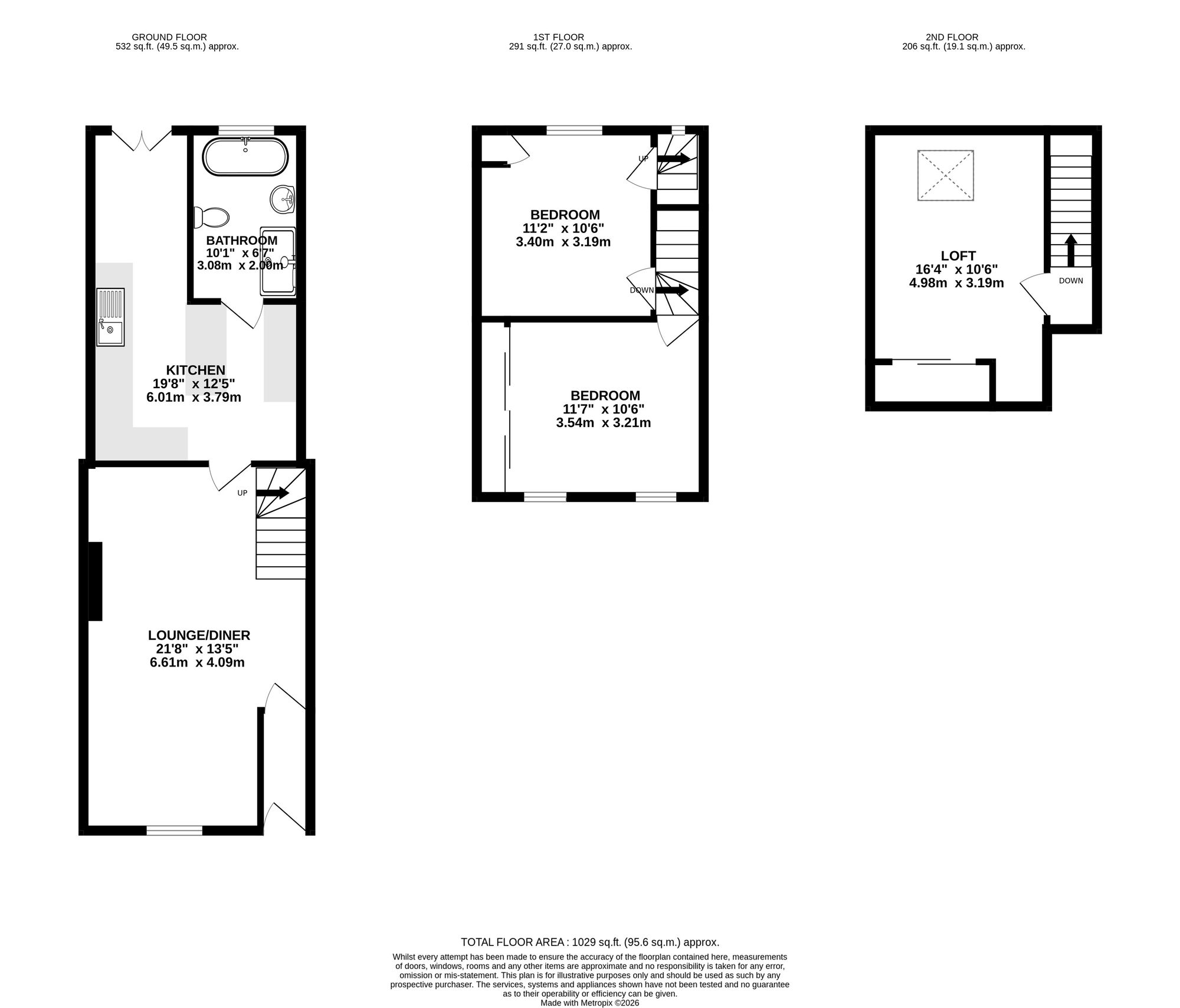 You enter the property into an initial hallway, which leads through to the main living area. The ground floor features an open plan lounge and dining room, characterised by tall ceilings and offering a spacious and versatile layout. This area also provides access to the staircase leading to the first floor and through to the kitchen, which offers ample storage and workspace. The kitchen benefits from patio doors opening out to the rear garden and also provides access to the ground floor bathroom.