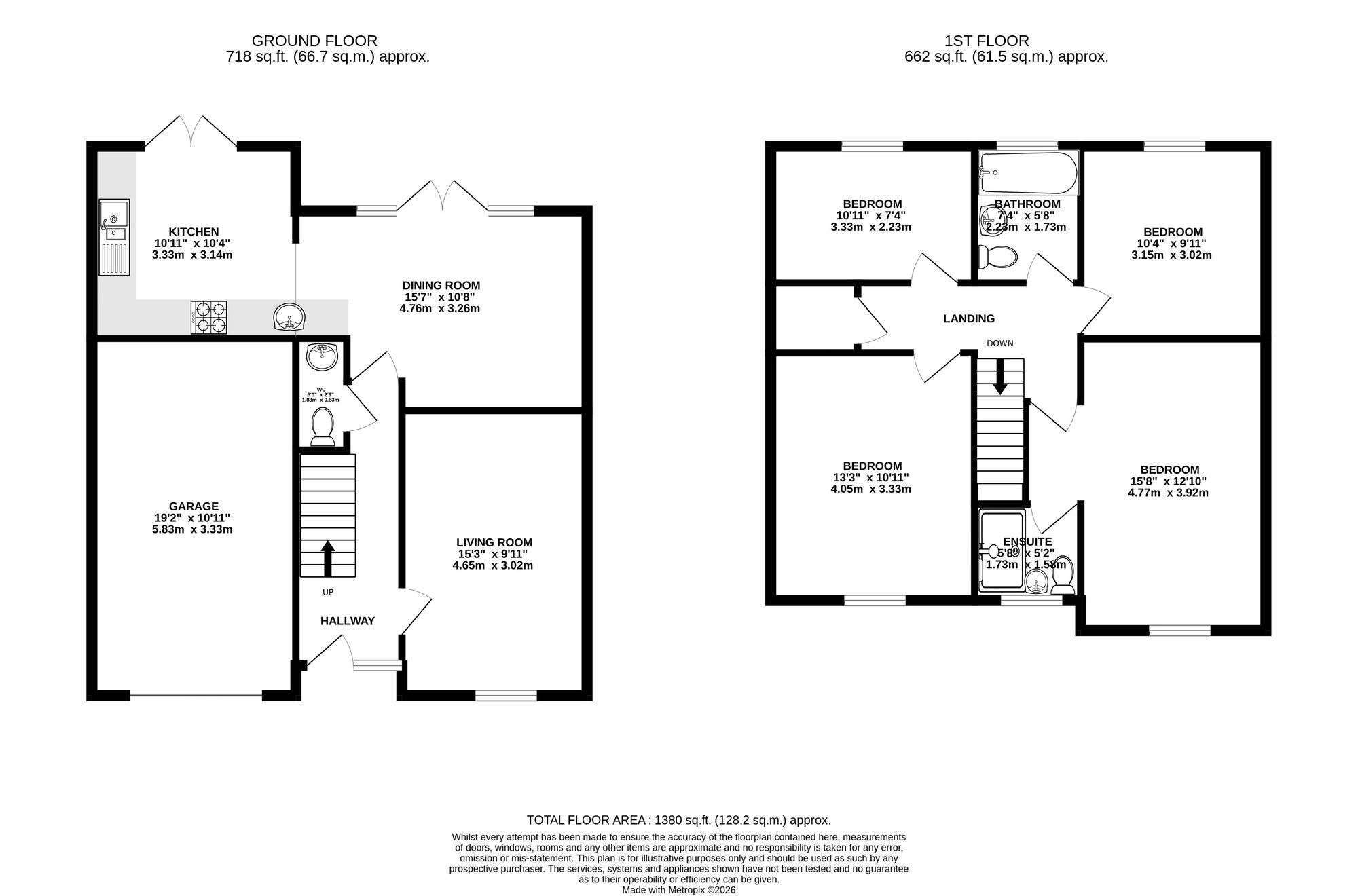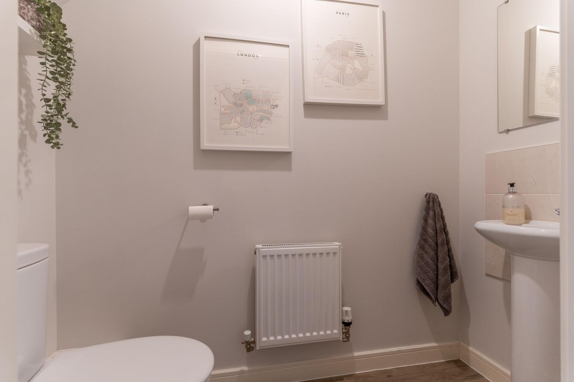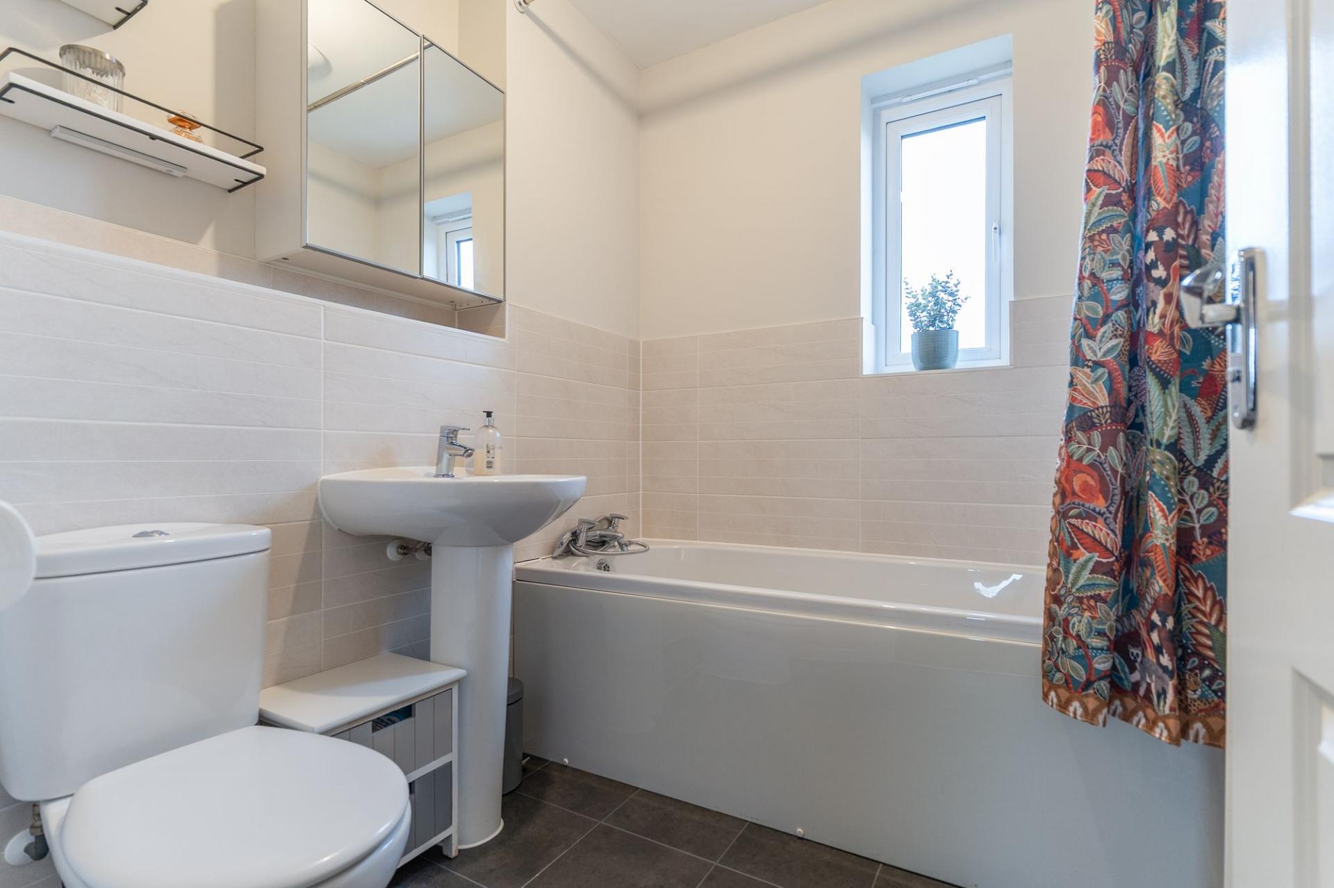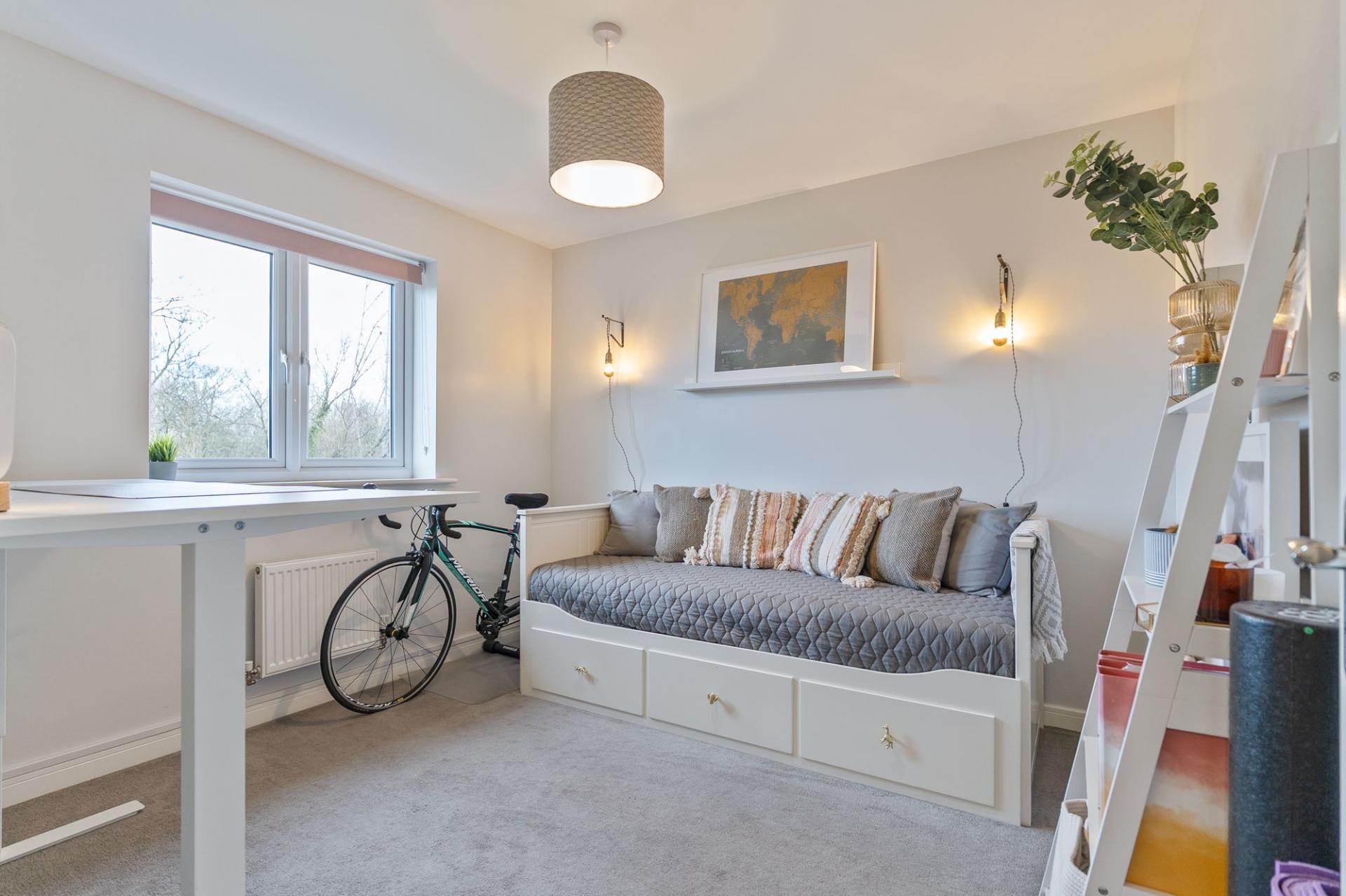The first floor comprises four well-proportioned bedrooms and the family bathroom. There are three comfortable double bedrooms along with a large single bedroom, ideal for a child’s room, home office or dressing room. The primary bedroom further benefits from a modern en-suite shower room, while the remaining bedrooms are served by a well-appointed family bathroom. The primary and secondary bedrooms also benefit from air conditioning.
