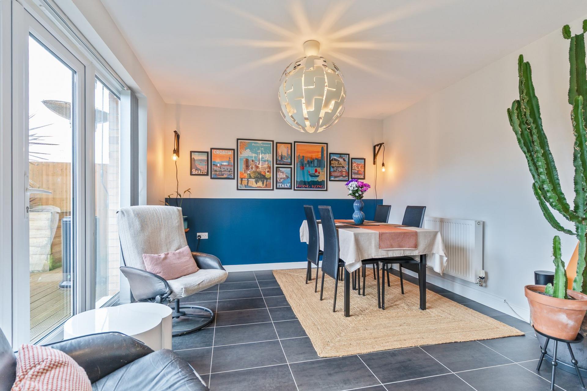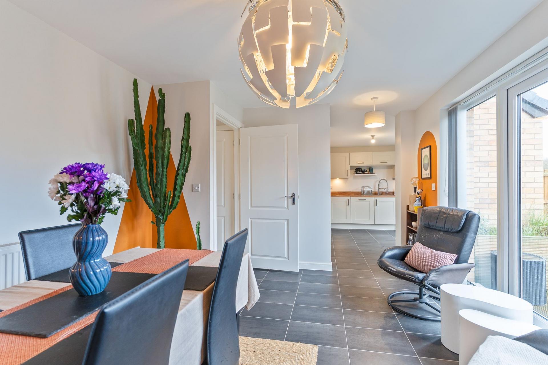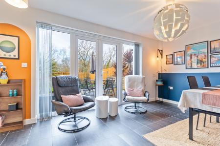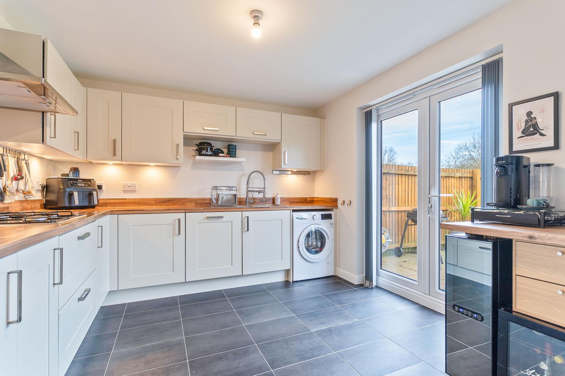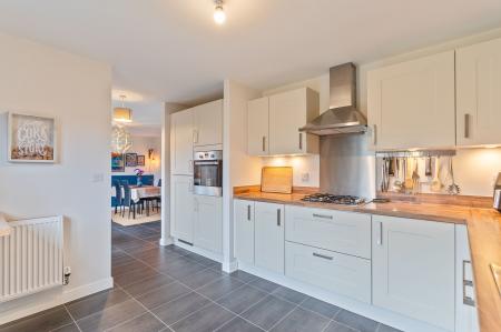 To the rear of the property is the spacious and stylish open plan kitchen/diner, featuring a good sized fitted kitchen with generous unit and worktop space, integrated appliances and plenty of room for dining, creating a fantastic sociable hub for family life.