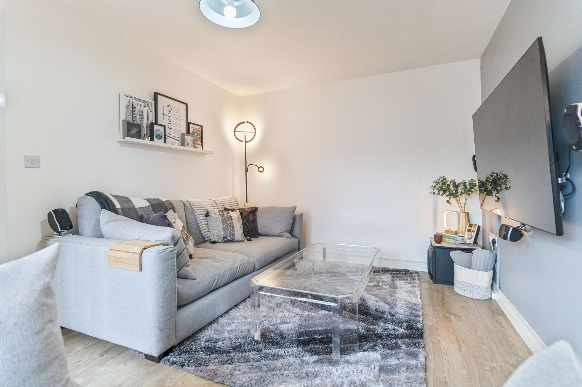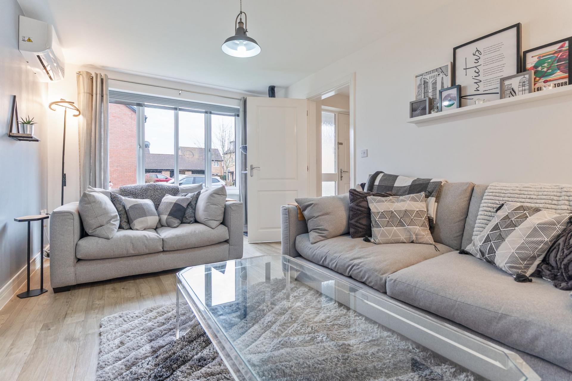Upon entering the property, you are welcomed into a bright and well-presented hallway providing access to the main living areas, a convenient ground floor cloakroom and the staircase leading to the first floor. To the right sits the beautifully presented lounge, a comfortable and inviting space with ample room for a range of seating arrangements, ideal for both relaxing and entertaining and further enhanced by the benefit of air conditioning.