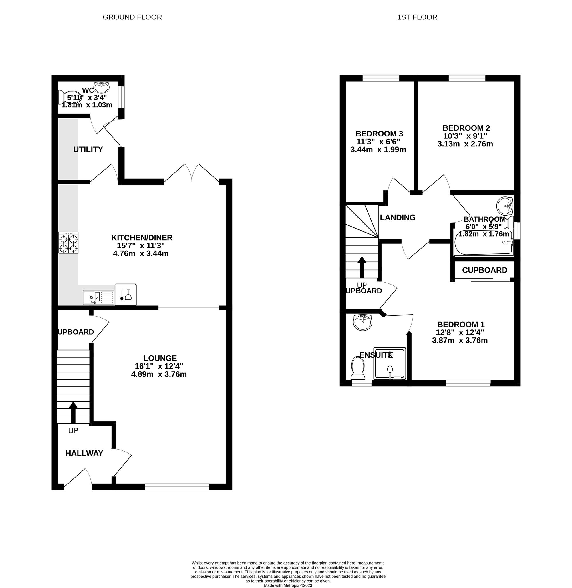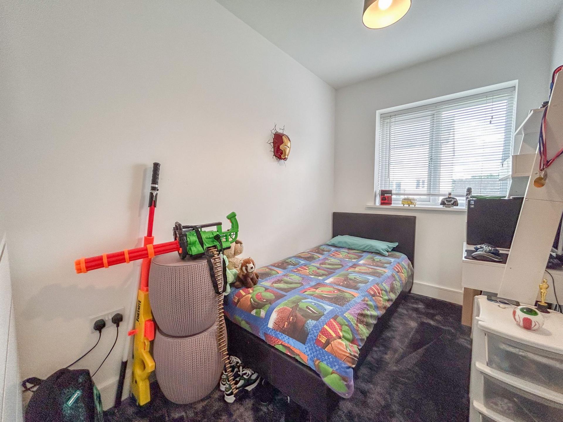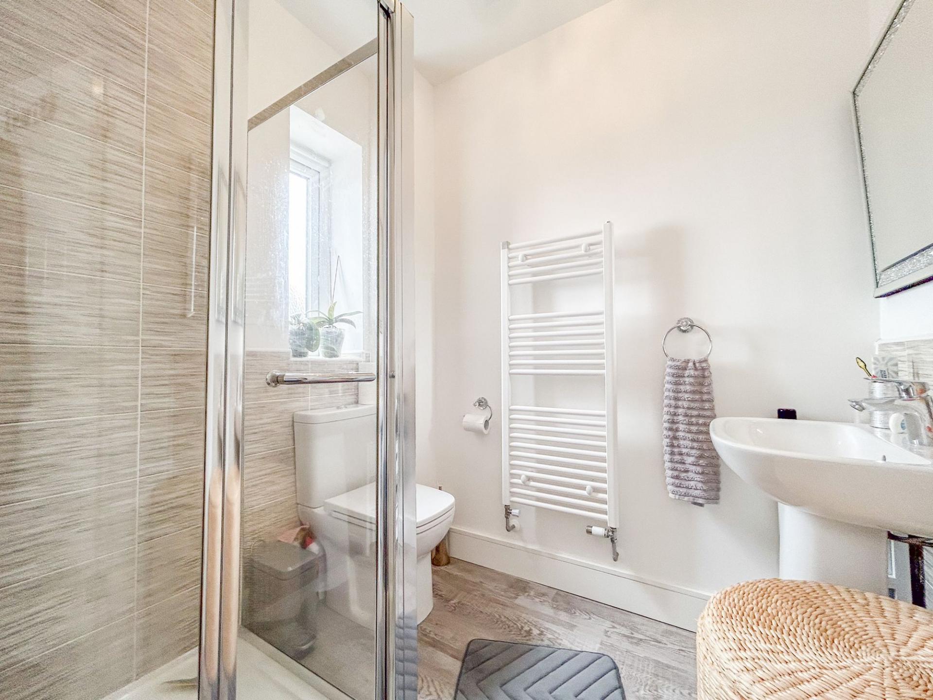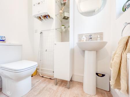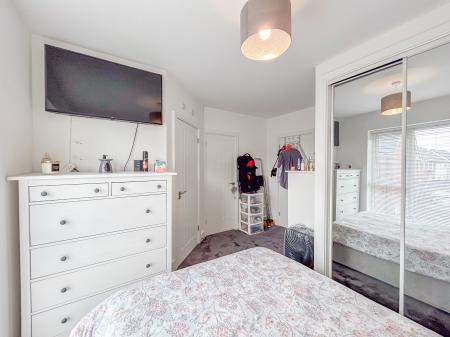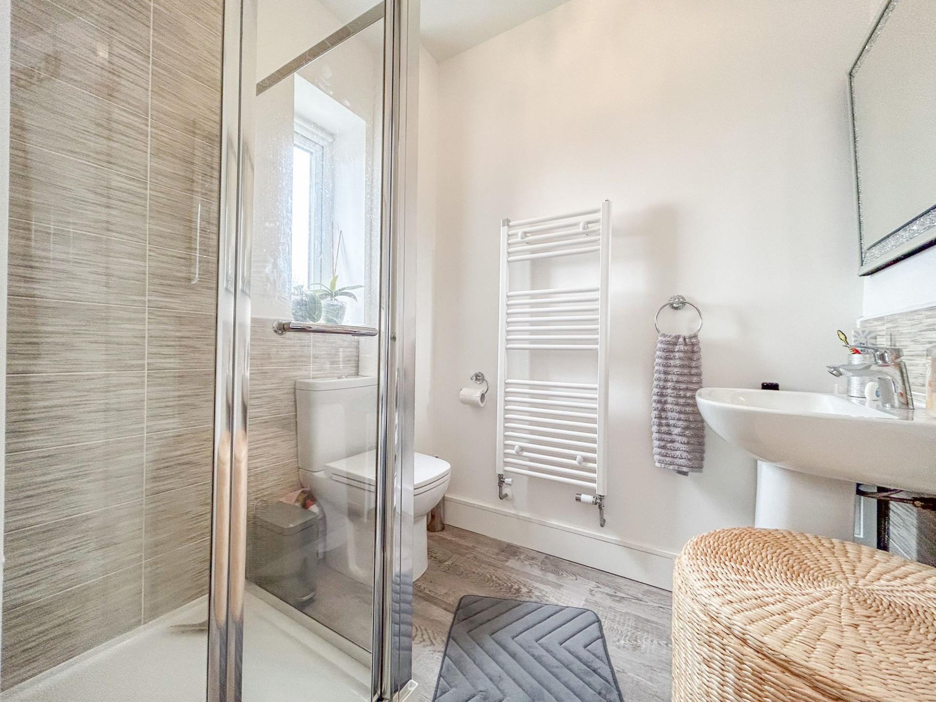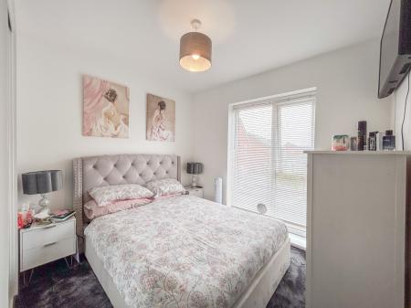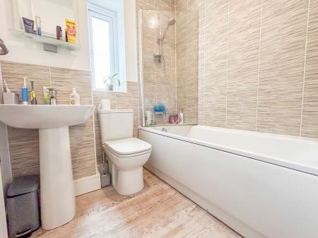 To the first floor there are three bedrooms, two of which are double and the third a comfortable single. The principal bedroom benefits from fitted storage, ideal for utilising space. There is an ensuite shower room, while the family bathroom from the landing has a bath suite.