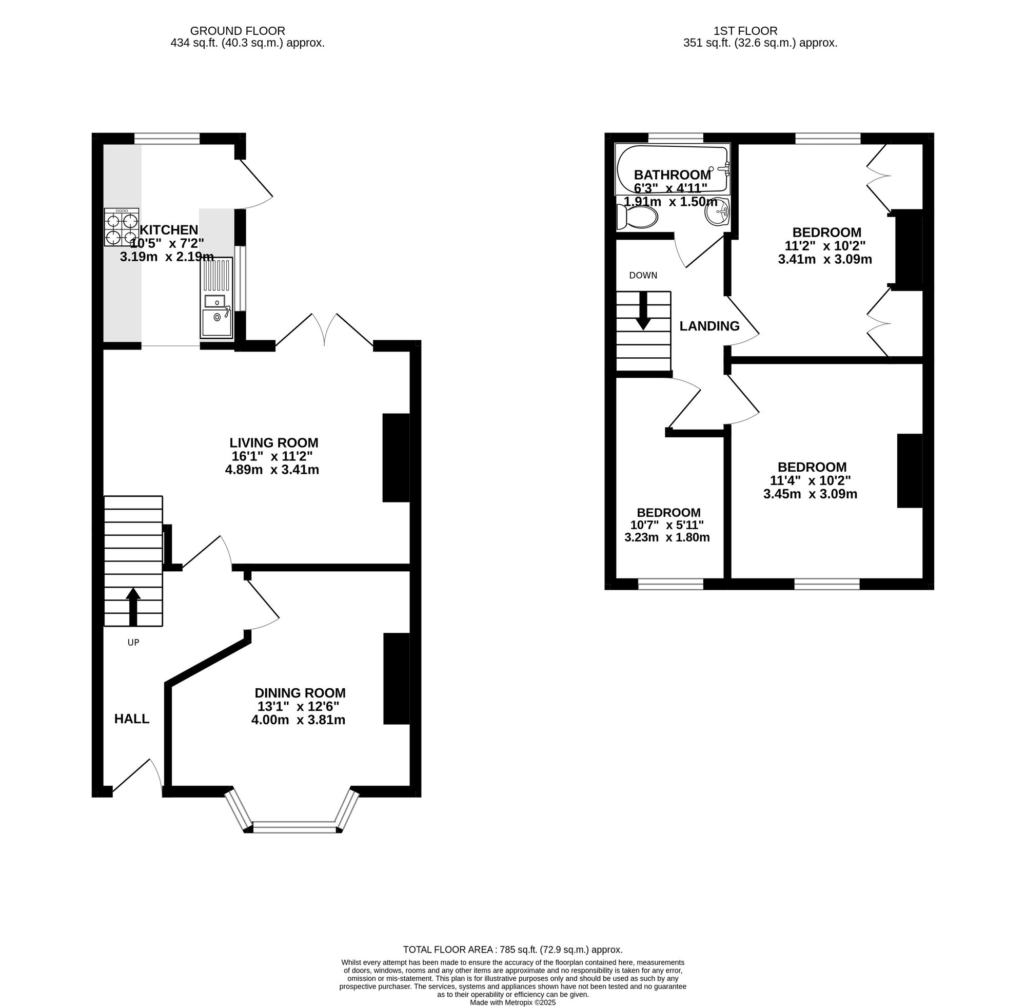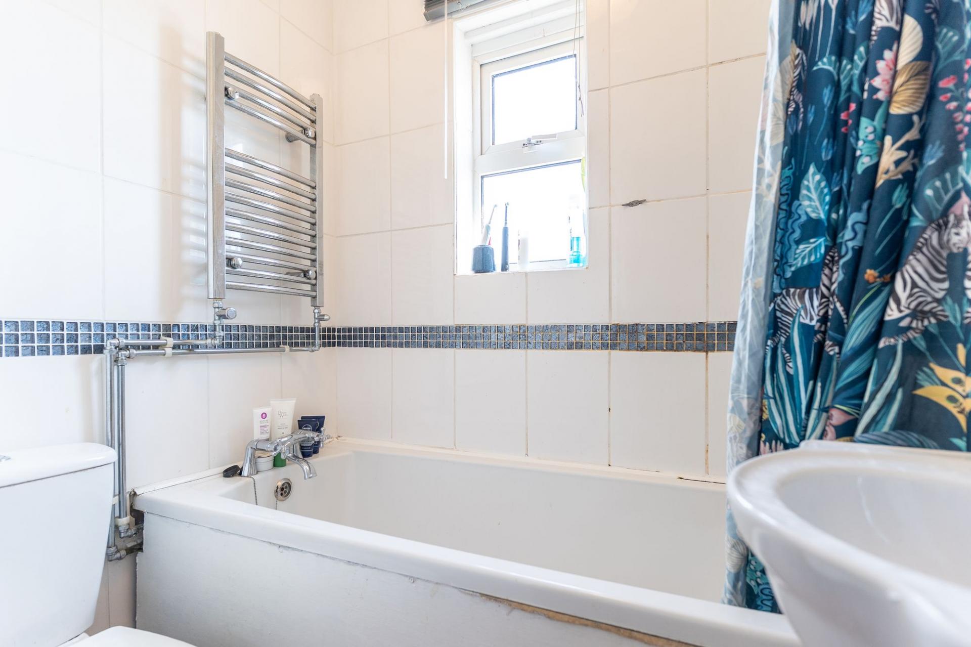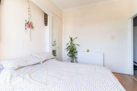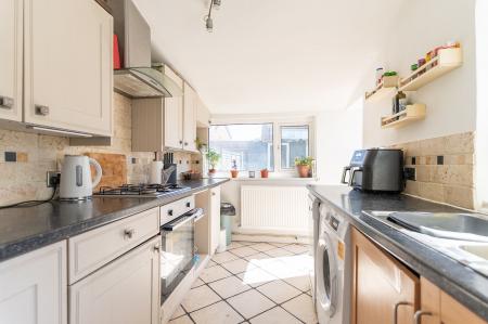 Adjoining the living room is a galley-style kitchen, well-equipped with worktop and storage space, offering functionality and ease of use. It also provides access to the rear garden.