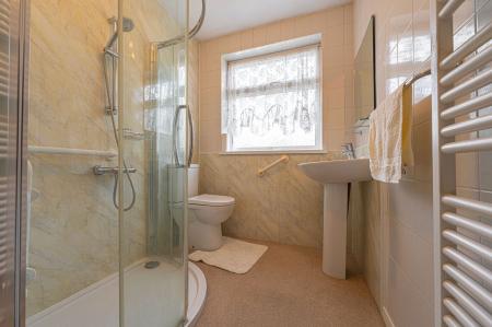 To the first floor we have three bedrooms, two of which are generous doubles whilst the third is a comfortable single, providing a great space for a dressing room, or a potential office for those who frequently work from home. The primary bedroom also impresses with a wide array of fitted wardrobes and storage cabinets, some of which are accessed by a wall of sliding mirrored doors. The family bathroom is also on the first floor, featuring a toilet, walk-in-shower, and a helpful airing cupboard.