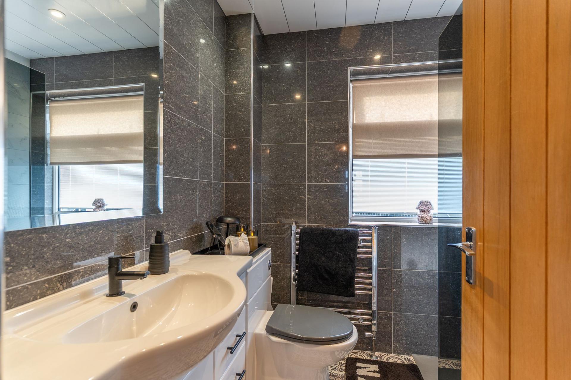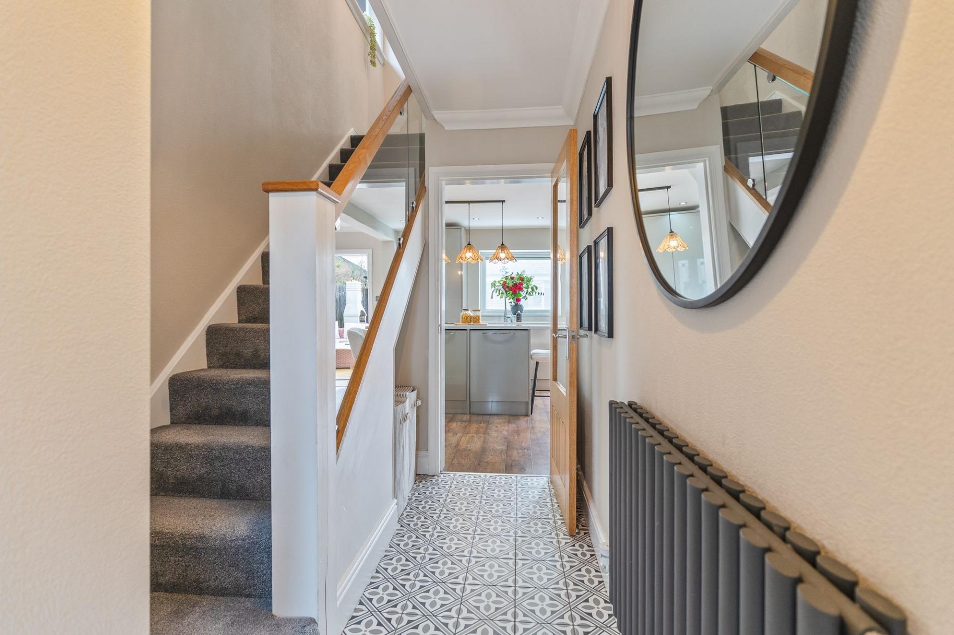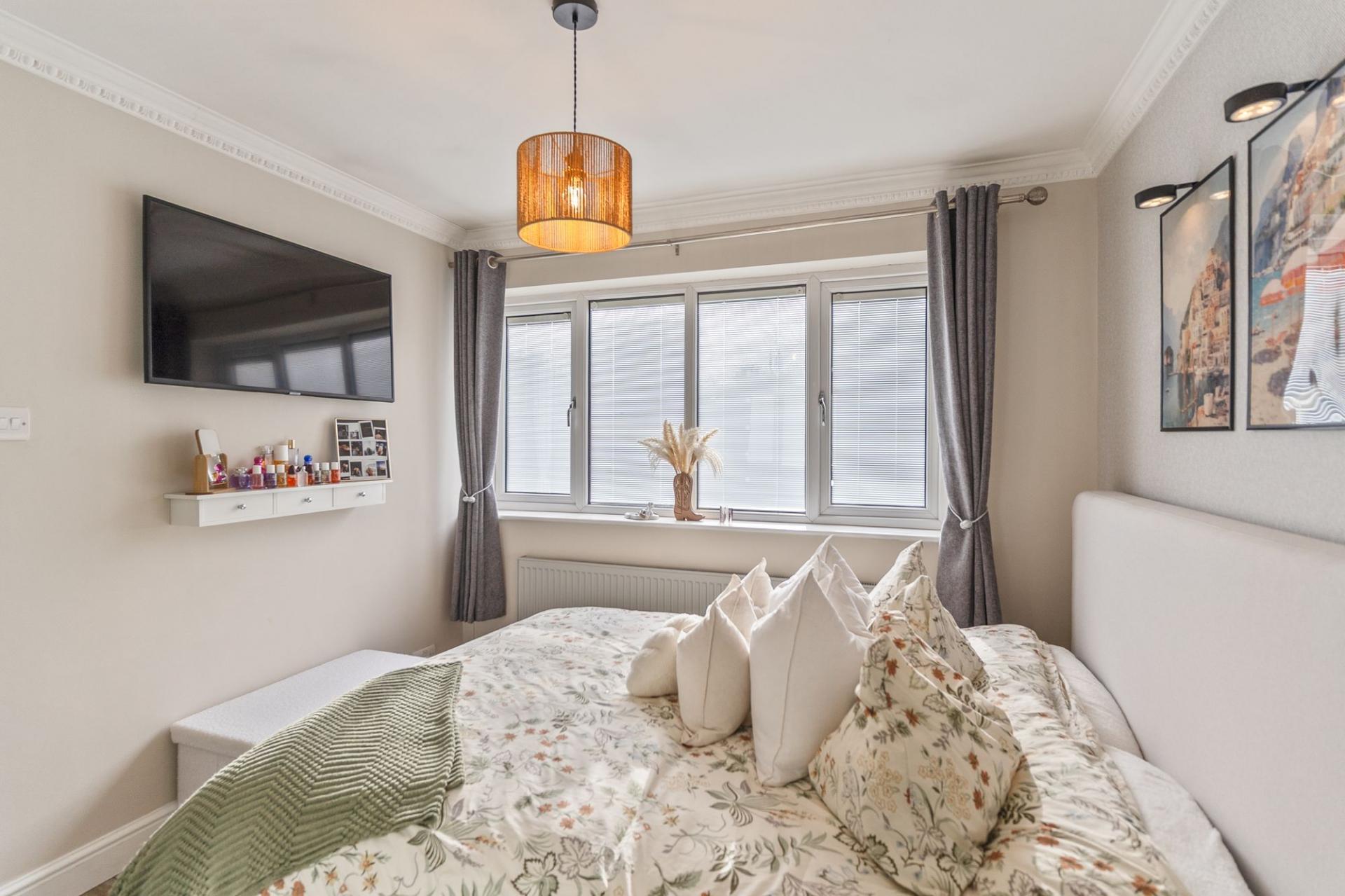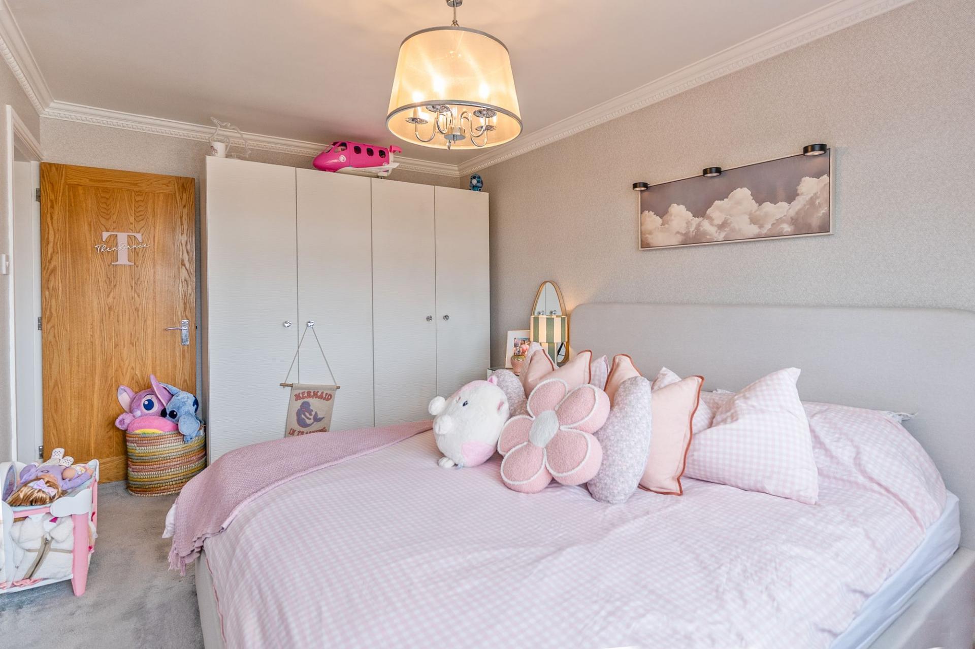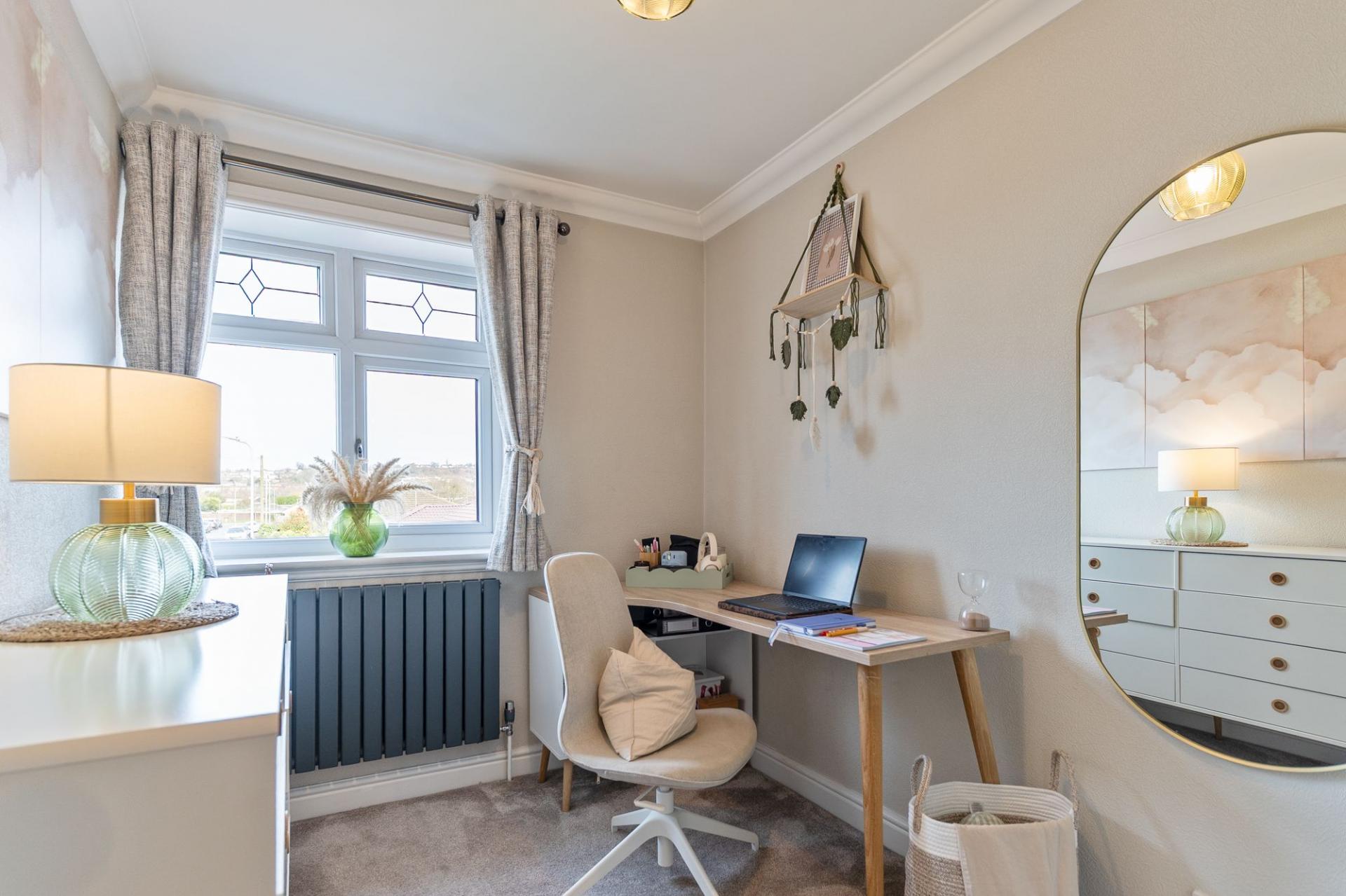 On the first floor are three well-presented bedrooms and the family bathroom. Two of the bedrooms are comfortable doubles, while the third is a generously sized single room, ideal as a child’s bedroom, guest room or home office. The bathroom is finished to a modern standard and fitted with a contemporary suite.