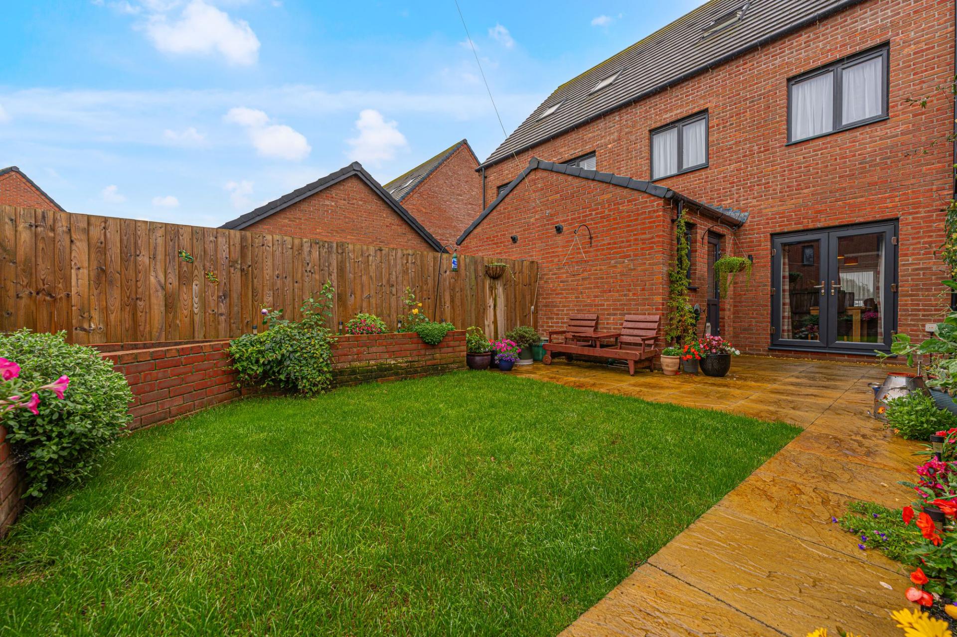 Stepping outside we have the wonderful garden at the rear of the property, which is fully enclosed and presented to an outstanding quality, with a seated patio area and a grass lawn, offering plenty of space for lounging, dining, and entertaining guests. The garden also features a glorious fish pond, and offers a gateway from the garden also takes us to the large driveway at the side of the house, which can provide off-road parking for two to three vehicles. The sizeable garage can also provide further parking and is a great space for overflow storage, as well as offering potential for conversion into a multi-function space, such as a home gym or games room.