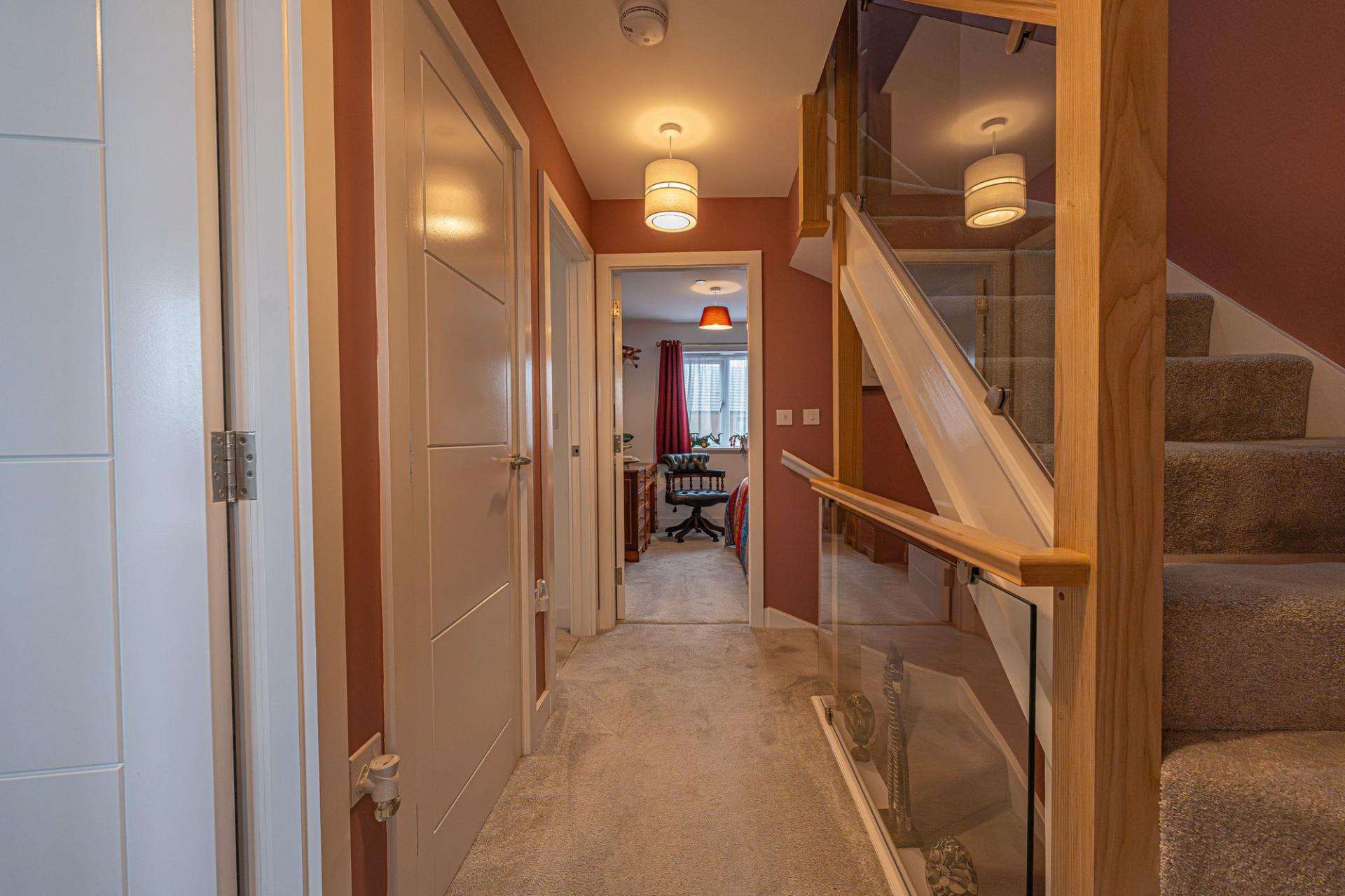 To the middle floor we have the first three bedrooms, which can all accommodate double beds, while all offering great versatility for a home office, dressing room or nursery, if surplus to requirements. These bedrooms share the family bathroom which can be found from the hallway, in addition to a helpful airing cupboard. Ascending upstairs once more we have the fourth and principal bedroom, which highlights plenty of natural light from multi-aspect windows. In addition to the great privacy at the peak of the property, this master bedroom also has access to a sleek en-suite shower room, and a huge array of fitted cupboards for optimal storage space.