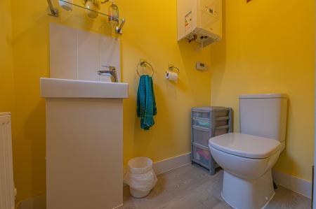 Entering through the front of this fantastic family home, we are greeted with a spacious and bright living room that is perfect for a variety of furniture layouts, and great for welcoming guests. There is also a fitted storage cupboard under the stairs for added convenience, while the living room features an unrestricted walkway to lead us into the open plan kitchen and diner, which is flooded by light through double doors that open to the rear garden, providing a warm and relaxing atmosphere perfect for cooking and enjoying meals with friends and family. The kitchen itself offers a user friendly design, plenty of storage options, and various integrated appliances, as well as connecting to a useful utility room, where we can find space for multiple machines, and a convenient guest toilet beyond.