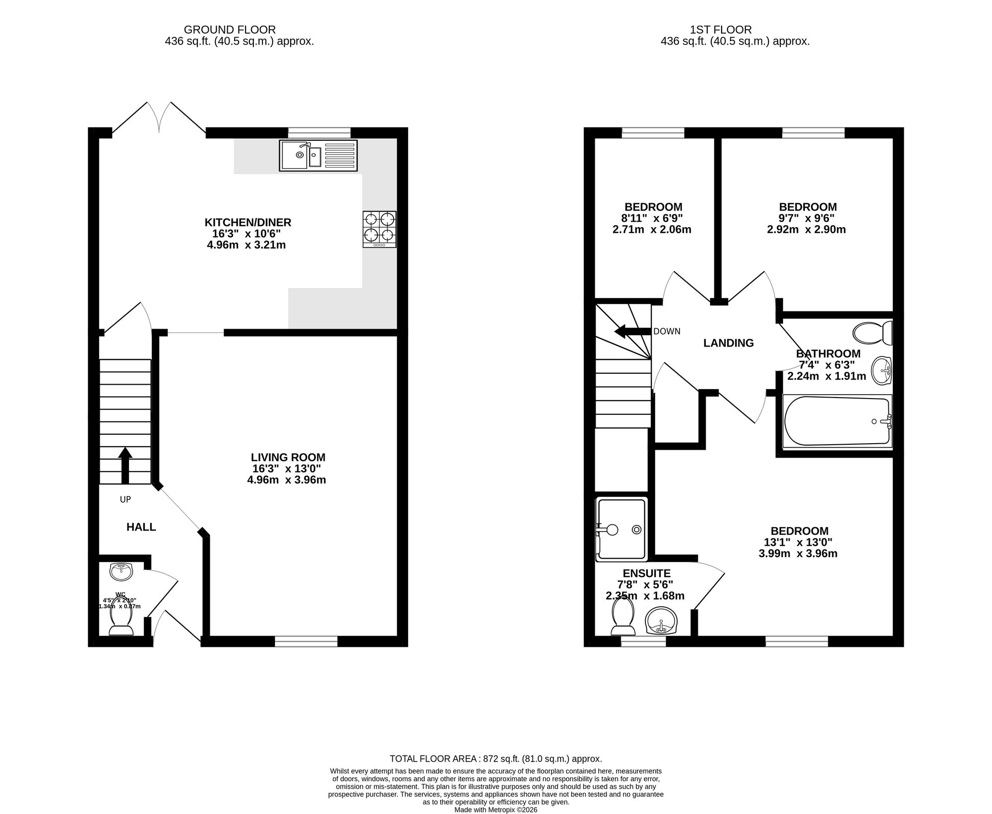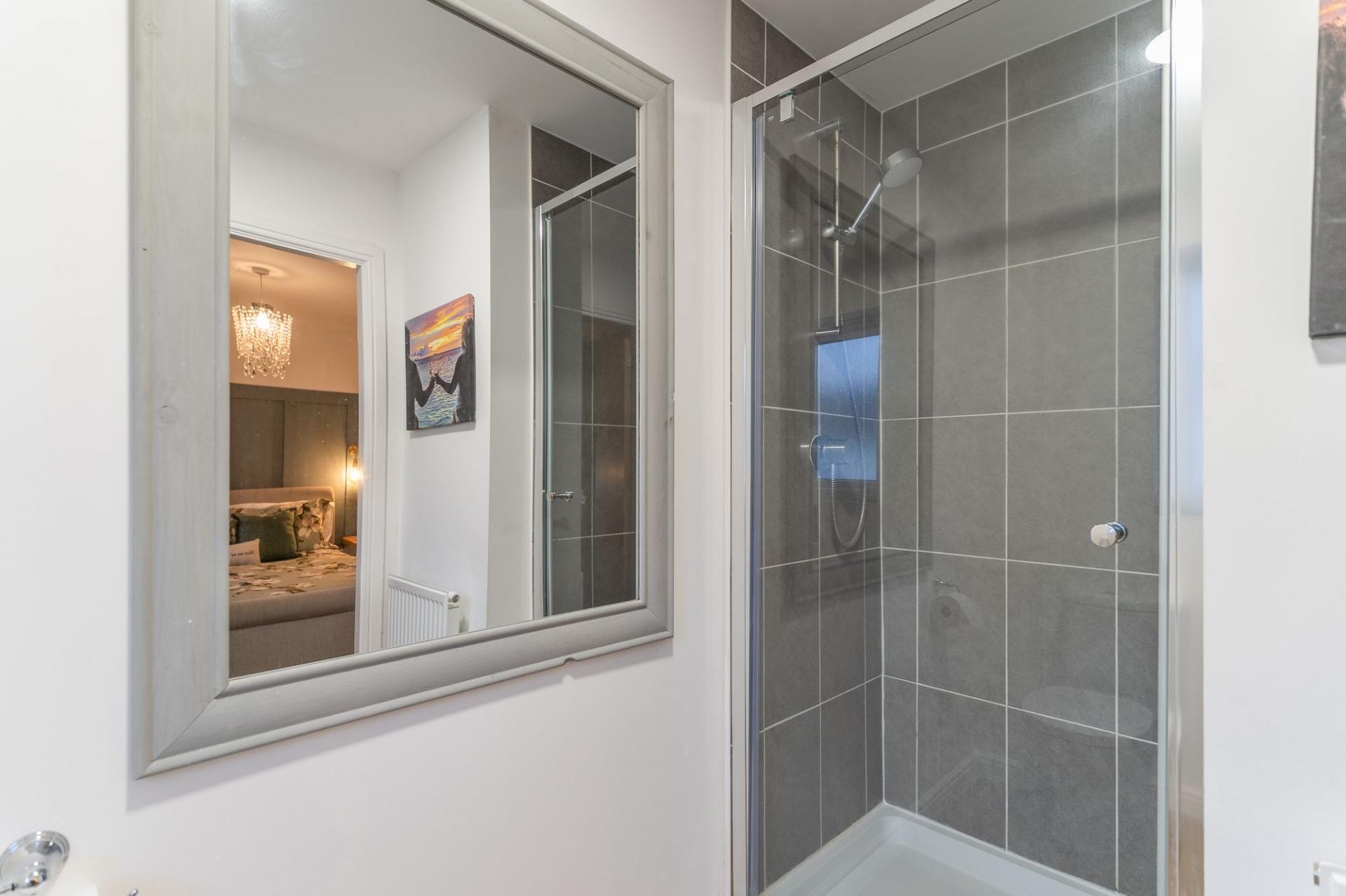 The first floor comprises three bedrooms and the family bathroom. There are two generously sized double bedrooms and a single room suitable for a child’s bedroom, home office or nursery. The primary bedroom further benefits from its own en-suite shower room, adding a touch of privacy and convenience.