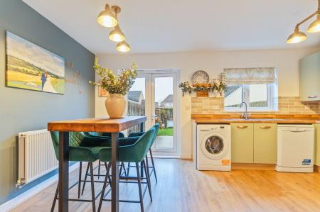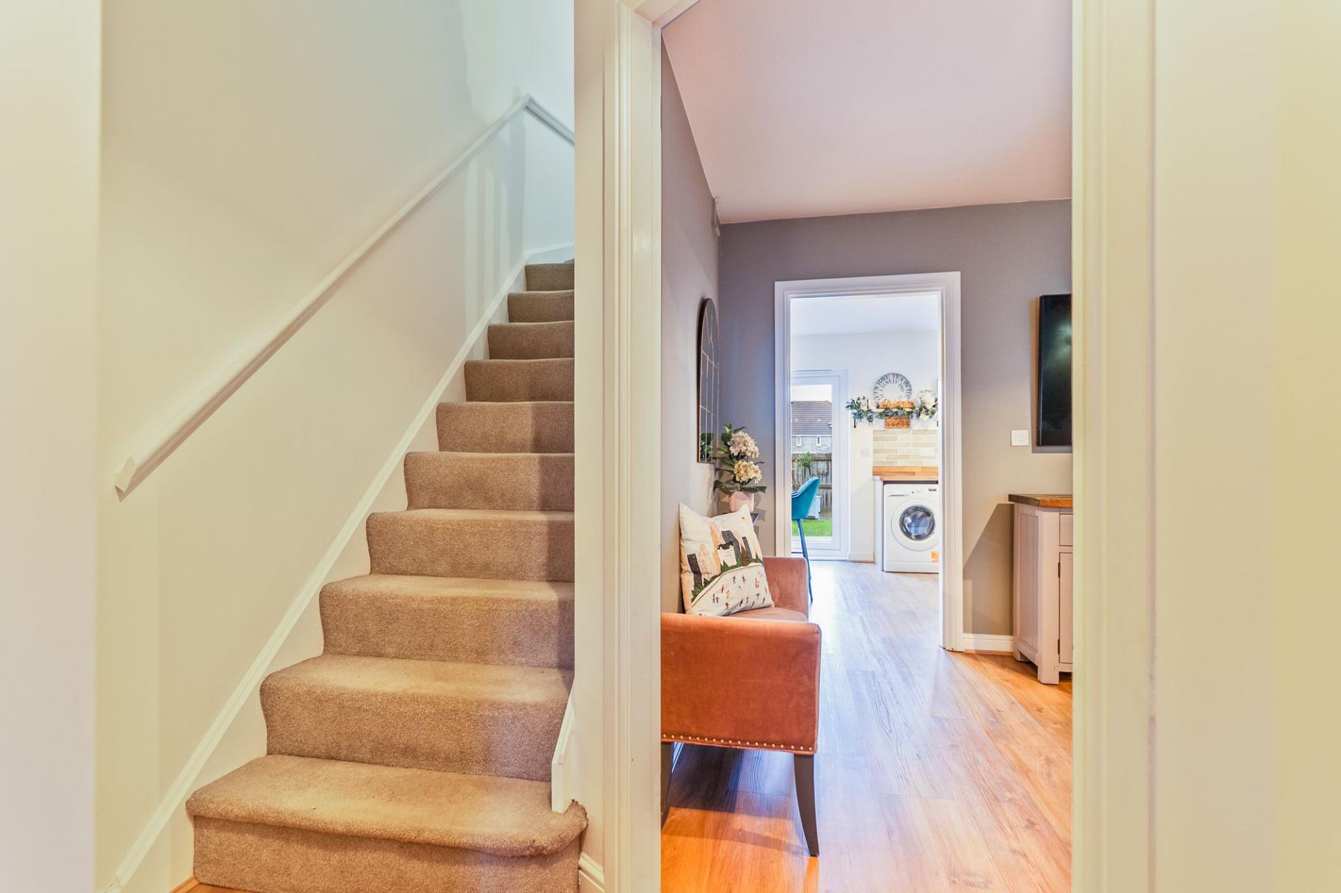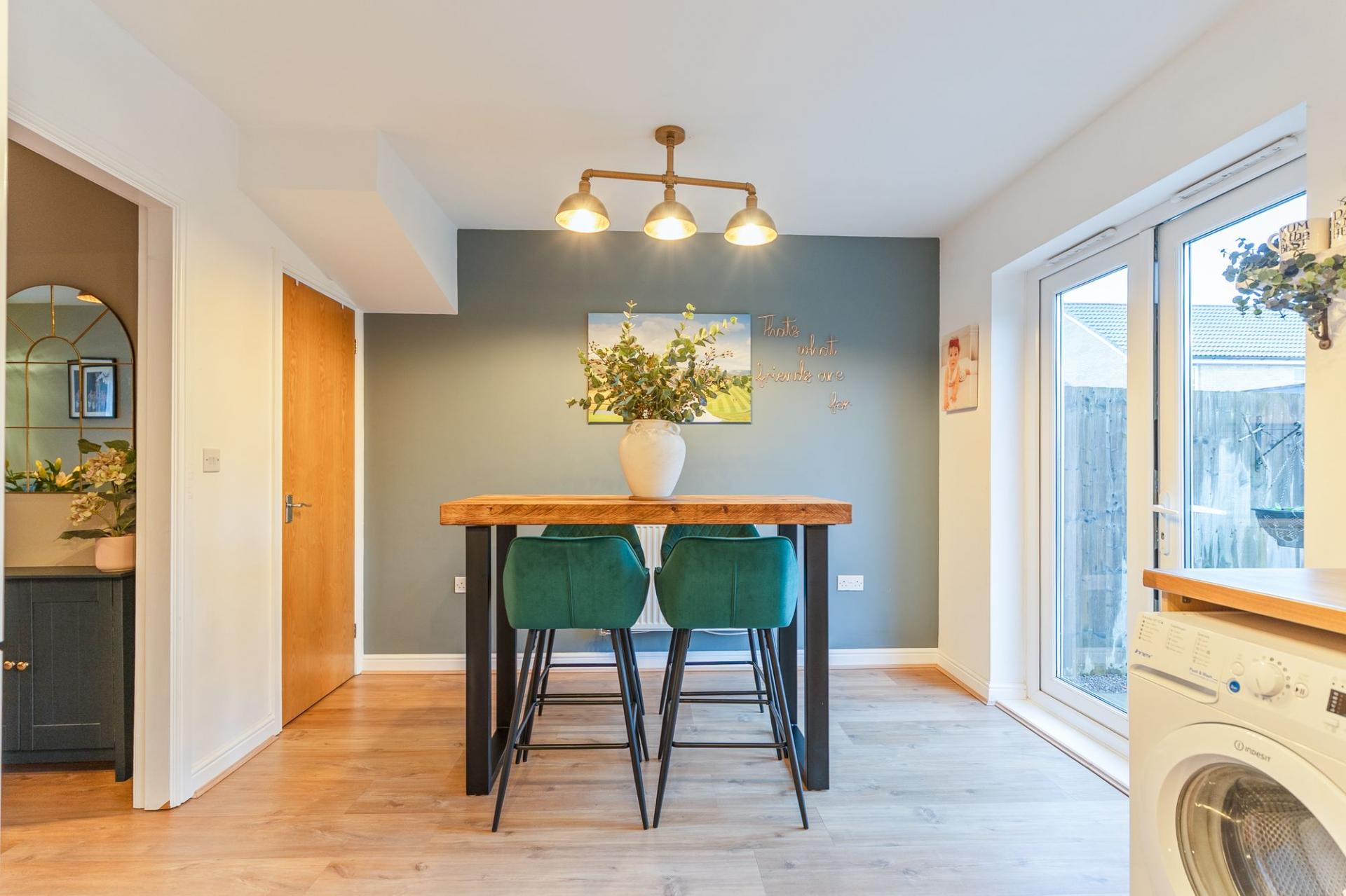 Upon entering the property, you are welcomed into a hallway with a convenient cloakroom positioned to the left, along with access to the main living area and the staircase leading to the first floor. The living room is well presented and offers ample space for a variety of seating arrangements, creating a comfortable environment for relaxation. To the rear of the home is the open-plan kitchen/diner, featuring a good-sized fitted kitchen with plenty of storage and worktop space. Patio doors open directly onto the rear garden, allowing natural light to flood the space and creating an ideal setting for family dining and entertaining.