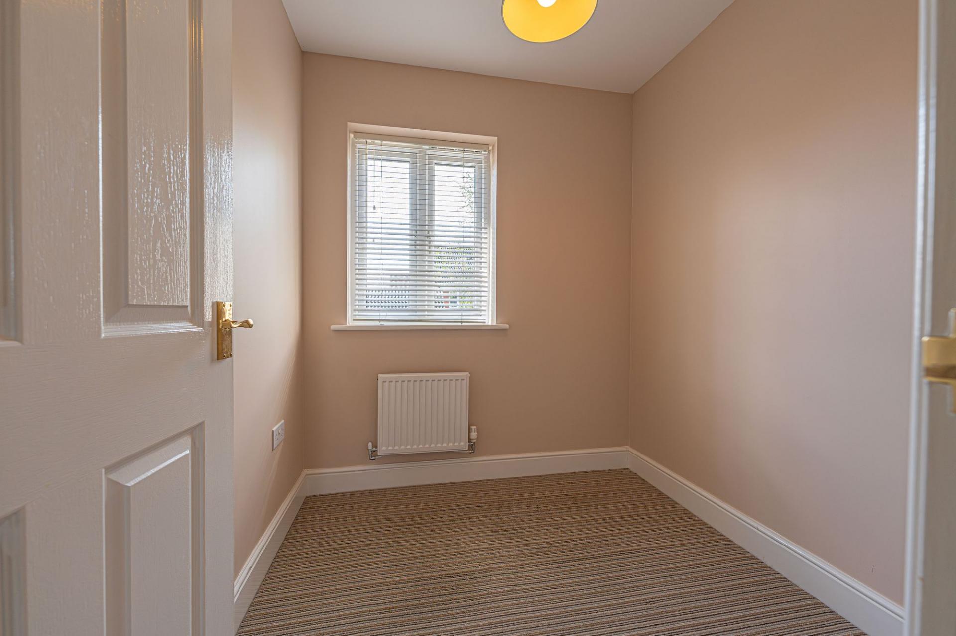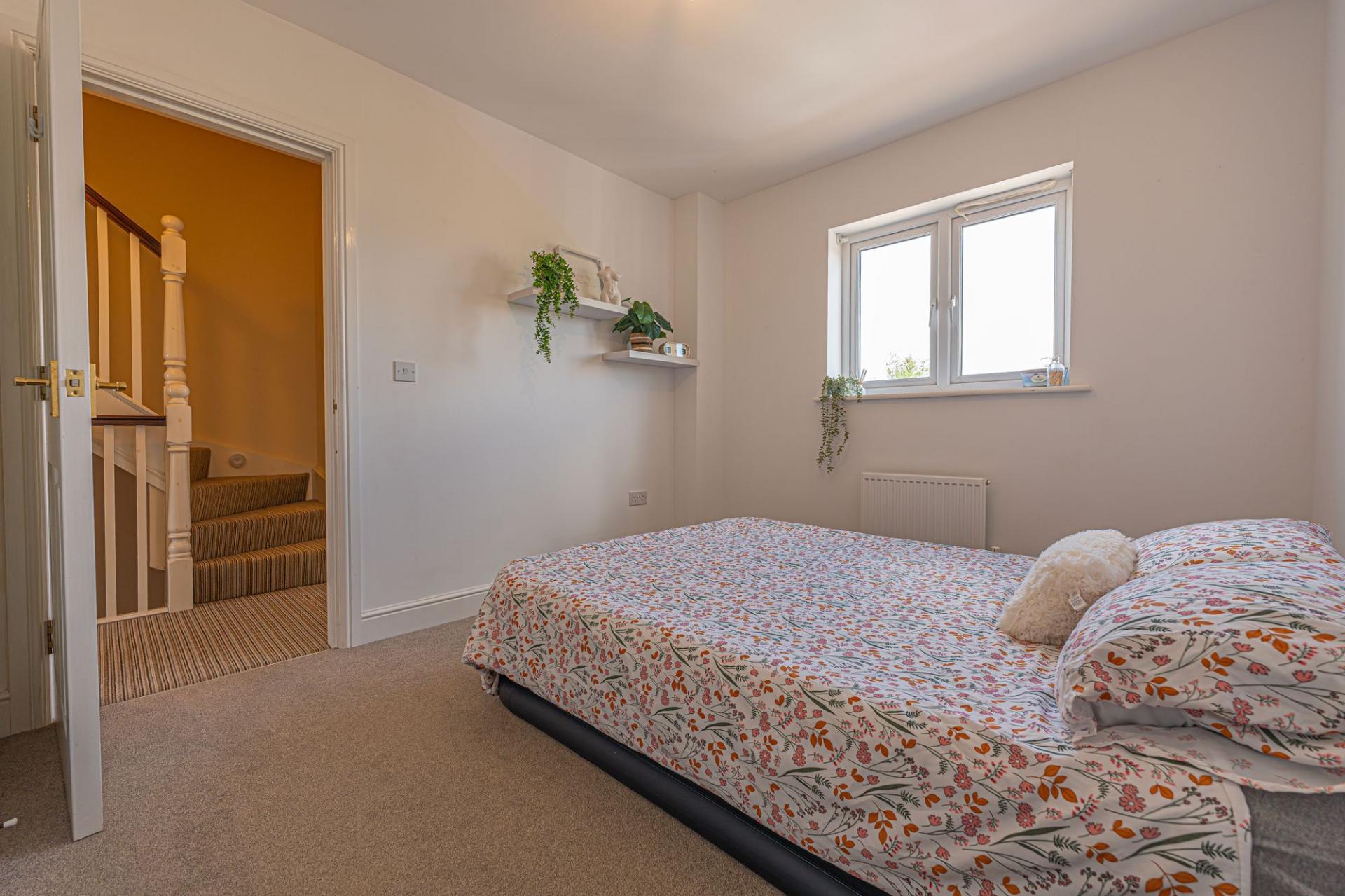To the first floor there are three bedrooms, two of which are a generous double rooms and the third a practical single. The family bathroom can be found from the landing, fitted with a bath suite. Two cupboards can also be found from the landing, providing brilliant storage. Ascending again we arrive at the second floor, home to the impressively sized primary bedroom, which is fitted convenient wardrobes for excellent storage space, as well as enjoying the added benefit of an en-suite shower room.