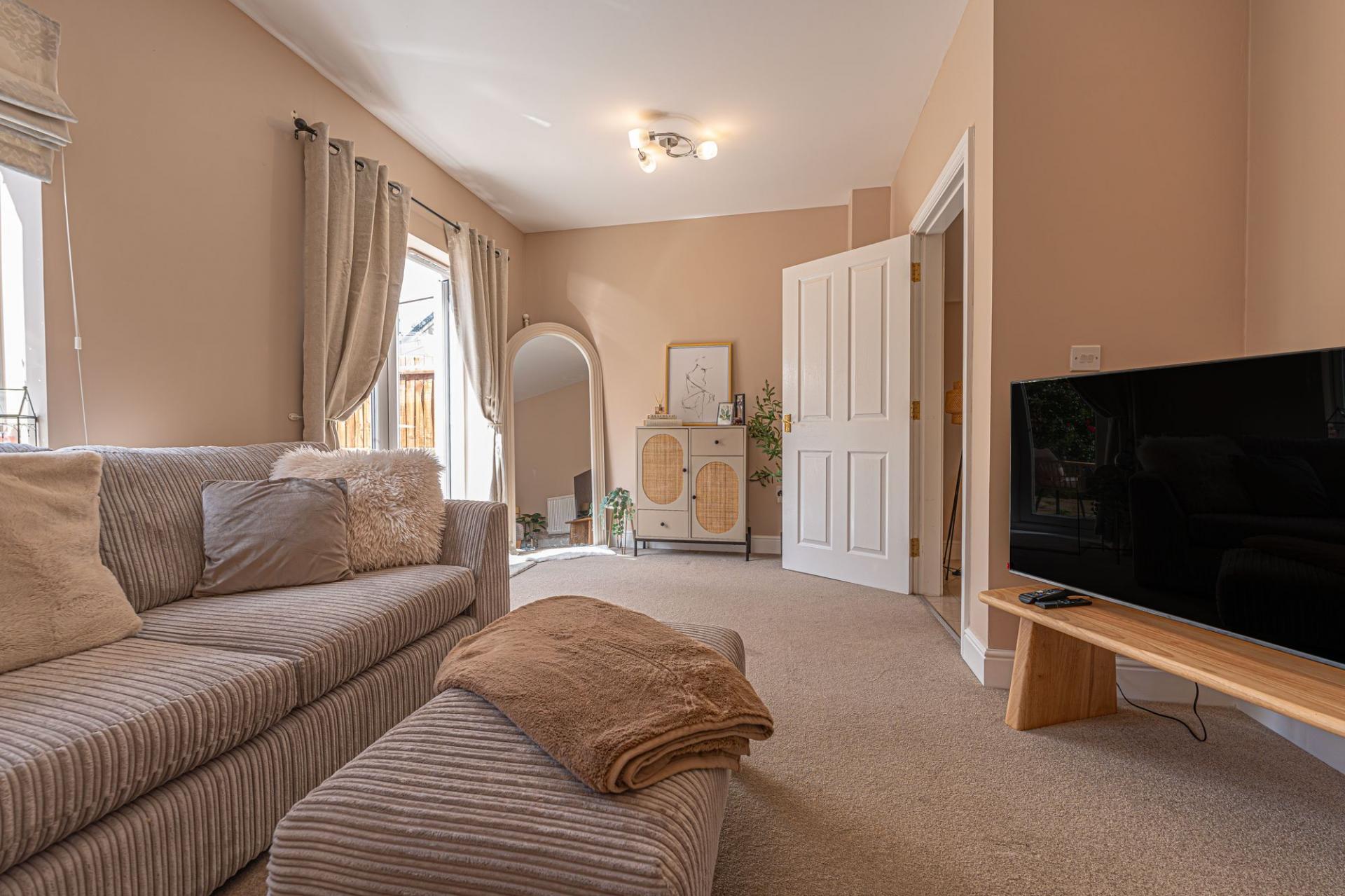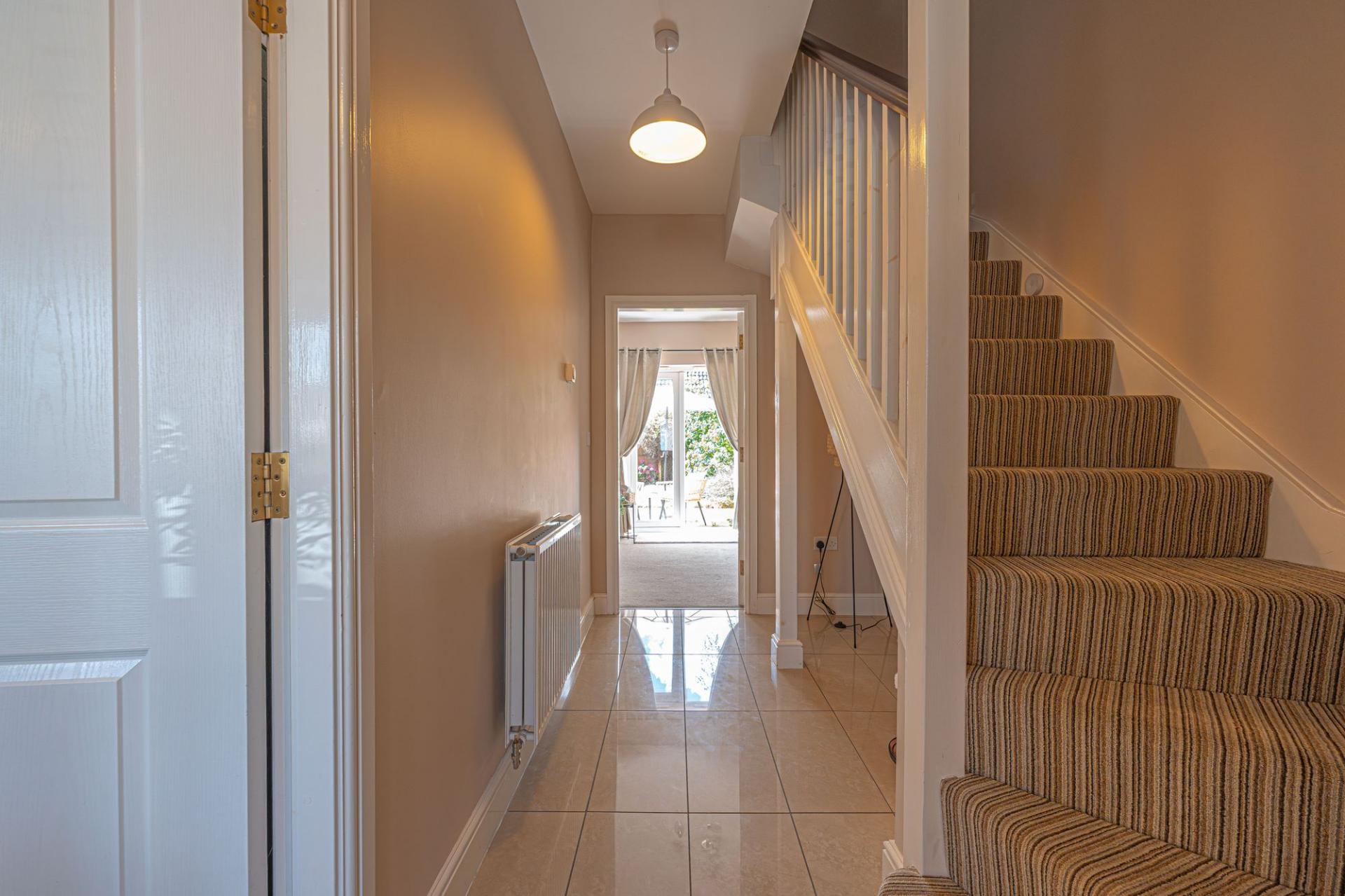 This well presented family home features a spacious lounge at the rear, which is flooded by natural light and perfect for relaxing and entertaining, while at the front of the house we have a stylish bay-fronted kitchen to the front of the property, which offers plenty of storage options and room for appliances. Both the lounge and kitchen would be well suited to double up as a dining room, offering great flexibility for residents. A convenient W.C and under stairs storage can be found from the hallway.