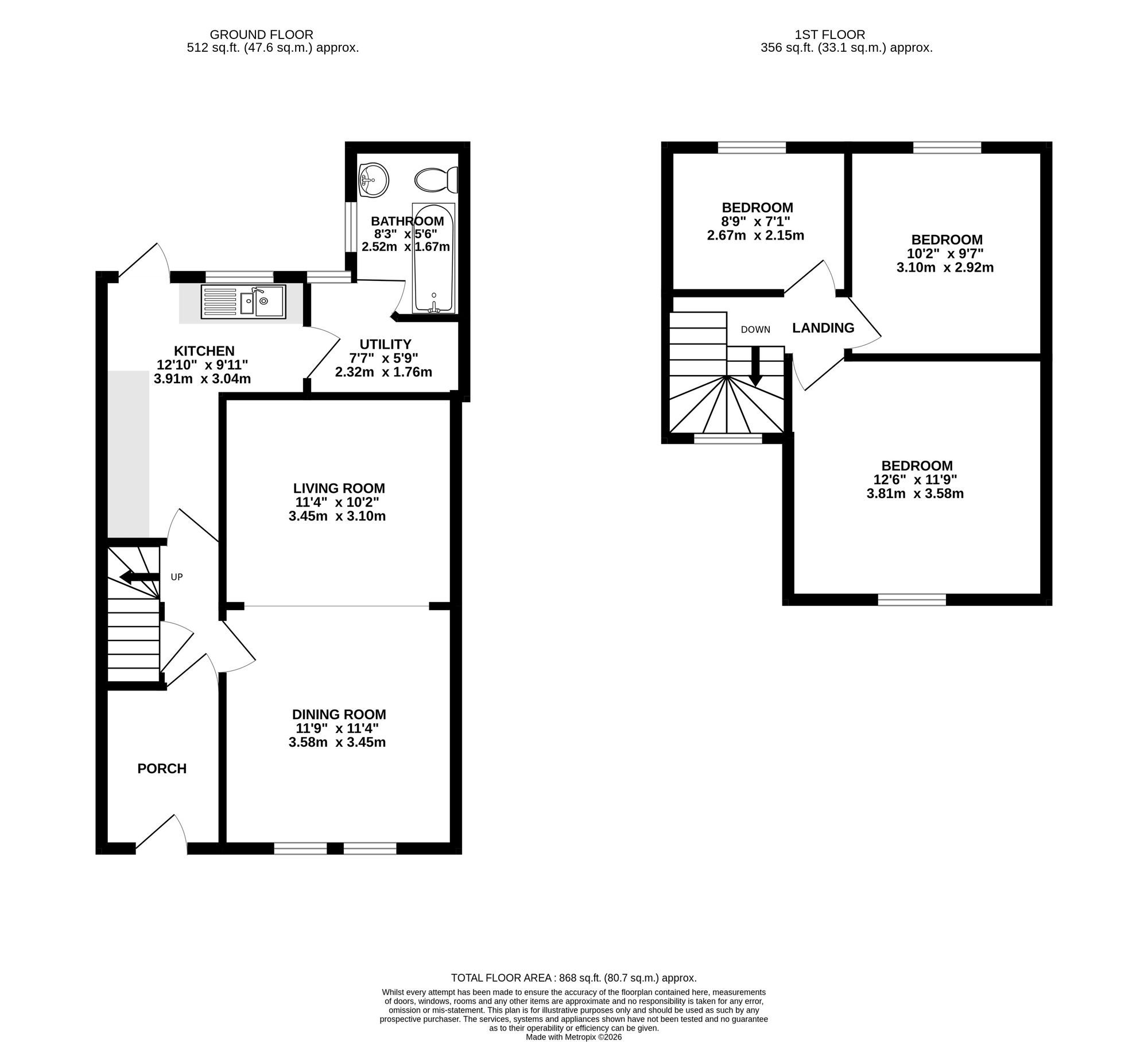 On the first floor are three bedrooms, comprising two comfortable double rooms and a single bedroom, suitable for a child’s room, guest space or home office.