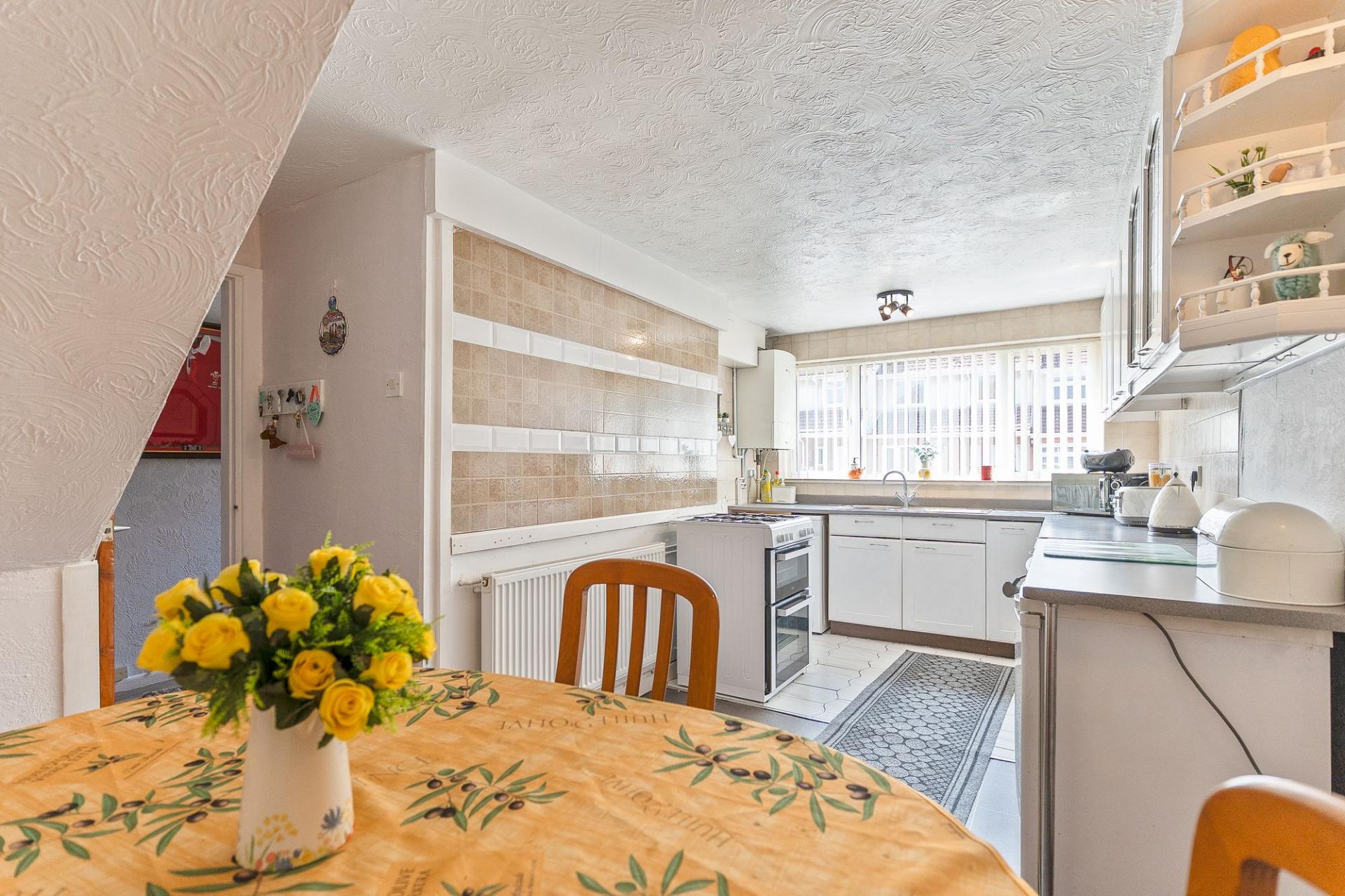 Upon entering the property, you are welcomed by a bright and inviting hallway. To the left is a practical ground-floor cloakroom, fitted with a WC and hand basin, ideal for guests and everyday convenience. Adjacent to this is the fully fitted kitchen, featuring ample cupboard and worktop space, along with room for a dining table – a perfect spot for both casual meals and family gatherings. To the rear of the property lies the spacious main living room, a light-filled area that offers an ideal environment for relaxing, entertaining, or spending time with family. Large windows provide pleasant views of the rear garden, enhancing the sense of space and natural light.