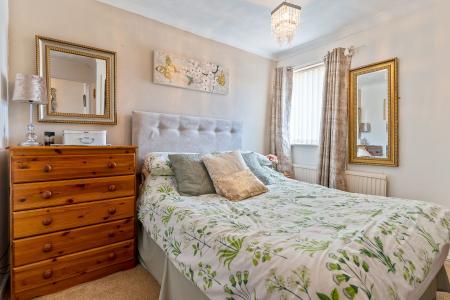 Upstairs, the property continues to impress with two generous double bedrooms, both of which benefit from built-in storage, offering practical and well-designed living space. The family bathroom is tastefully finished and includes a bath, WC, and hand basin.
