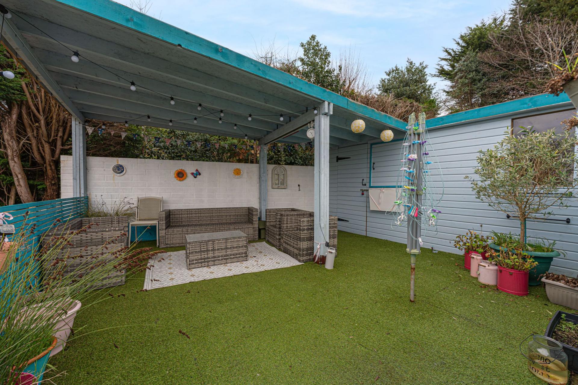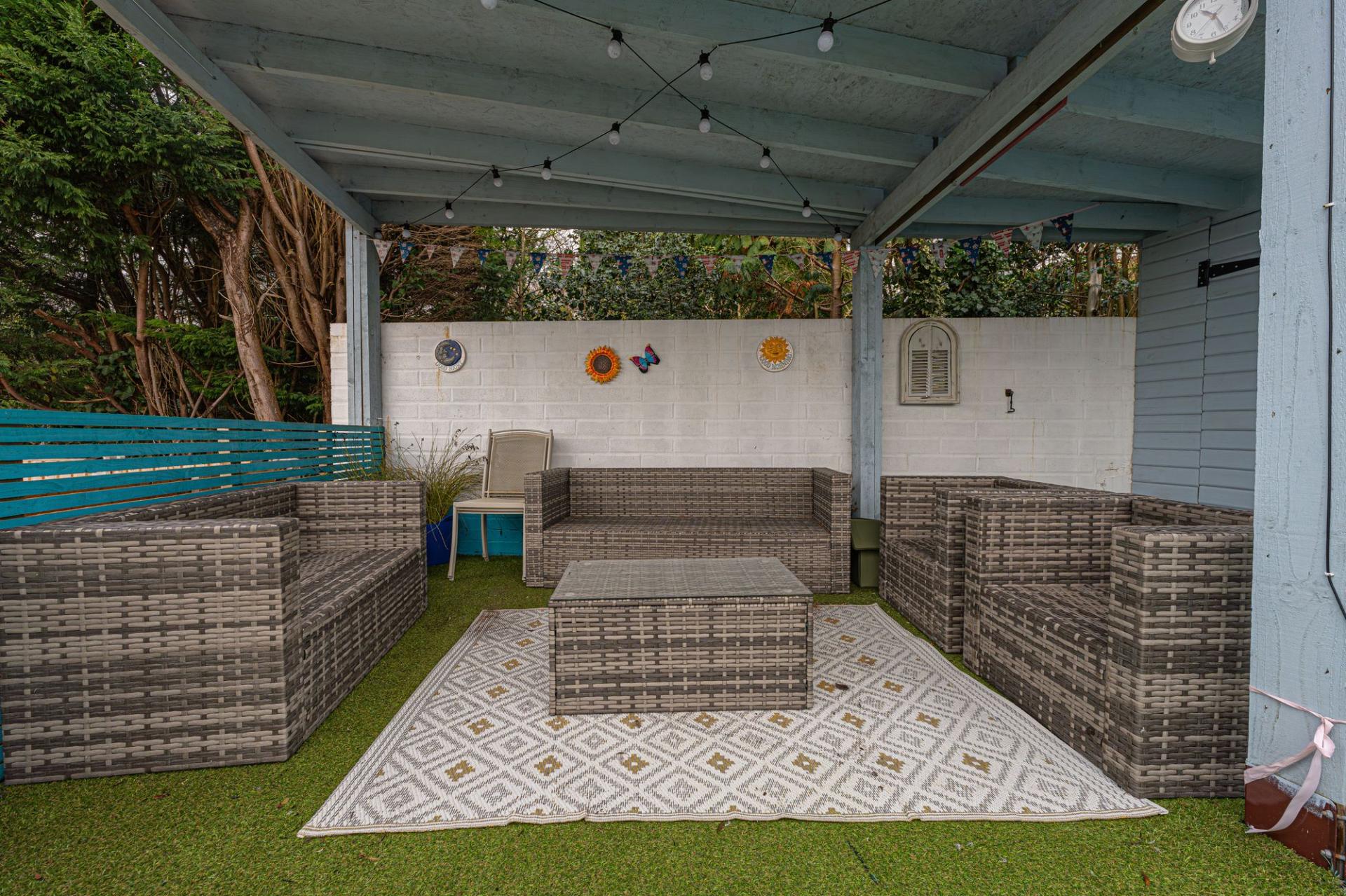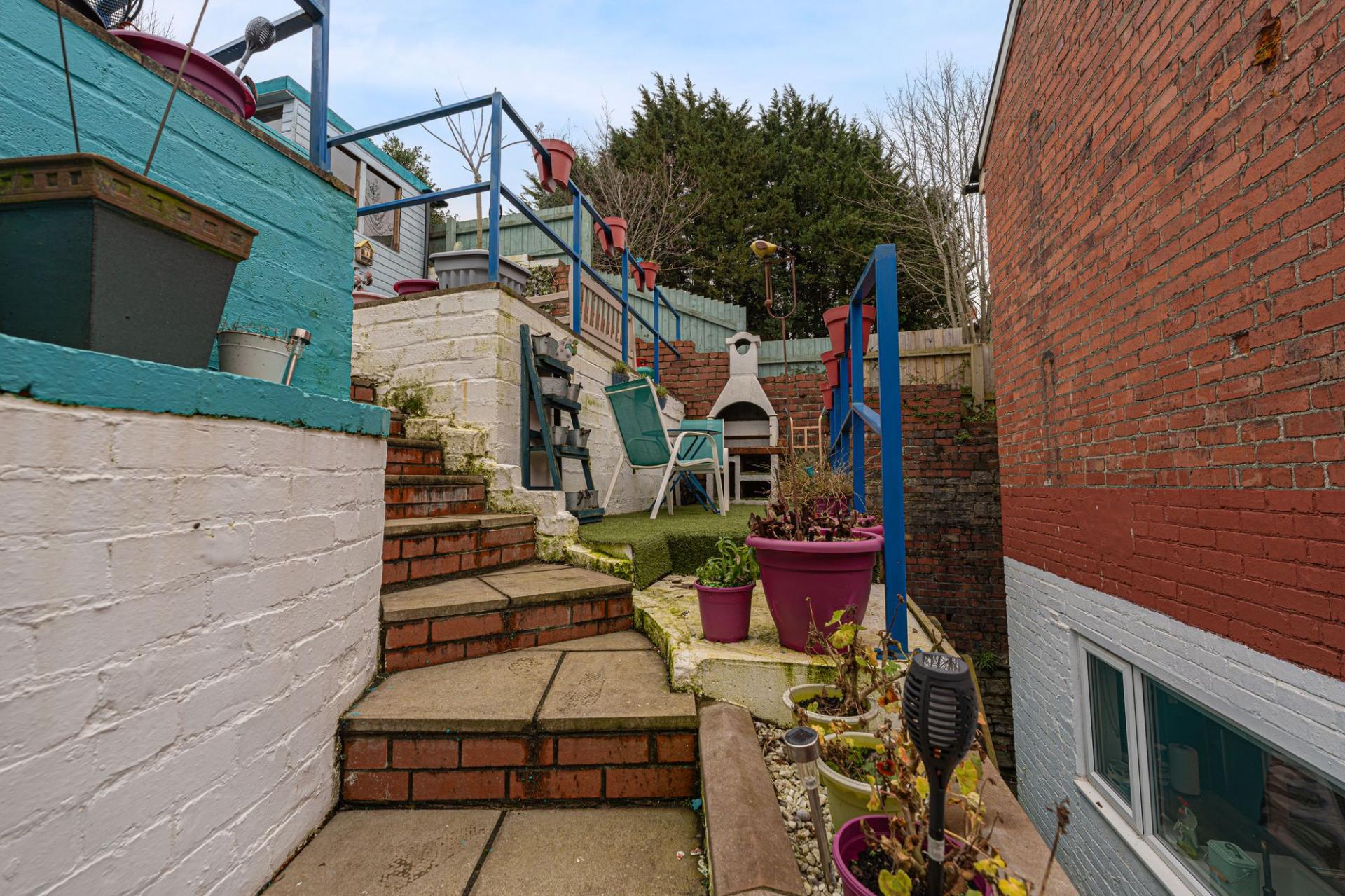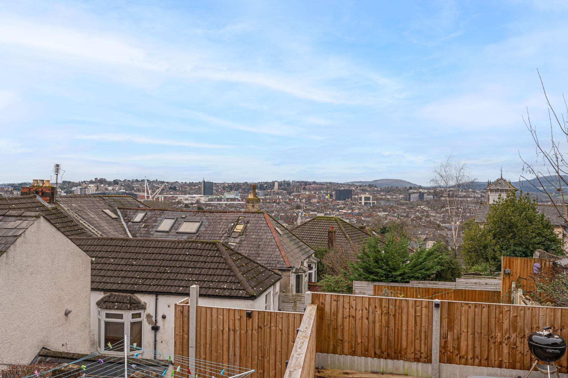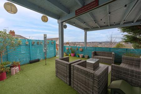 Stepping outside we have the magnificent rear garden, which features a multi-levelled terrace blended with low maintenance turf and an abundance of seated patio areas, offering plenty of flexible outdoor space for residents to enjoy. At the summit of the garden we can find a sheltered lounge space, which is ideal for entertaining guests and enjoying al-fresco dining, with a scenic views of the surrounding cityscape providing a relaxing backdrop to this wonderful space. The garden also features a large summerhouse / shed providing versatility and potential for a wide range of functions, such as a home bar or an outdoor games room. Additional outdoor space is present at the front of the house, with a pebble stone garden accessed from the street below, where on-road parking is available.
