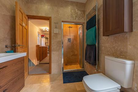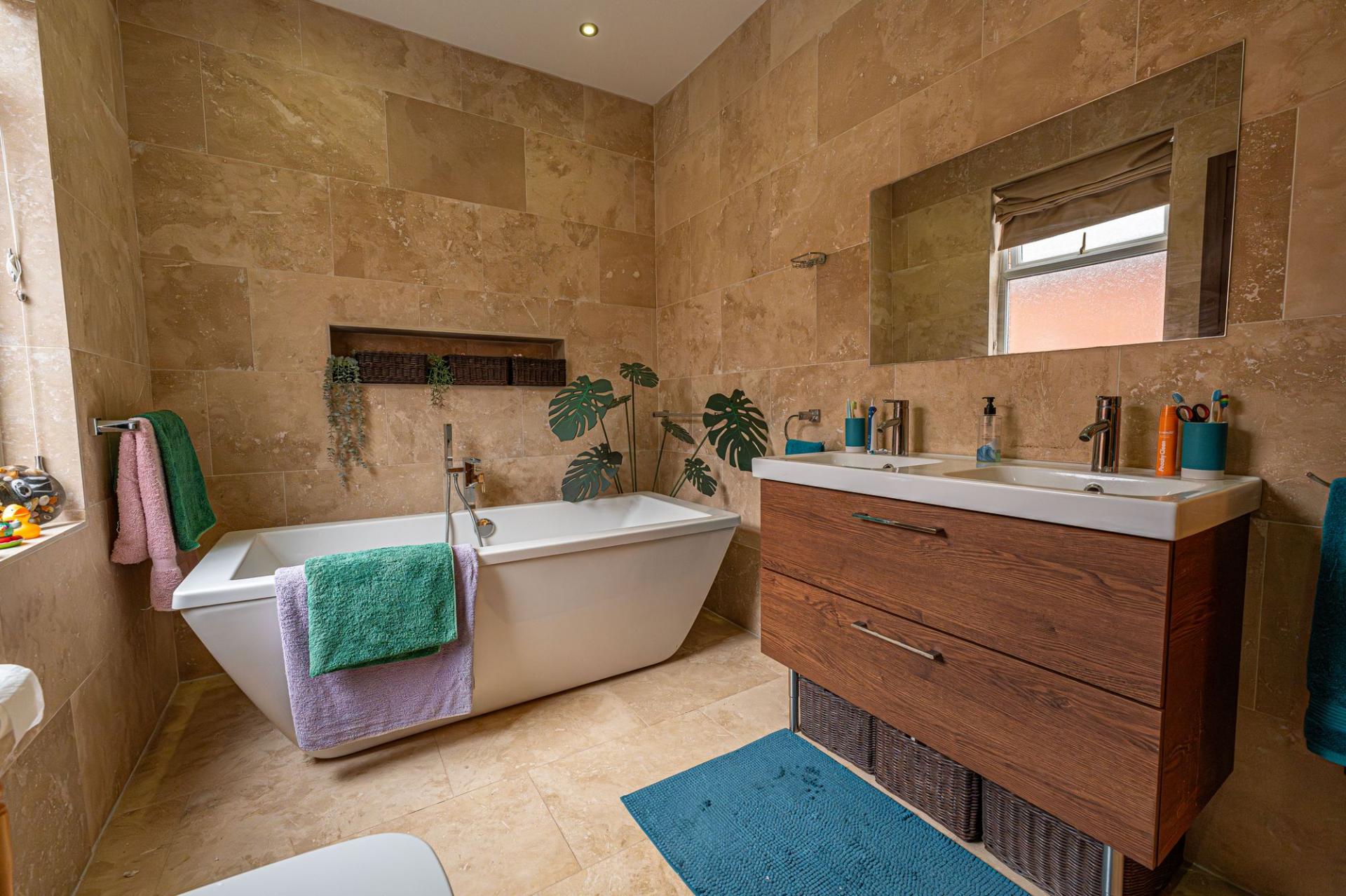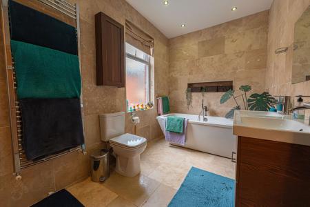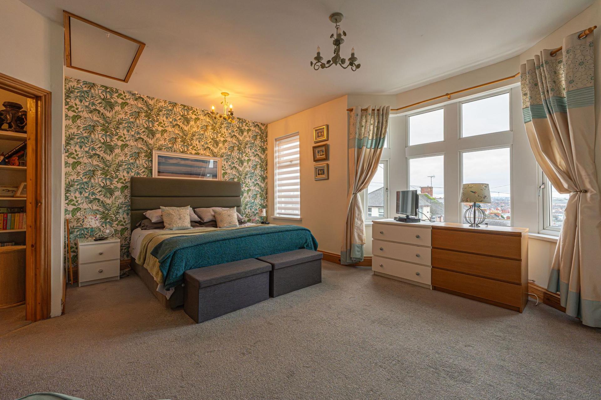 Upstairs we have three generously proportioned double rooms, with the principal suite featuring a considerable size and multiple windows to brighten up the room with a view across the city - including the bay aspect from the floor below. The third bedroom has the added benefit of fitted wardrobes for convenient storage, while the hallway itself is vast enough to accommodate a snug reading area or an office space. The modern bathroom is another highlight - showcasing a bath suite, dual sinks, and a walk in rainfall shower surrounded by a stylish decorative tiling.