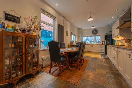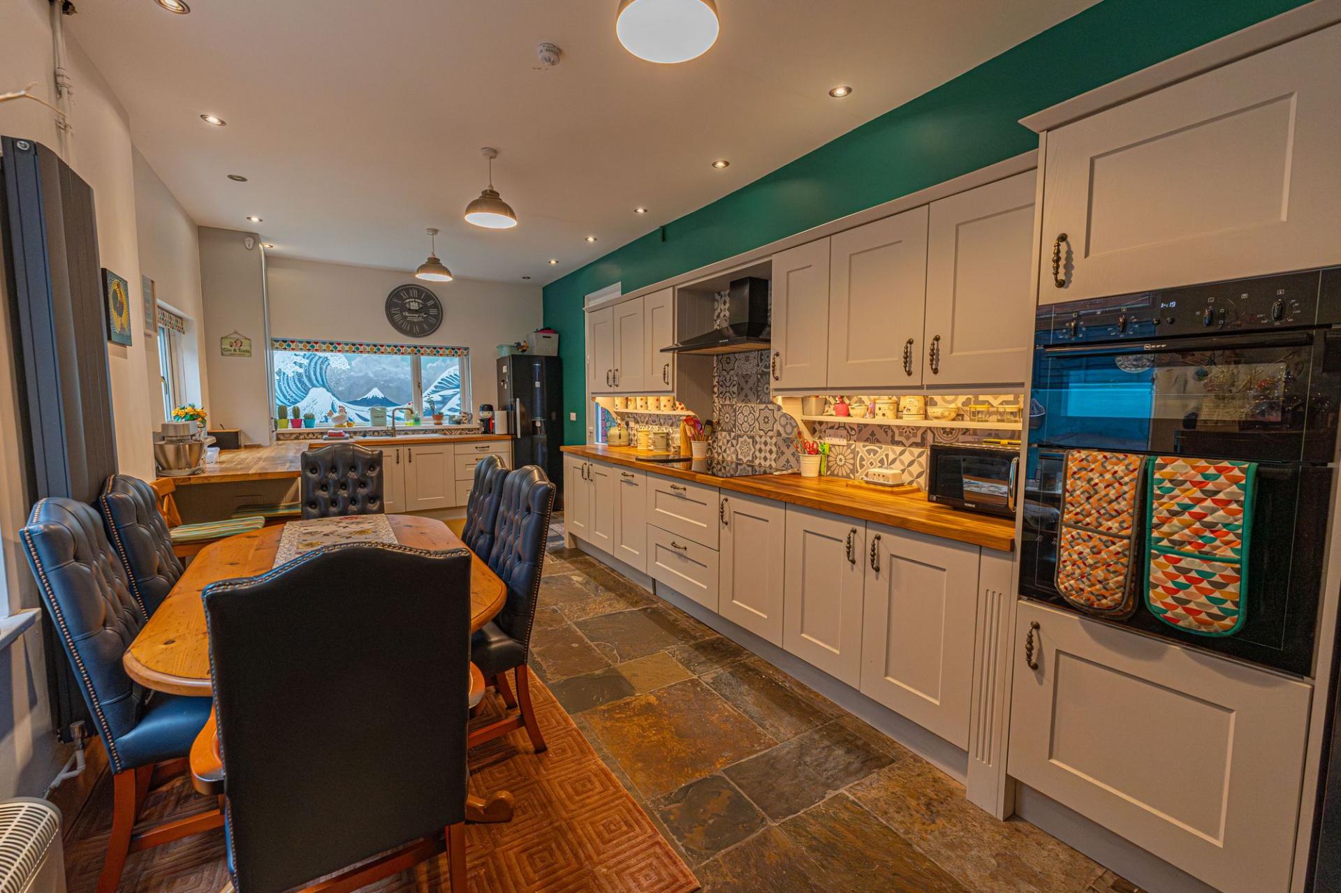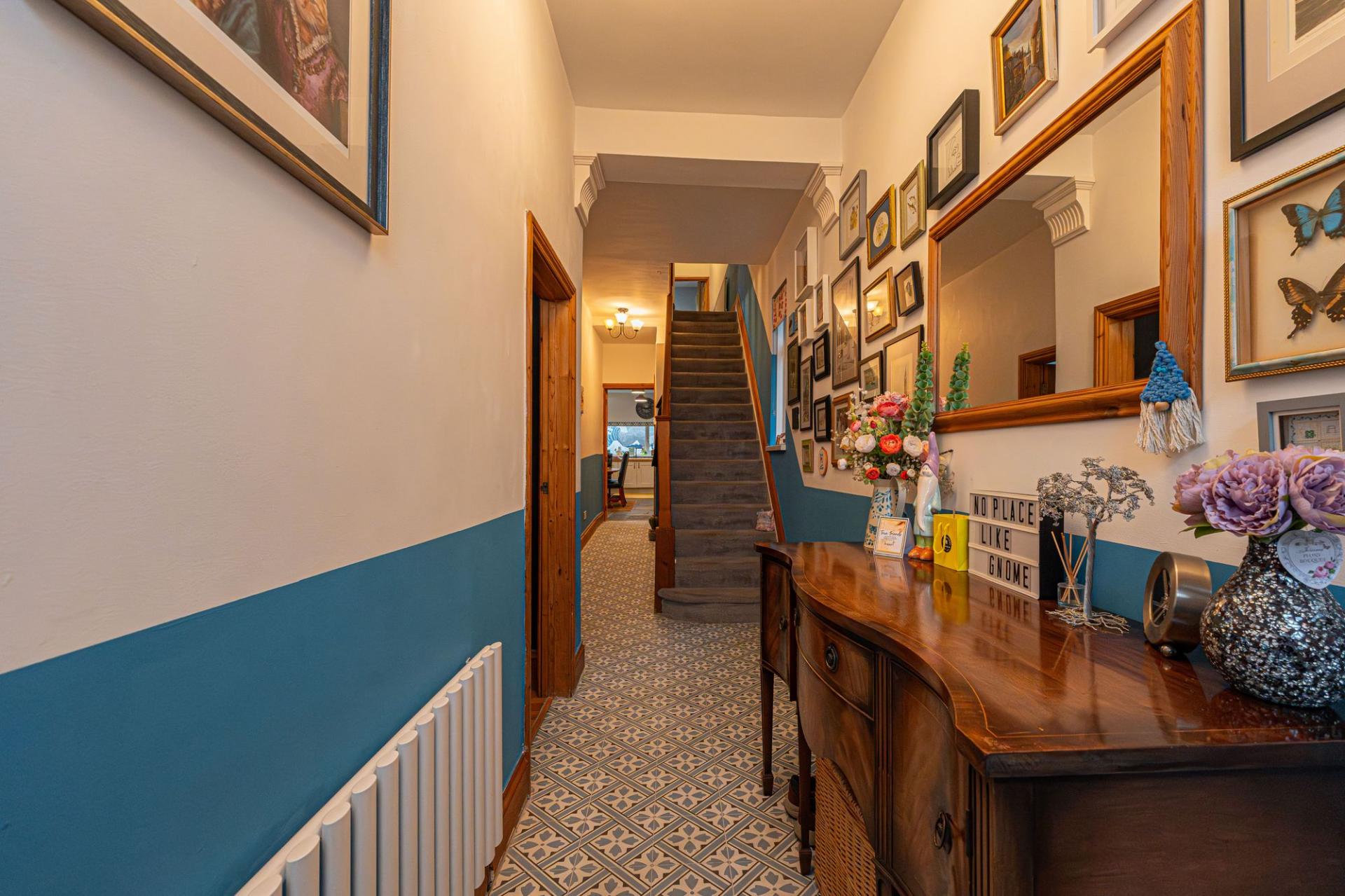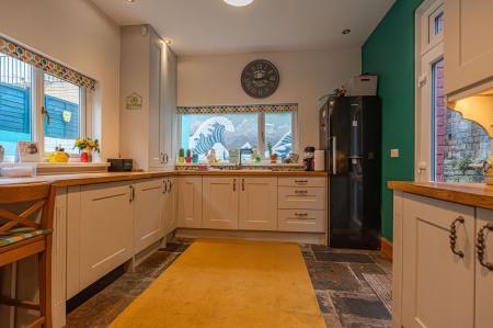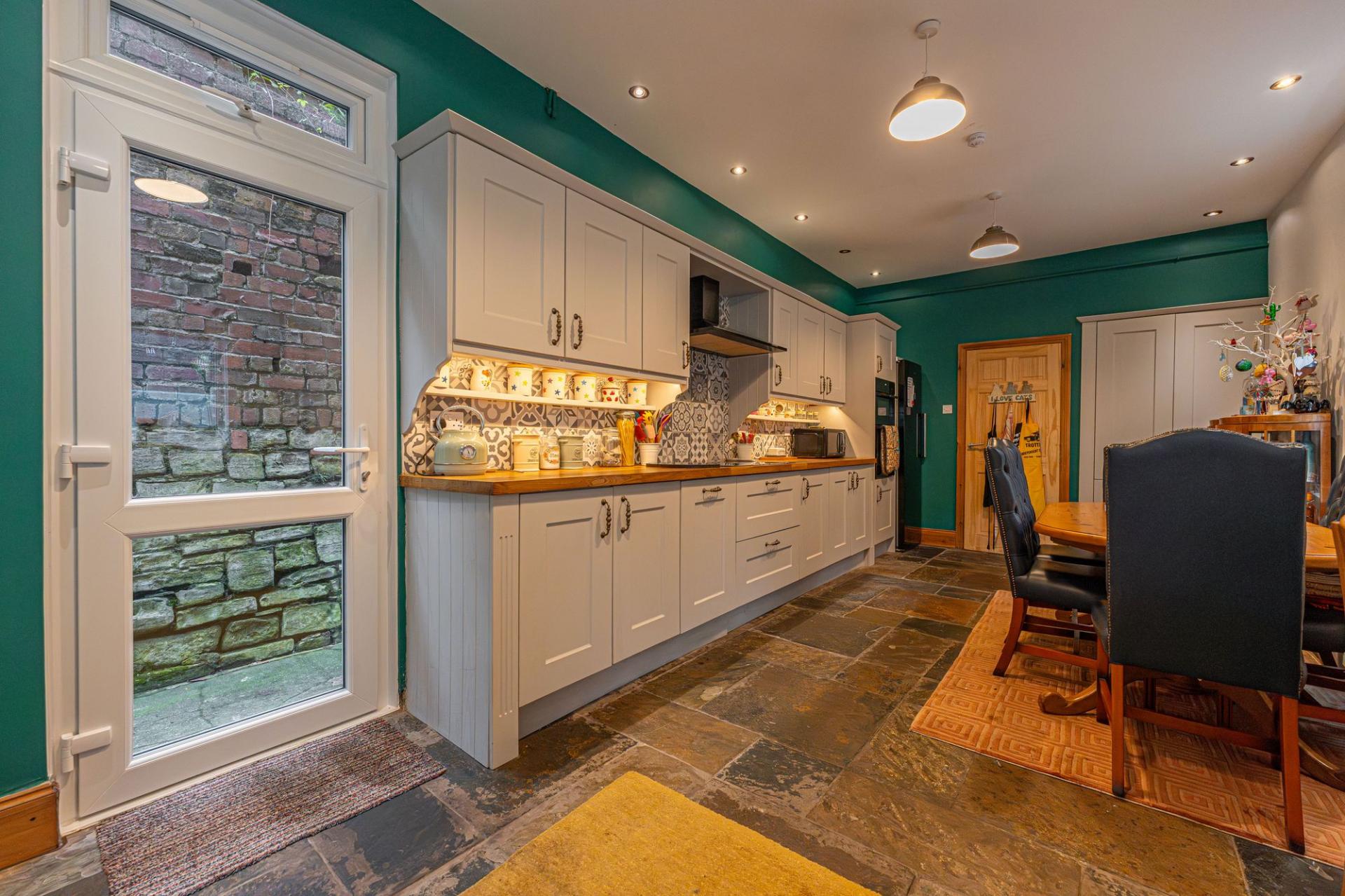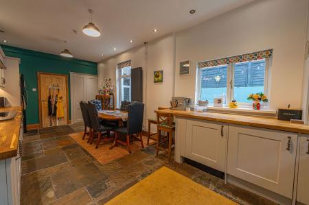 We enter this incredible Victorian-era family home to the front, which is beautifully presented throughout, showcasing a blend of period features with contemporary style, starting with the large entry hall. The ground floor features two spacious reception rooms, offering considerable flexibility for residents, which are both ideally suited for relaxing, dining or welcome guests. Both rooms are both flooded by natural light, with the front facing room lounge enjoying glorious bay windows, and the neighbouring family room offers a doorway directly in the garden. To the rear of the home we have the kitchen, which features an impressive open plan design to double up as the dining room, also enjoying a great amount of natural light and a vibrant design, with stone flooring, wooden counter tops and sleek cabinetry throughout. The kitchen benefits from ample storage options and plenty of counter space, as well as space to entertain visitors. From the hallway we can find a W.C and useful cloakroom space, before ascending to the first floor.