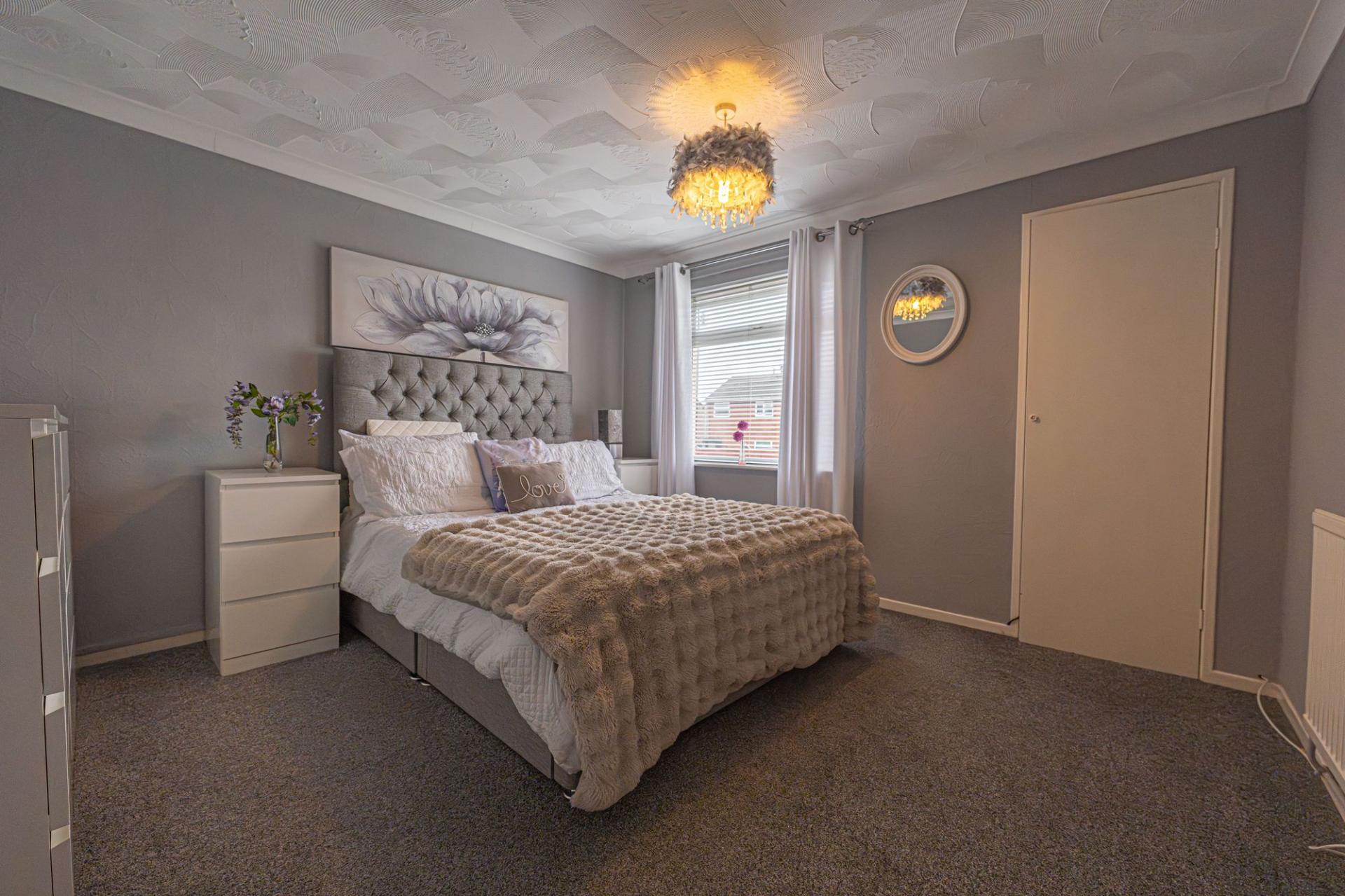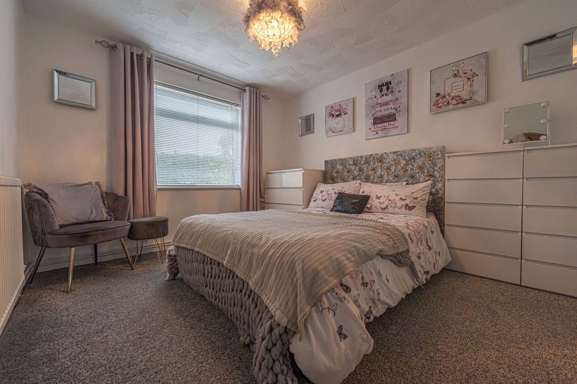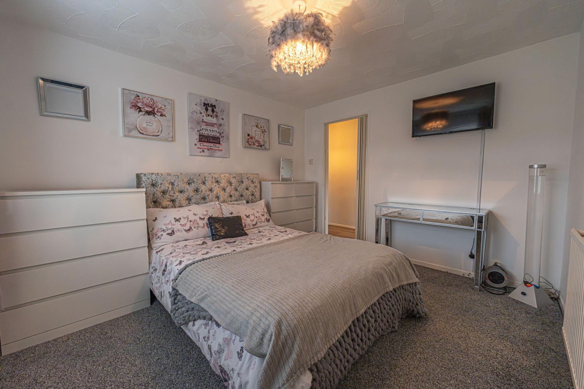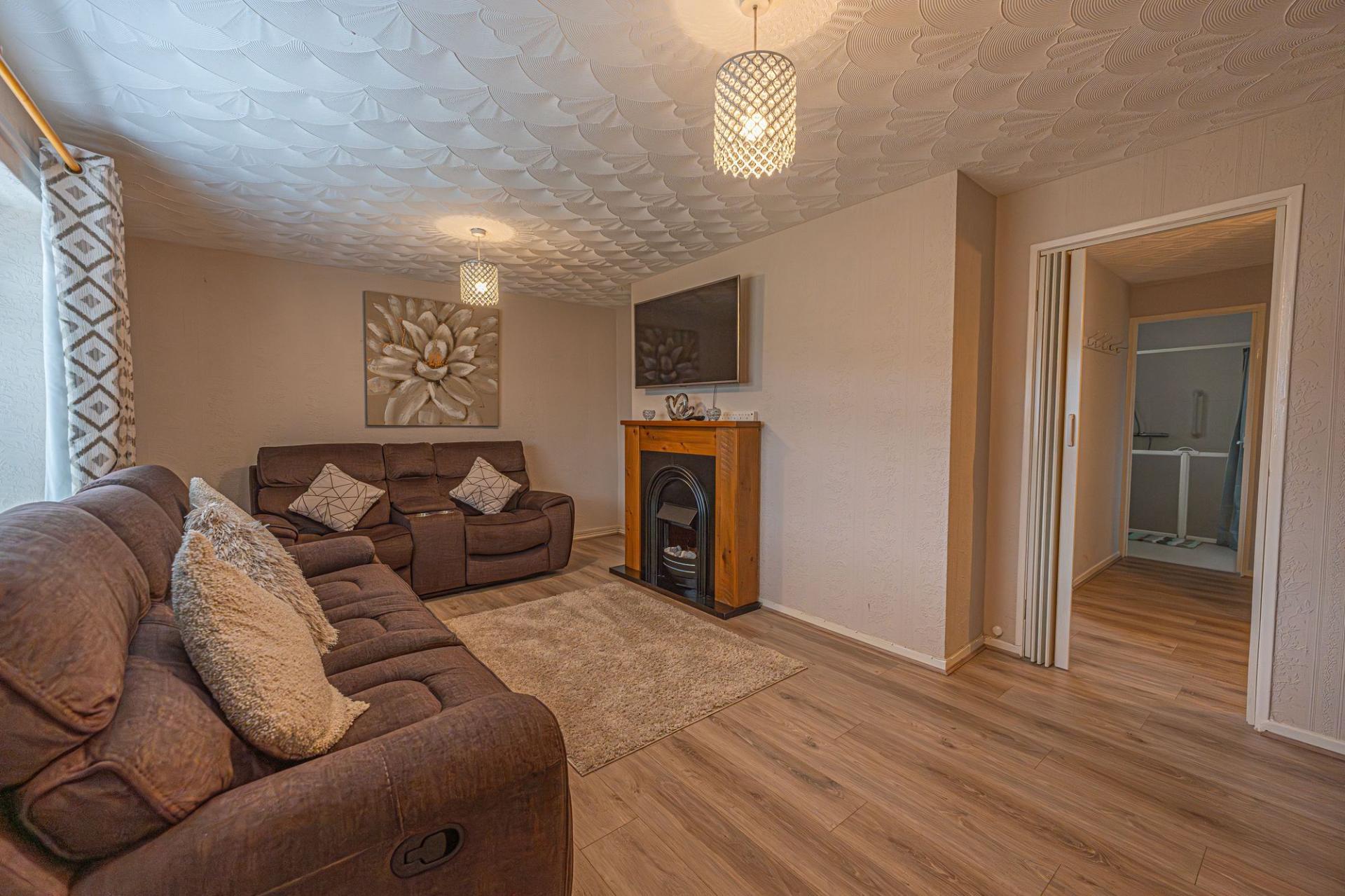 This well-presented ground floor home offers an impressive blend of comfort and practical living, with the spacious living room sat at the rear of the home to offer a welcoming retreat and a great space for relaxing and entertaining. Neighbouring the lounge we can find the practical kitchen, which offers plenty of storage options and room for numerous appliances, as well as being able to double up with a dining area or breakfast nook. The property features two double bedrooms which are generously sized and enjoy plenty of natural light, with one bedroom having the added benefit of a fitted wardrobe. These two bedrooms share the bathroom from the hallway, which is fitted with a toilet and walk in shower.