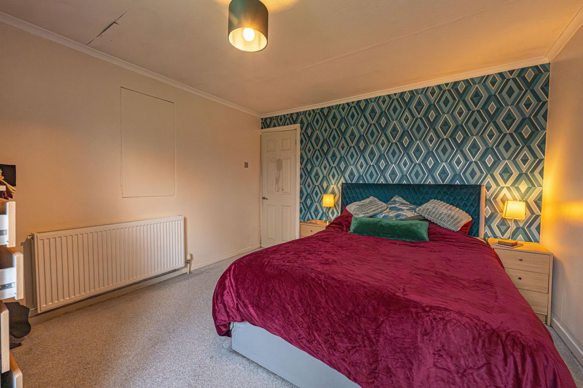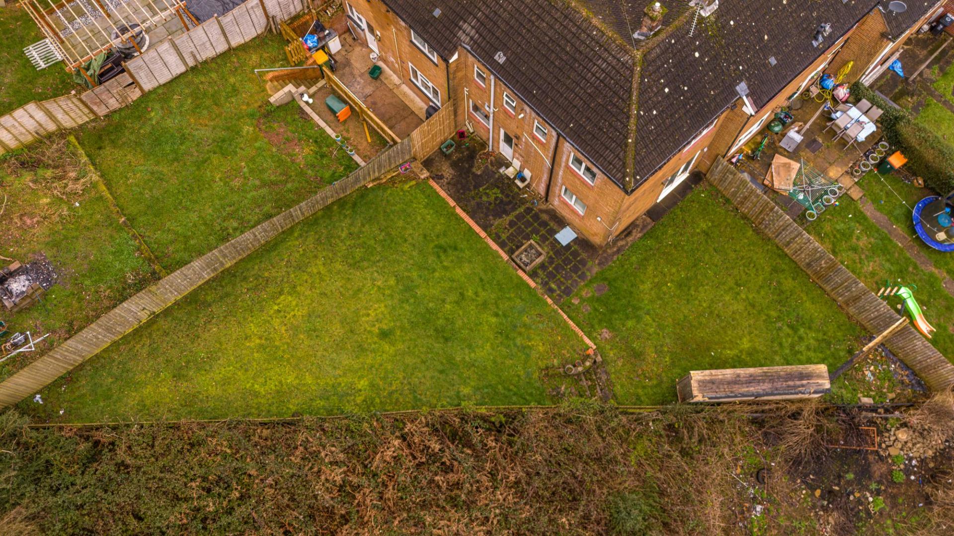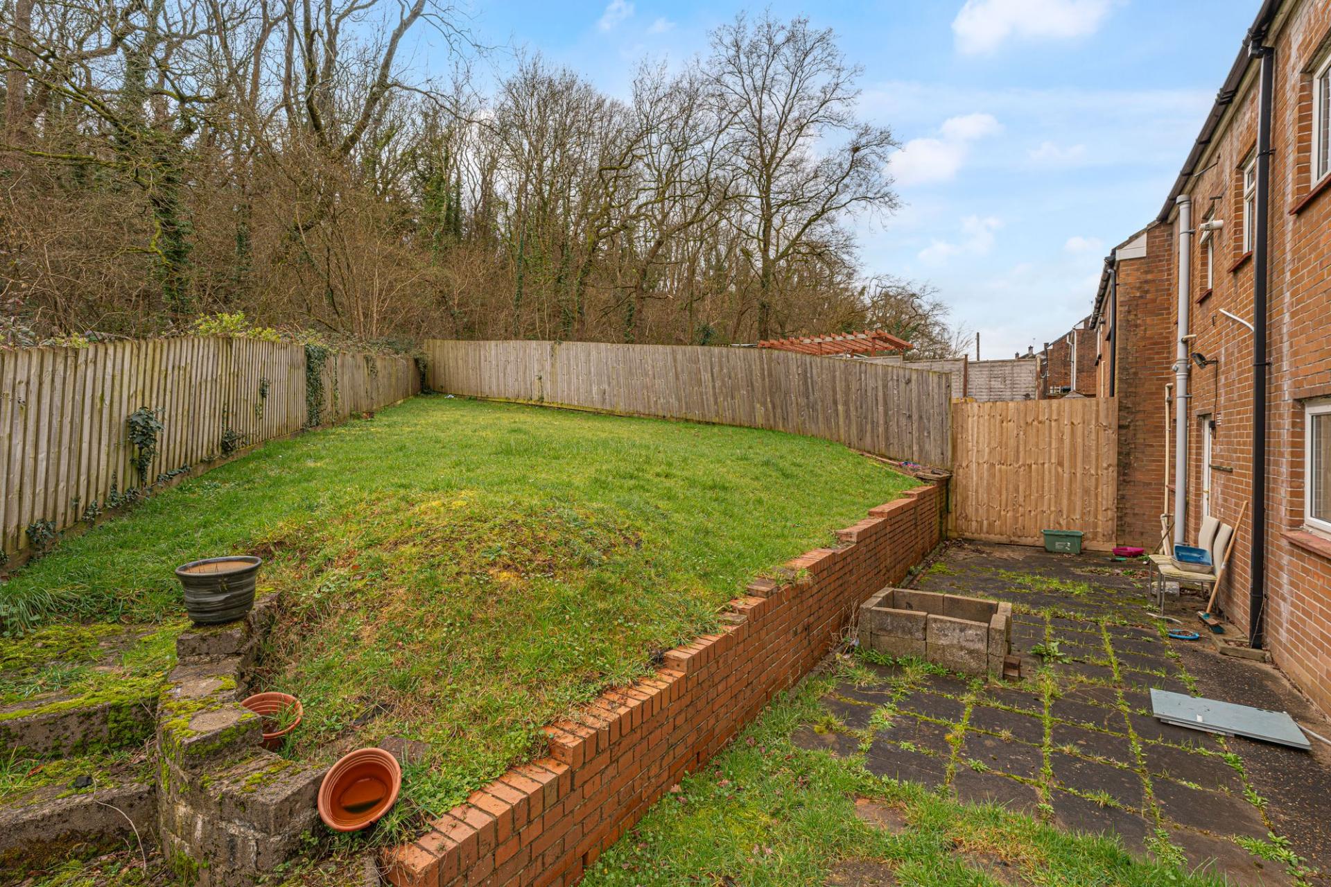 A major highlight of this home is the expansive garden, which sits on a sizeable corner plot that enjoys an abundance of outdoor space for residents to enjoy. The garden features a considerable lawn space at both the side and rear of the house, complimented by a patio area that is ideal for al-fresco dining and entertaining guests, while also offering a helpful storage shed. The garden is enclosed via a fenced boundary and framed by tall trees that provide a great sense of tranquillity.