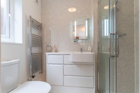 On the first floor are four bedrooms and the family bathroom. Three of the bedrooms are well-proportioned doubles, while the fourth is a comfortable single room, suitable for use as a child’s bedroom, guest room or home office. The primary bedroom further benefits from its own en-suite shower room, while the family bathroom is finished to a modern standard and serves the remaining bedrooms.