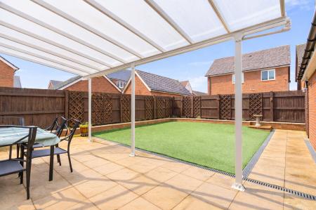 Externally, to the front of the property is a driveway providing off-road parking along with access to the garage which benefits from an eclectic door. To the rear is a generous garden featuring a covered patio area ideal for outdoor seating and entertaining, alongside a large lawned space, creating a private and attractive setting for family enjoyment.
