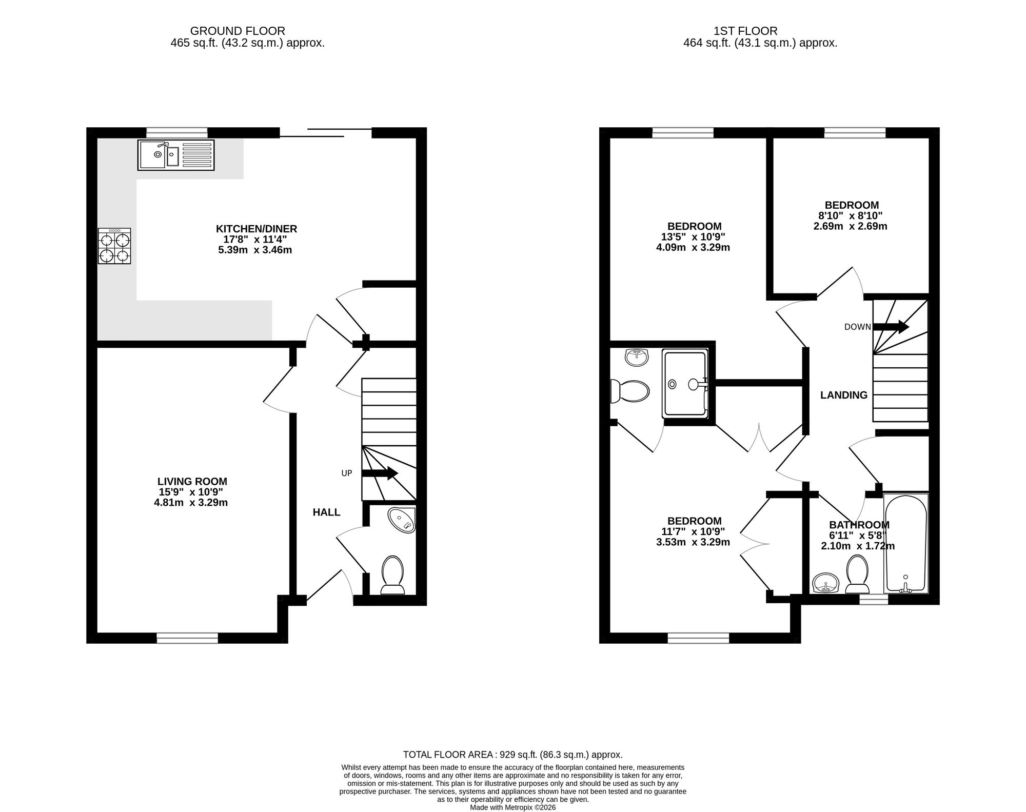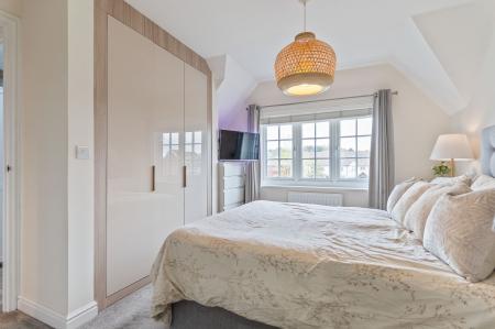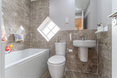 On the first floor are three bedrooms and a modern family bathroom. The property offers two double bedrooms and a single bedroom, providing flexible accommodation for families or those needing a home office. The primary bedroom benefits from a private en-suite shower room, adding convenience and comfort.