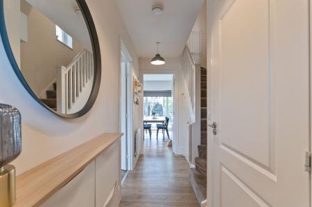 You enter the property into the main hallway, which provides access to the ground floor living areas, the staircase leading to the first floor and a convenient cloakroom located on the right. To the left is the well-presented living room, a bright and welcoming space filled with natural light and offering plenty of room for seating. To the rear is the open plan kitchen and dining room, featuring a modern fitted kitchen with space for dining and patio doors leading out to the rear garden, creating a great space for everyday living and entertaining.