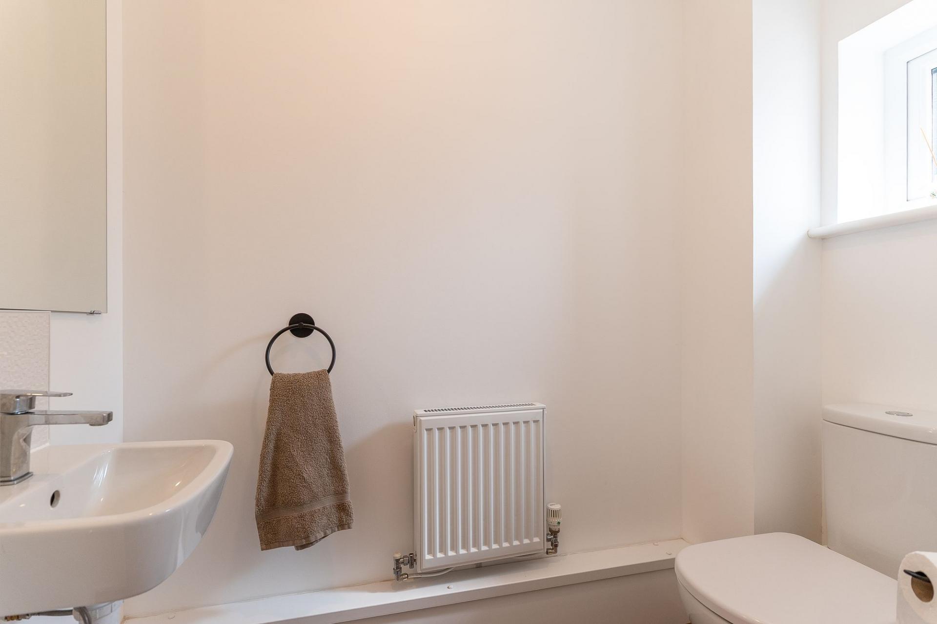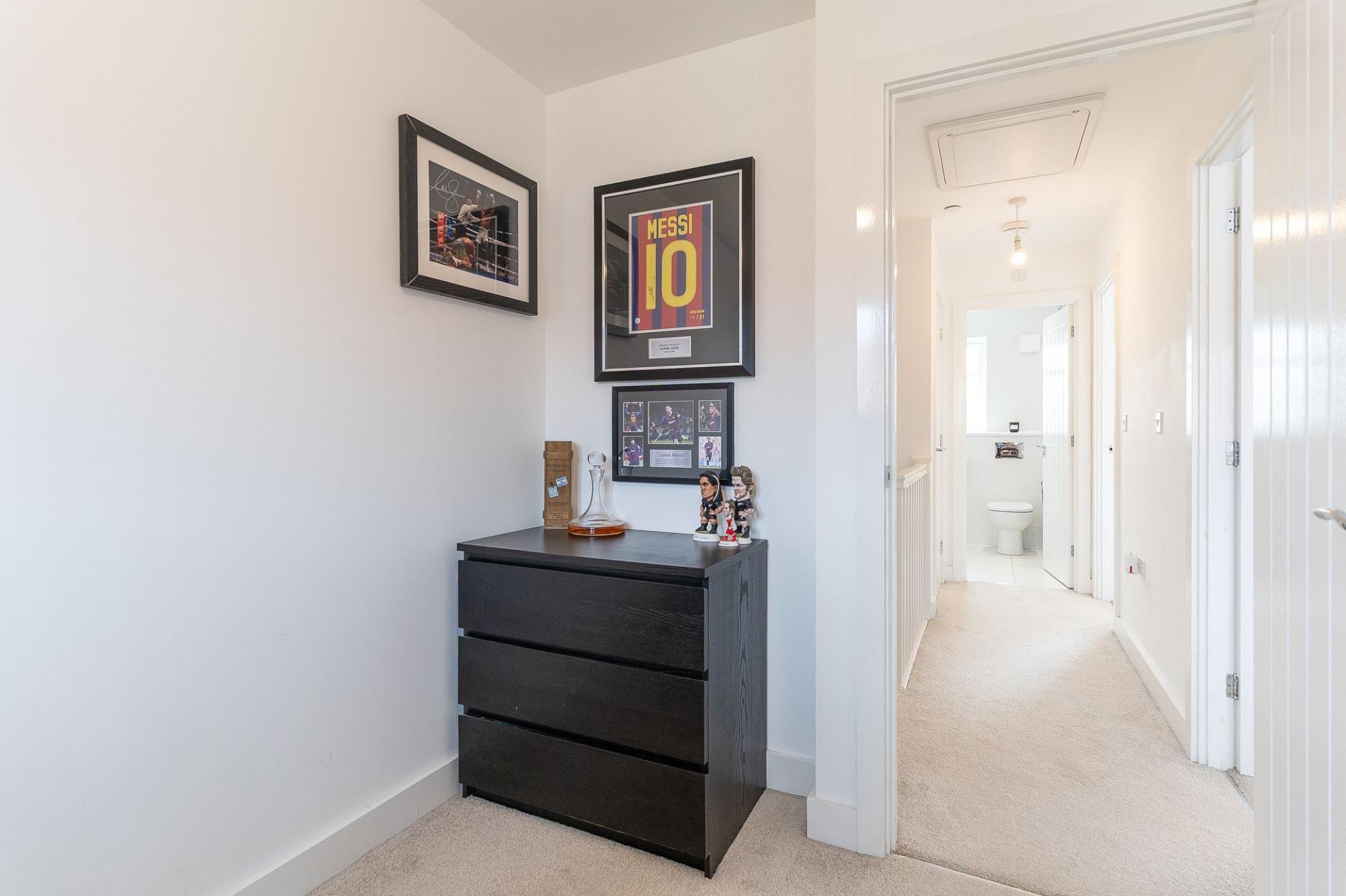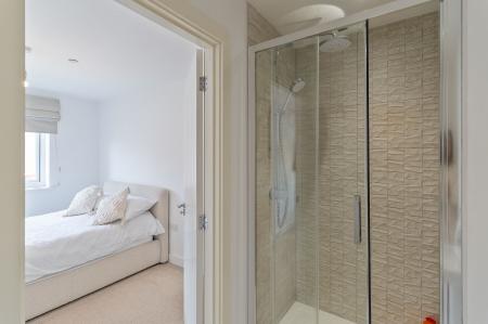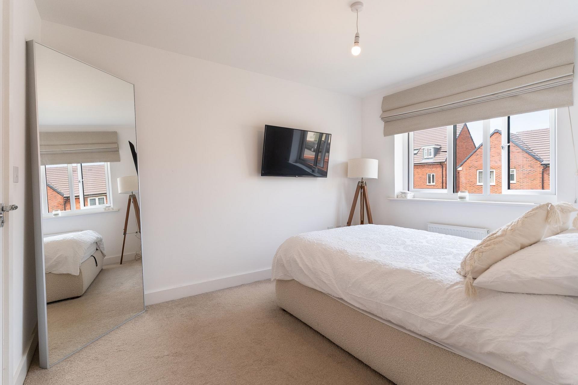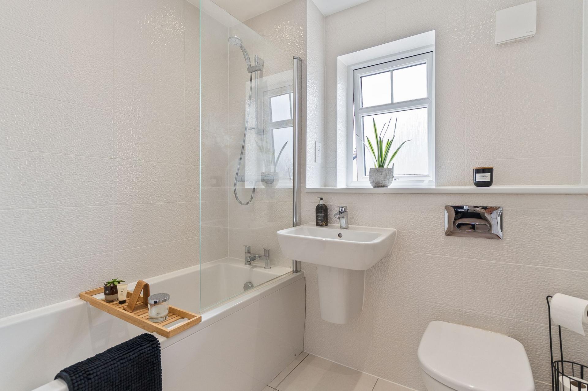 Upstairs, the first floor comprises three well-proportioned bedrooms and a modern family bathroom. There are two double bedrooms and one single, all finished in a bright, neutral décor that adds to the home’s clean and contemporary feel. The primary bedroom benefits further from a private en-suite shower room, providing additional comfort and convenience for the homeowners.