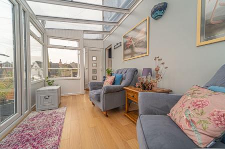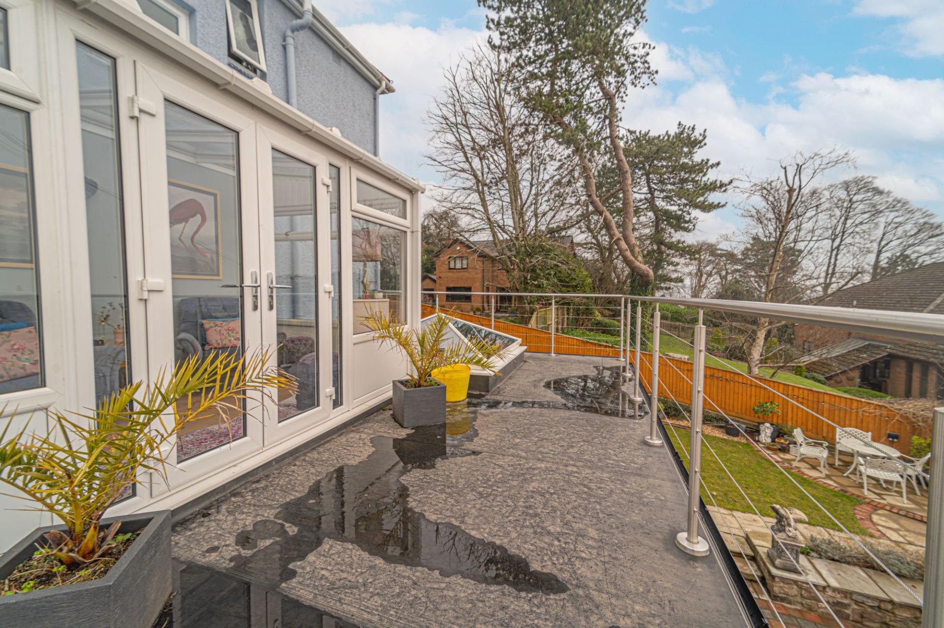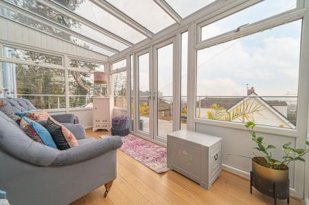 This exceptional family home is presented to an immaculate standard throughout, and has a wide range of contemporary features to ensure a high standard of living. We enter the property on the middle floor, where we can find a hidden cloakroom as well as access to the bright conservatory, providing another lounge space bathed in light, with doors to a fabulous balcony overlooking the garden below.