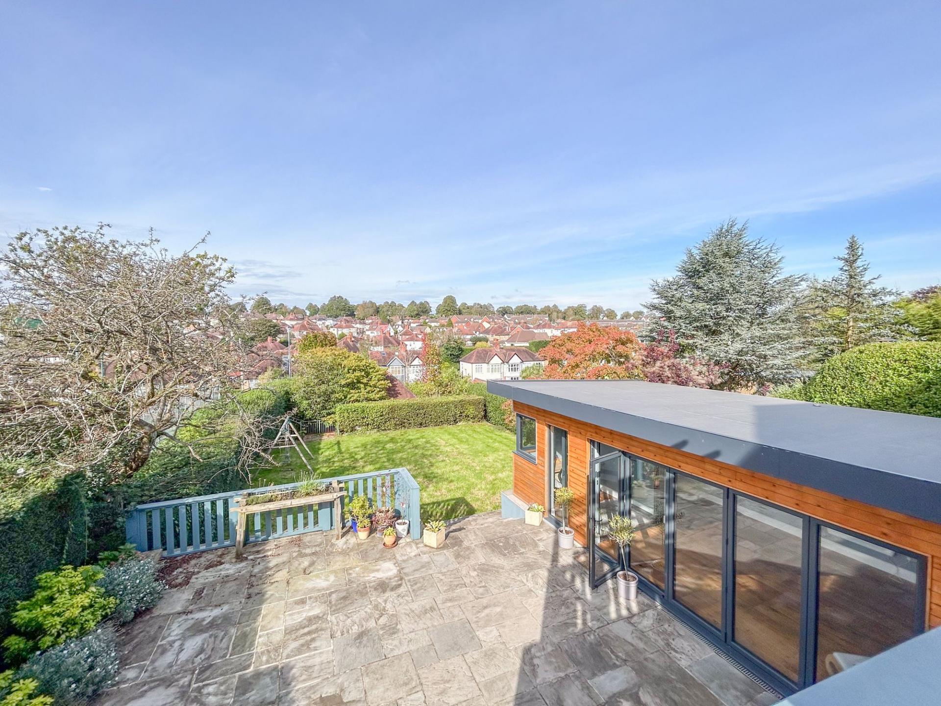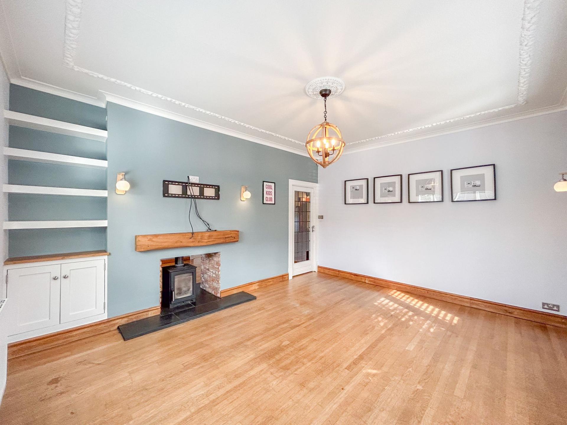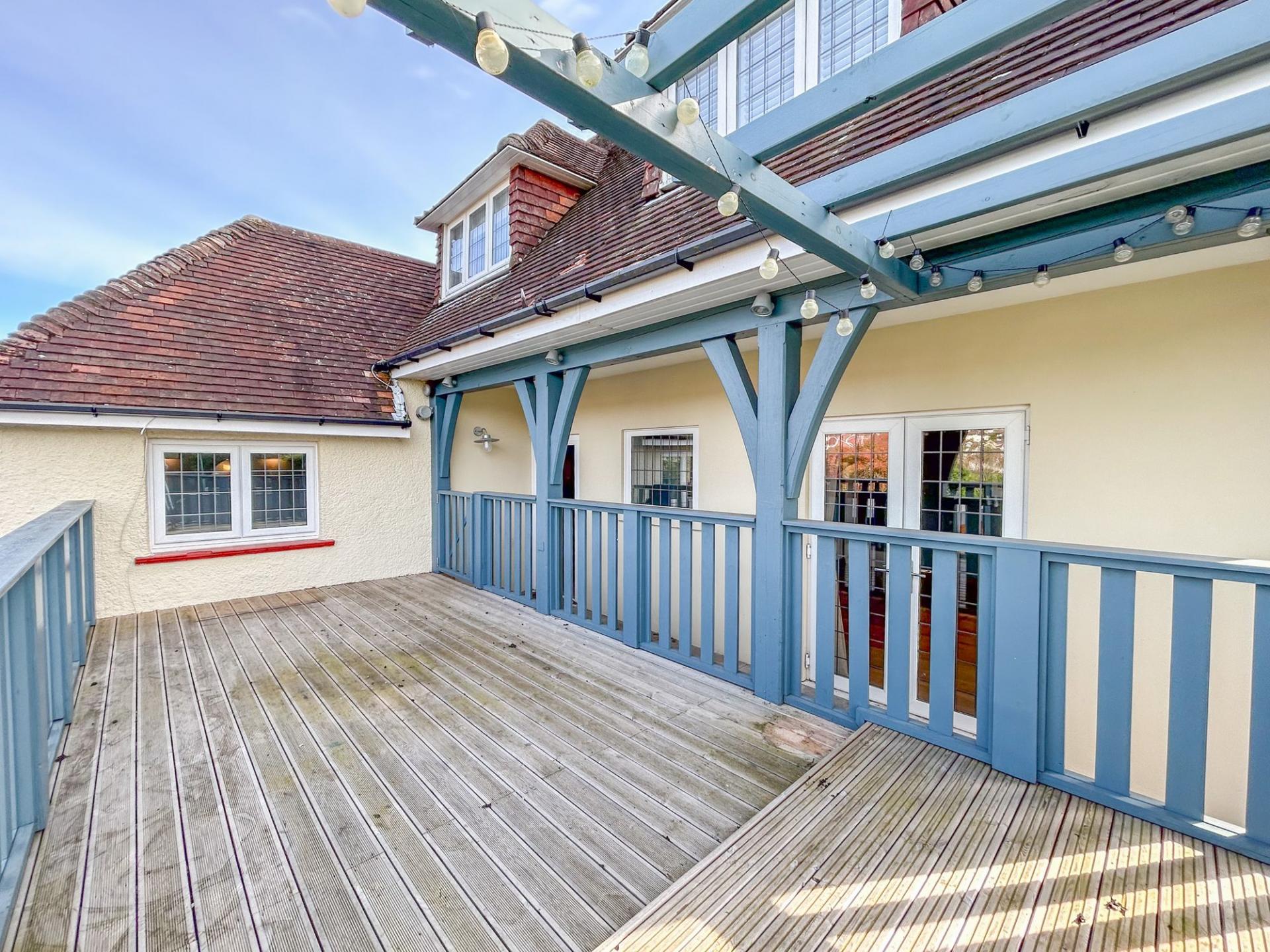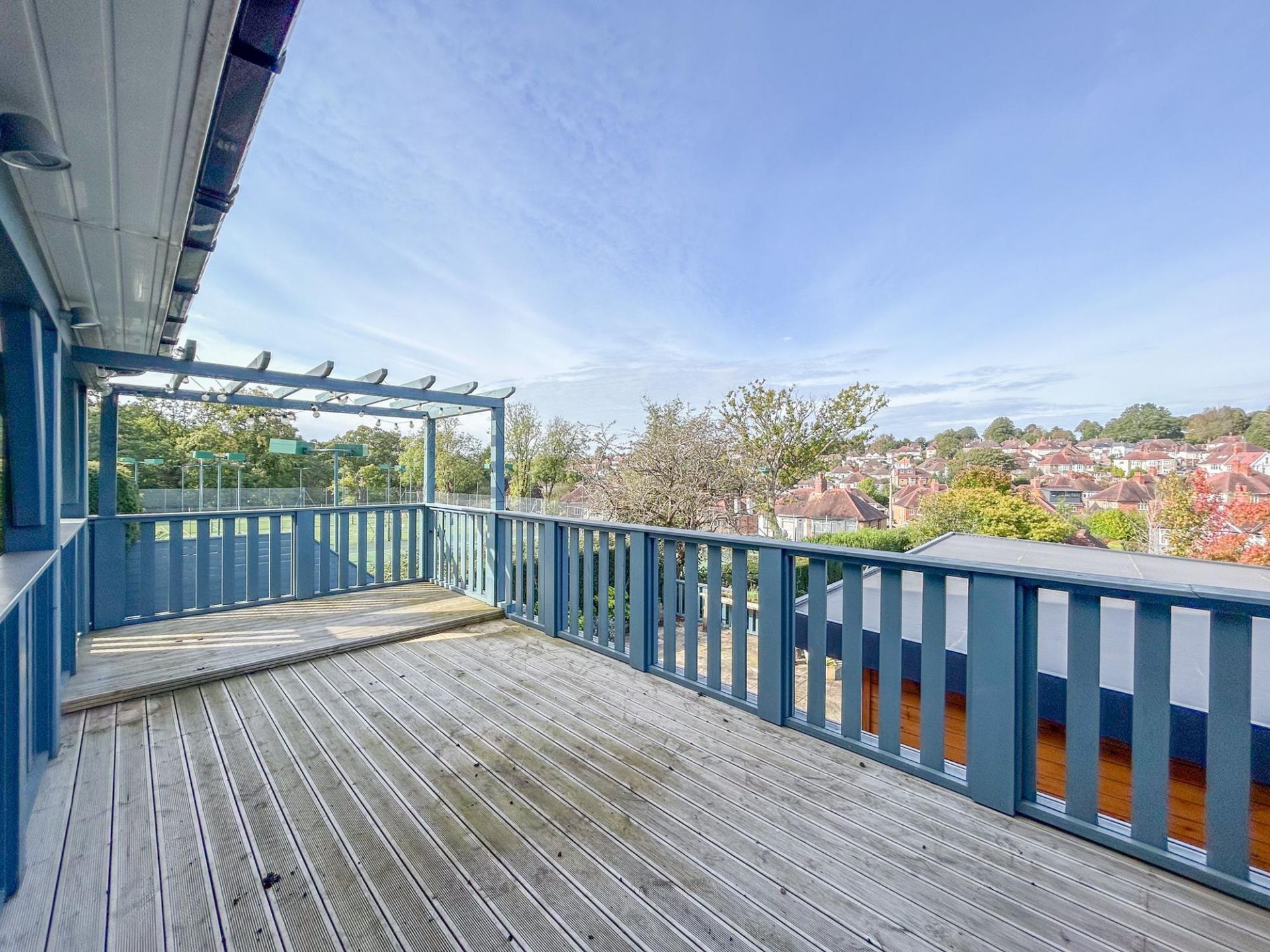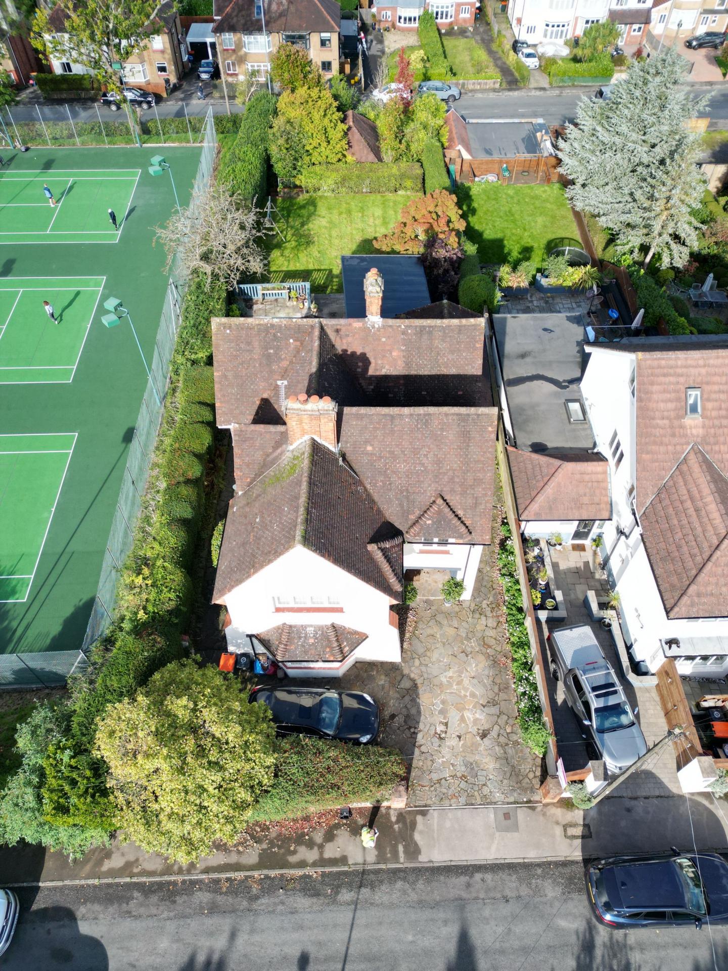 With character throughout, the property is well-proportioned with ample living space for family living and entertaining, with expansive lawned gardens and a double garage at the rear. A driveway to the fore allows the property to accommodate several vehicles. Welcomed into a spacious hallway, period features can be found throughout, with ornate ceiling mouldings, coving and parquet flooring, while modern elements tastefully juxtapose the original features, with new lattice windows complimenting the original style and a dual log burning fire. There are two large bay-aspect reception rooms to the ground floor, which could both be living rooms or one a dining room, while the kitchen also offers space for a breakfast table. The kitchen benefits from light blue shaker style wall and base units with a red Aga at the heart. There are a range of features to include a dual Belfast sink, central island and a wine cooler. From the kitchen, the garden can be accessed, which offers a large decking area, providing superb views overlooking the tennis courts. Below, there is a patio area, where the outbuilding can be found, offering space for a home office and gym. Beyond, there is an extensive lawn, minimally overlooked and providing access to the double garage. There is a useful utility room from the kitchen and a convenient cloakroom from the hallway.