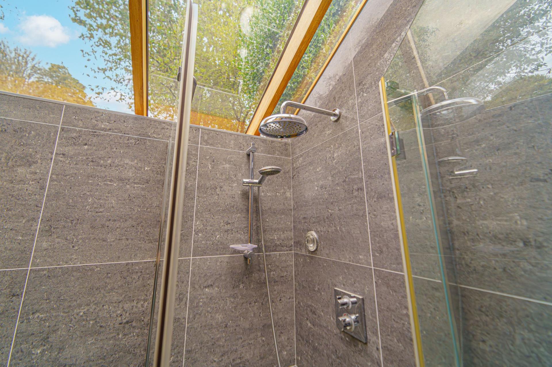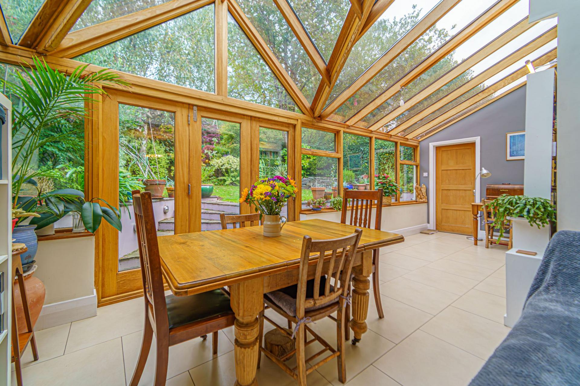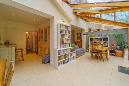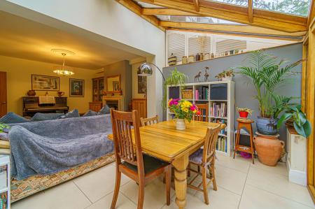 Continuing through the home, the family room offers a cozy retreat, complete with a wood burner and ample space to relax or entertain. This area seamlessly flows into the bright and airy rear extension, which currently serves as the dining area. With underfloor heating and an abundance of natural light, this versatile space provides the perfect setting for family gatherings or entertaining guests. Just off the dining area, there is a convenient downstairs shower room, adding extra functionality to the ground floor.