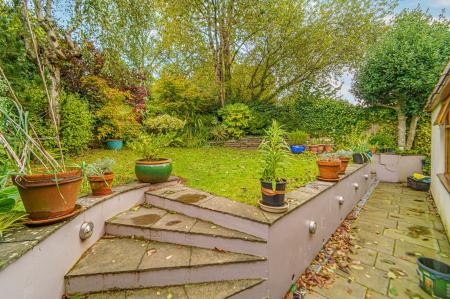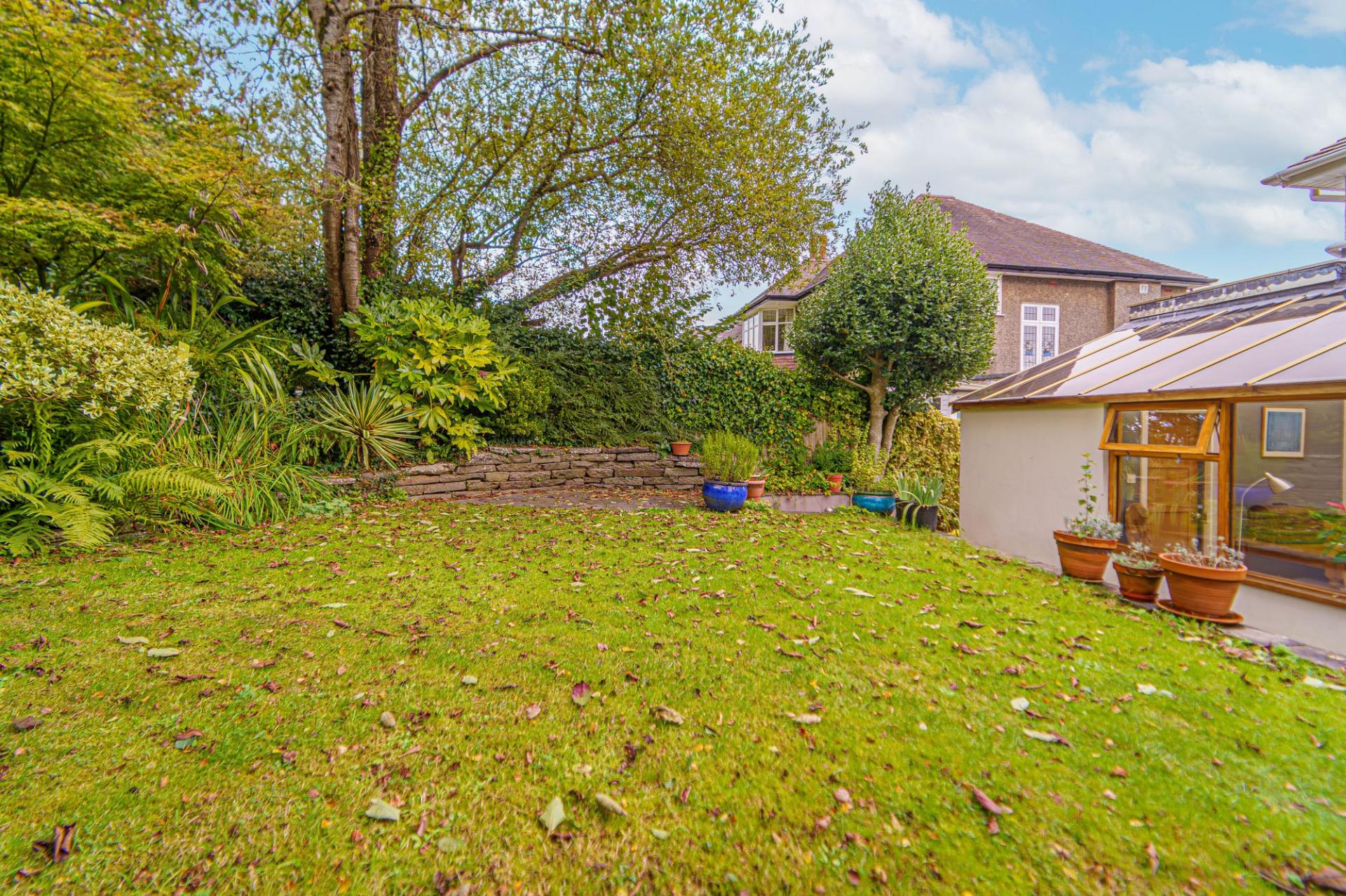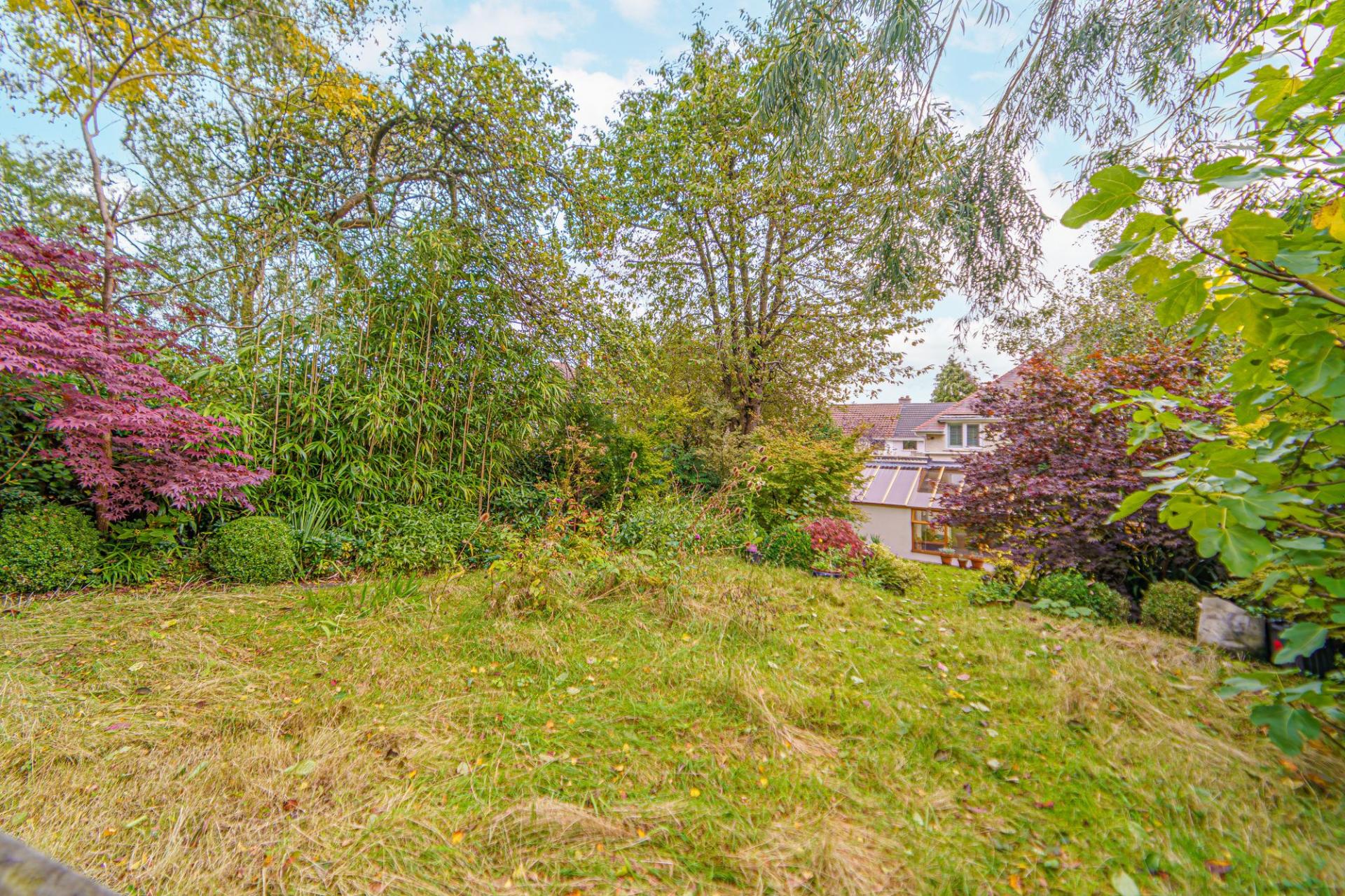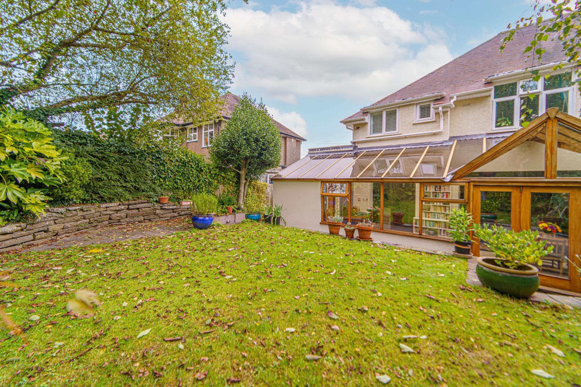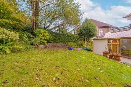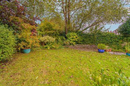 Stepping outside, you'll find a stunning, expansive rear garden that feels like a private oasis. A patio area directly off the house leads to a lush lawn that extends upwards, backing onto the beautiful Ridgeway and Allt-yr-yn Nature Reserve. The garden has specimen plants, mature shrubs and trees, creating a natural haven ideal for families with children and pets. This outdoor space is perfect for garden activities, summer barbecues, or simply enjoying the peace and quiet of nature.