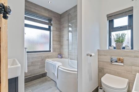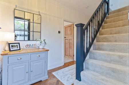 On the first floor we have the three bedrooms, two of which are generously sized double rooms, both of which having access to fitted storage, with the front facing bedroom enjoying the beautiful bay windows of the floor below. The third bedroom is a useful single room which would also be ideally suited to a home office or dressing room. The family bathroom found from the landing is designed to a great standard, with a large bath suite and overhead shower, as well as a fitted airing cupboard that houses the boiler.