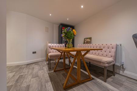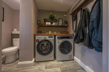 Taking the staircase downstairs we arrive at the kitchen, which is well equipped with plenty of storage options, and several integrated appliances, and features an open plan design to accommodate a dining room adjacent, and a fantastic breakfast bar. Neighbouring the kitchen we can also find access into the garden, as well as the upgraded utility room, which doubles up as a W.C.