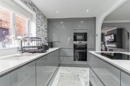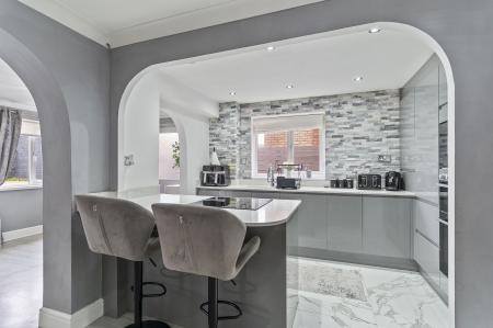Externally, the property boasts an attractive gated front garden with side access leading through to the rear. The large driveway, located to the rear of the property, is accessed via recently fitted bi-fold parking gates from the main road. Both the front and rear gardens feature poured printed concrete, providing a smart and durable finish, complemented by an artificial lawn to ensure the space remains low-maintenance and usable all year round.