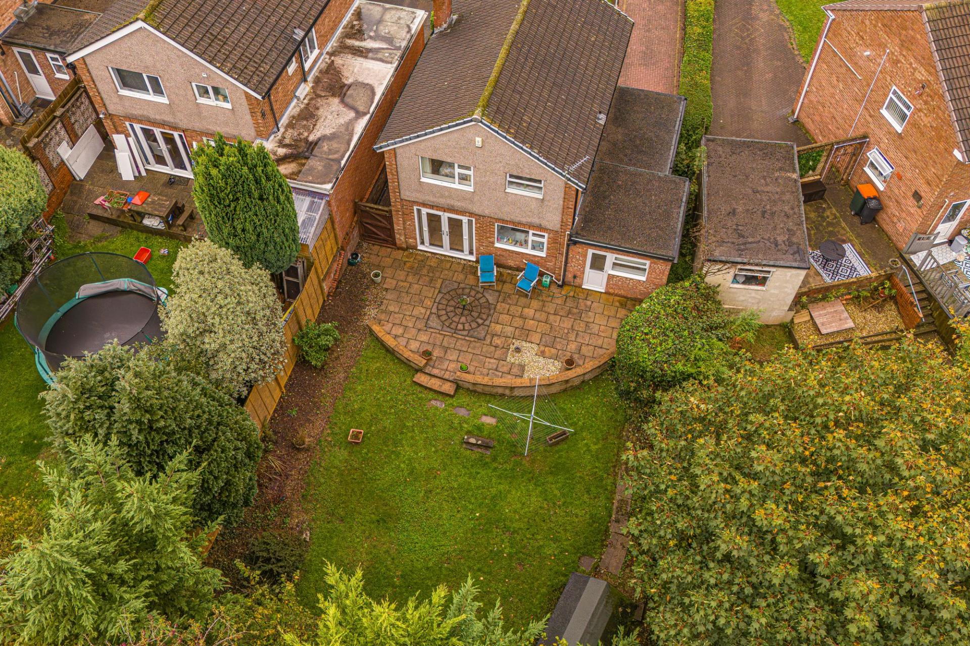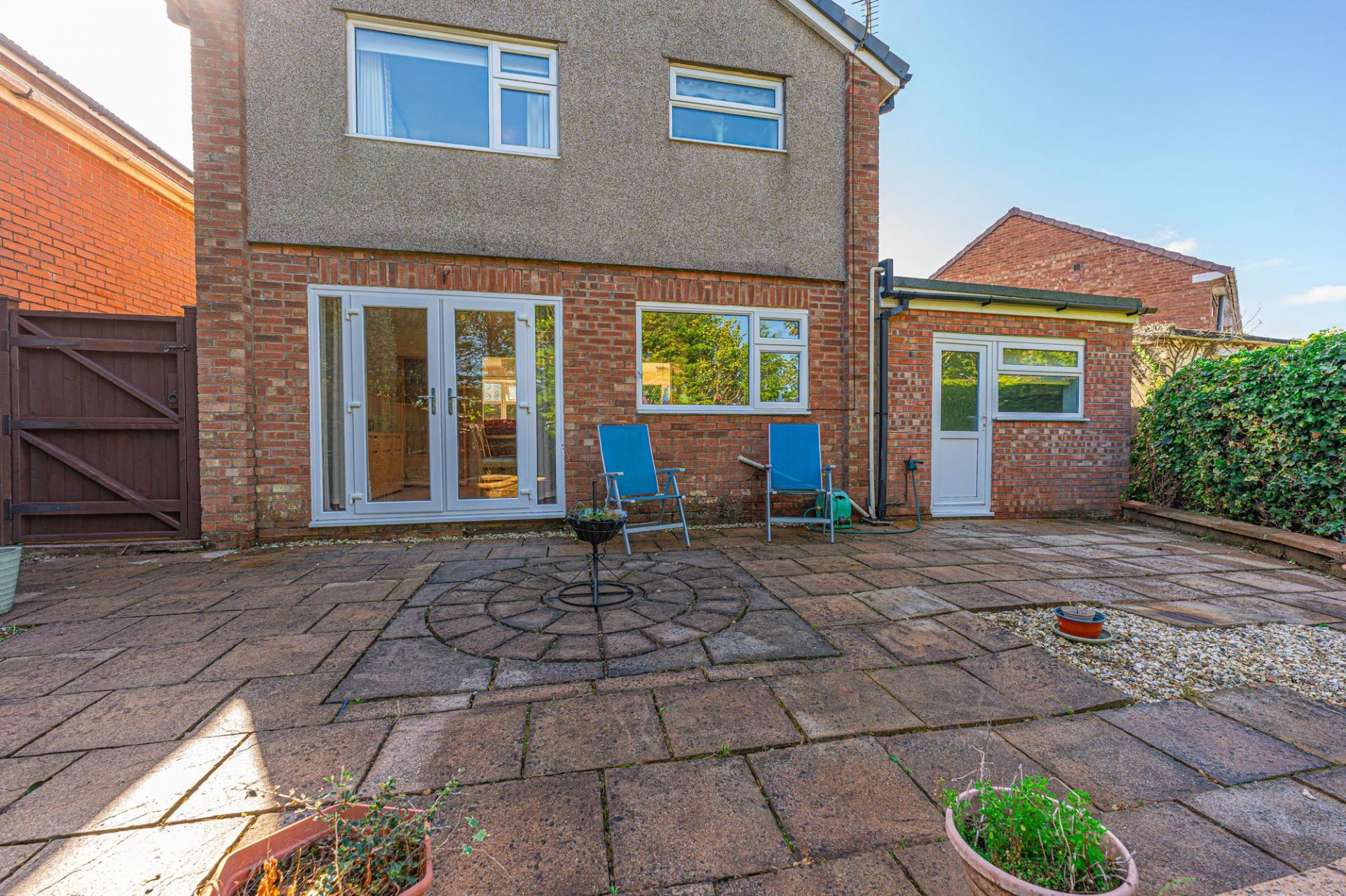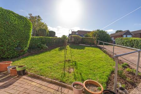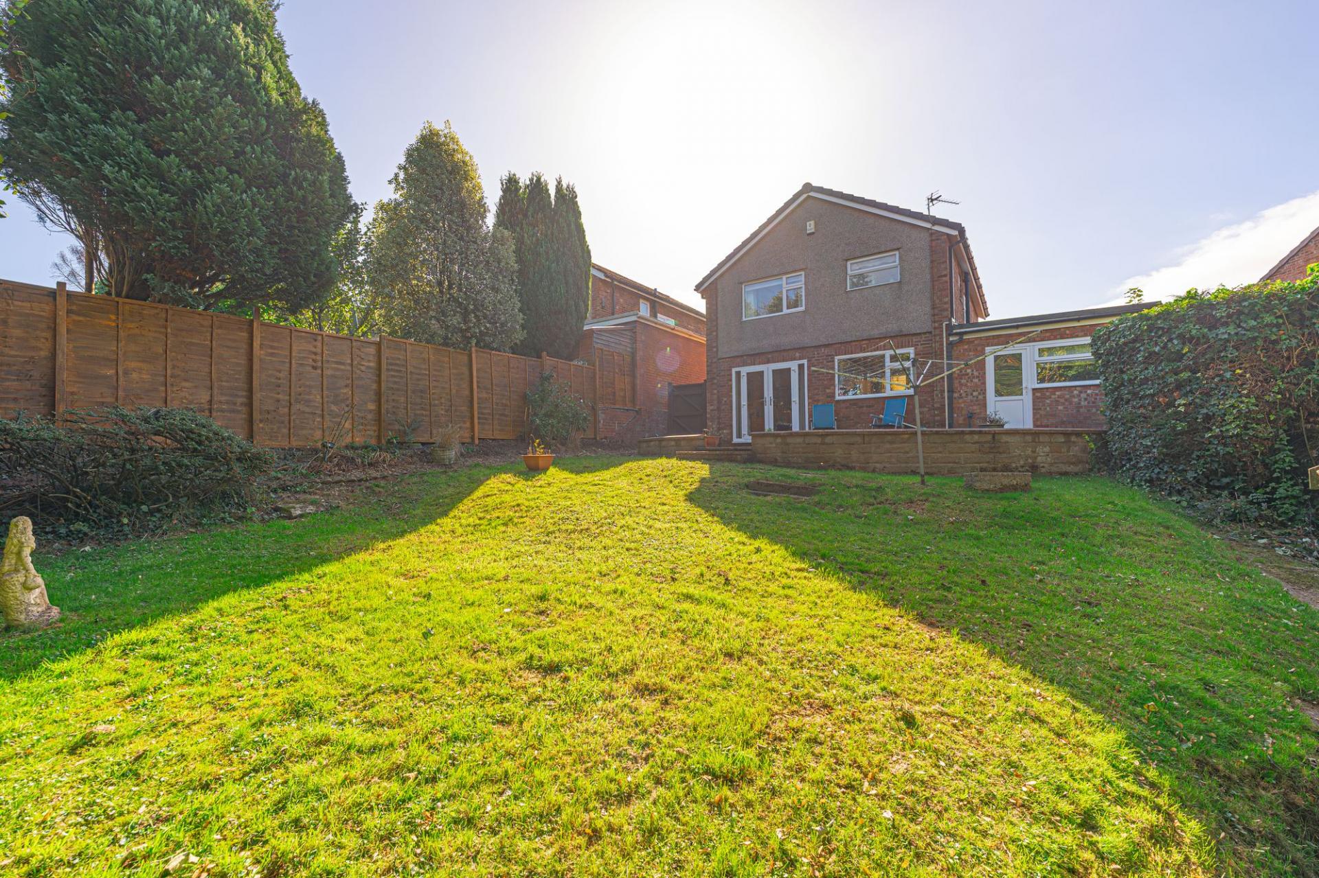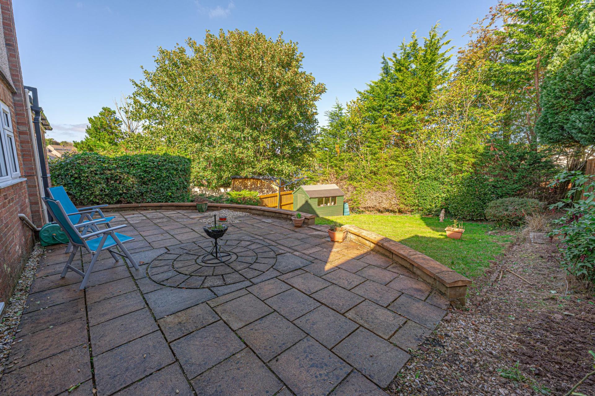 Stepping outside we arrive at the fully enclosed rear garden, which sits on a generously sized plot, with plenty of space to suit the whole family, while being perfect for entertaining guests. The garden consists of a large patio connected to the house - ideal for al-fresco dining and lounging, while a grass lawn extends beyond, where we can also find a useful storage shed.
