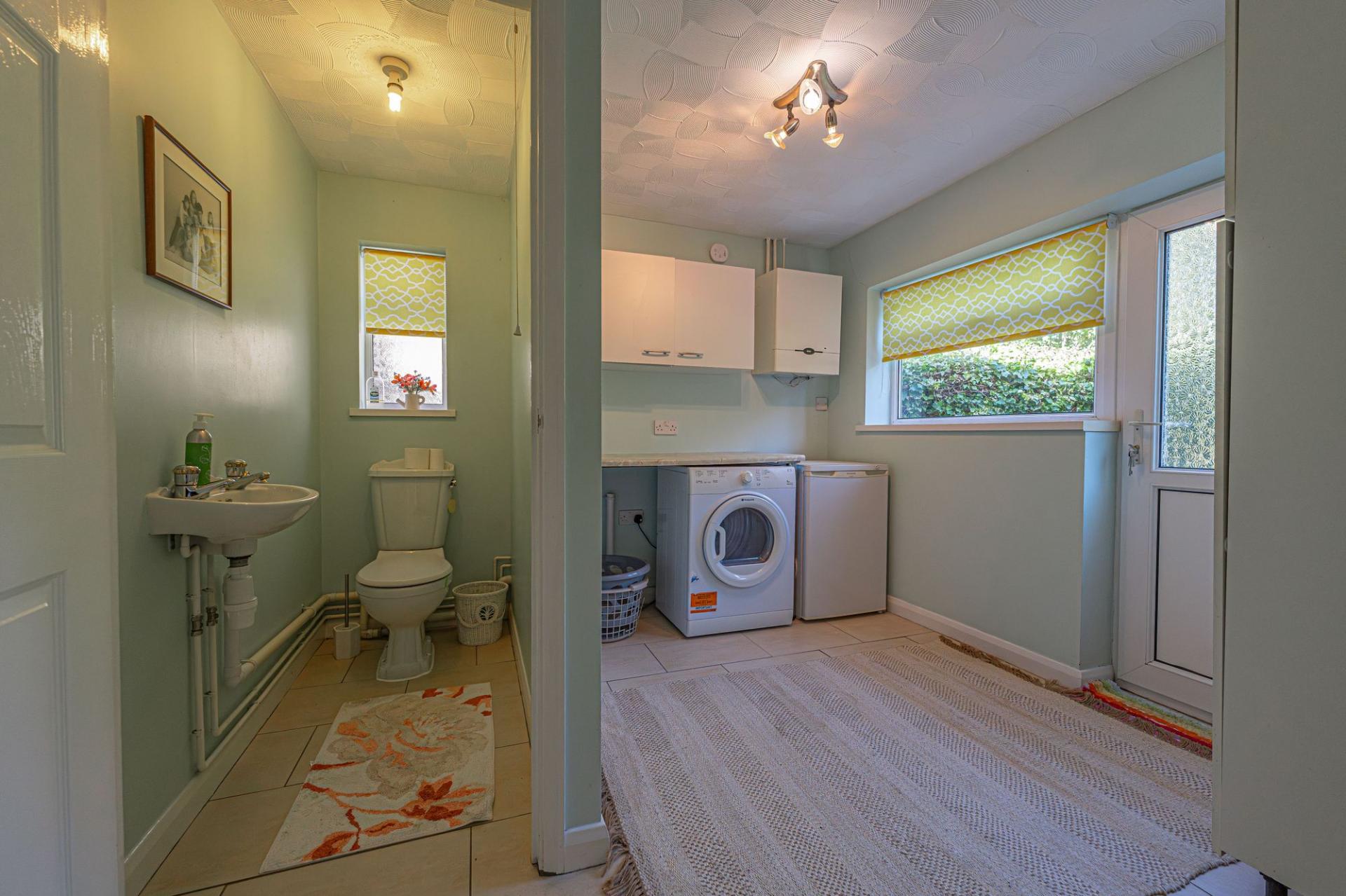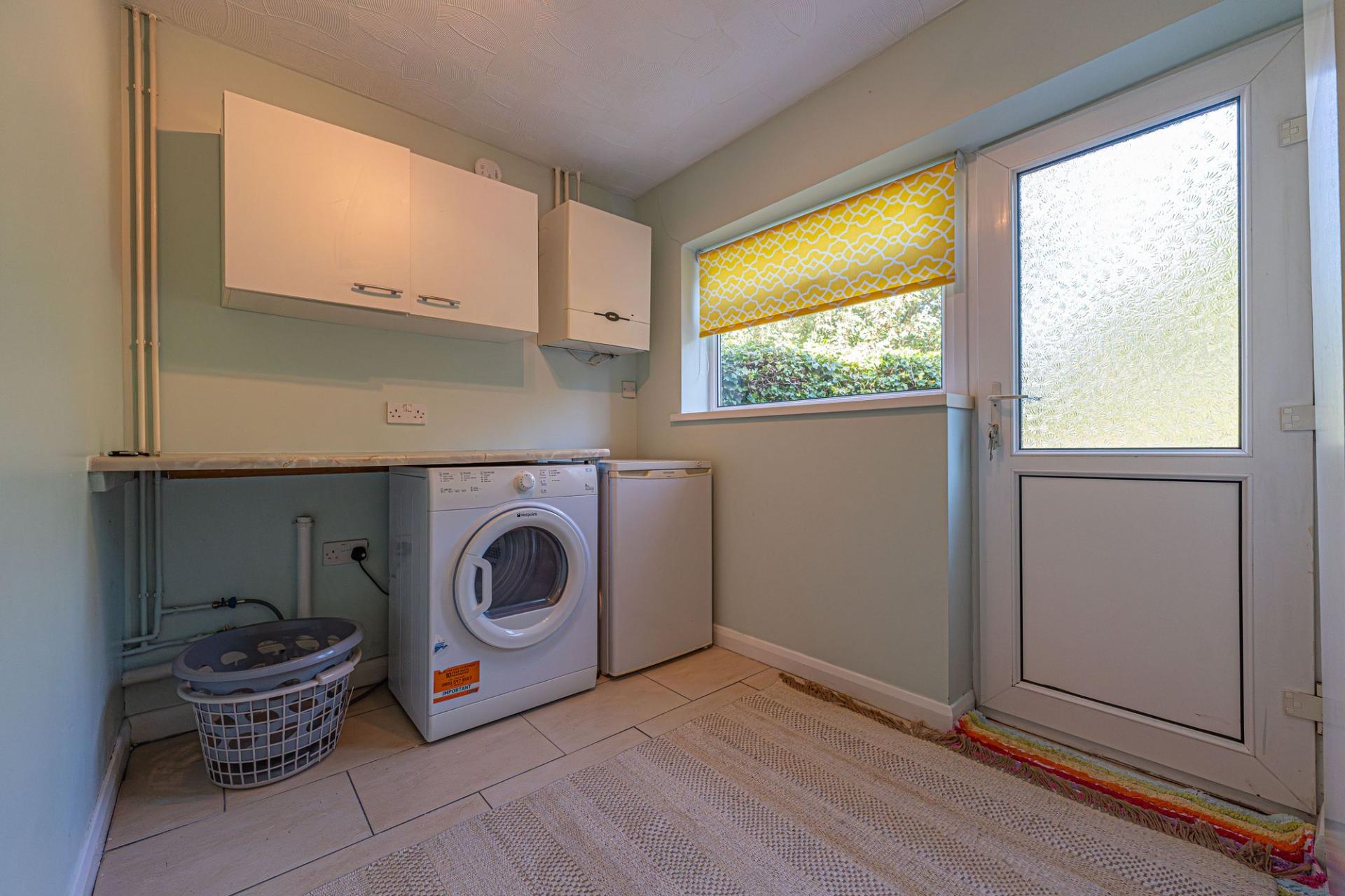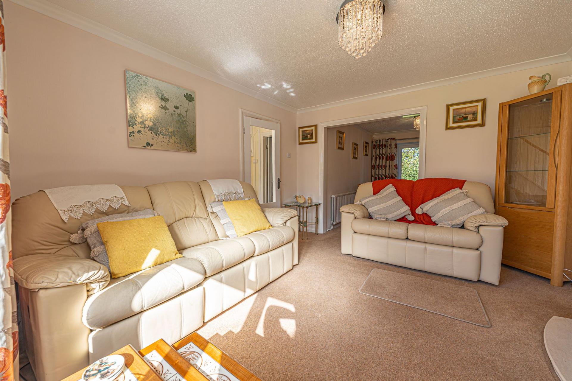We enter this well presented family home to the front, where we are welcomed into the living room, which connects via an open walkway to the dining room at the rear, with both rooms being well proportioned and flooded by natural light, with sliding doors at the rear that open to the garden. The practical kitchen is also positioned to the rear of the house, with a fitted hob and oven, and plenty of storage options through the various fixtures, which include a useful pantry cupboard. Neighbouring the kitchen we have the fantastic utility room and W.C, providing a great space for household management, and another access point to the garden. The utility room also features interior access to the garage, which is helpful for storage and sheltered parking.