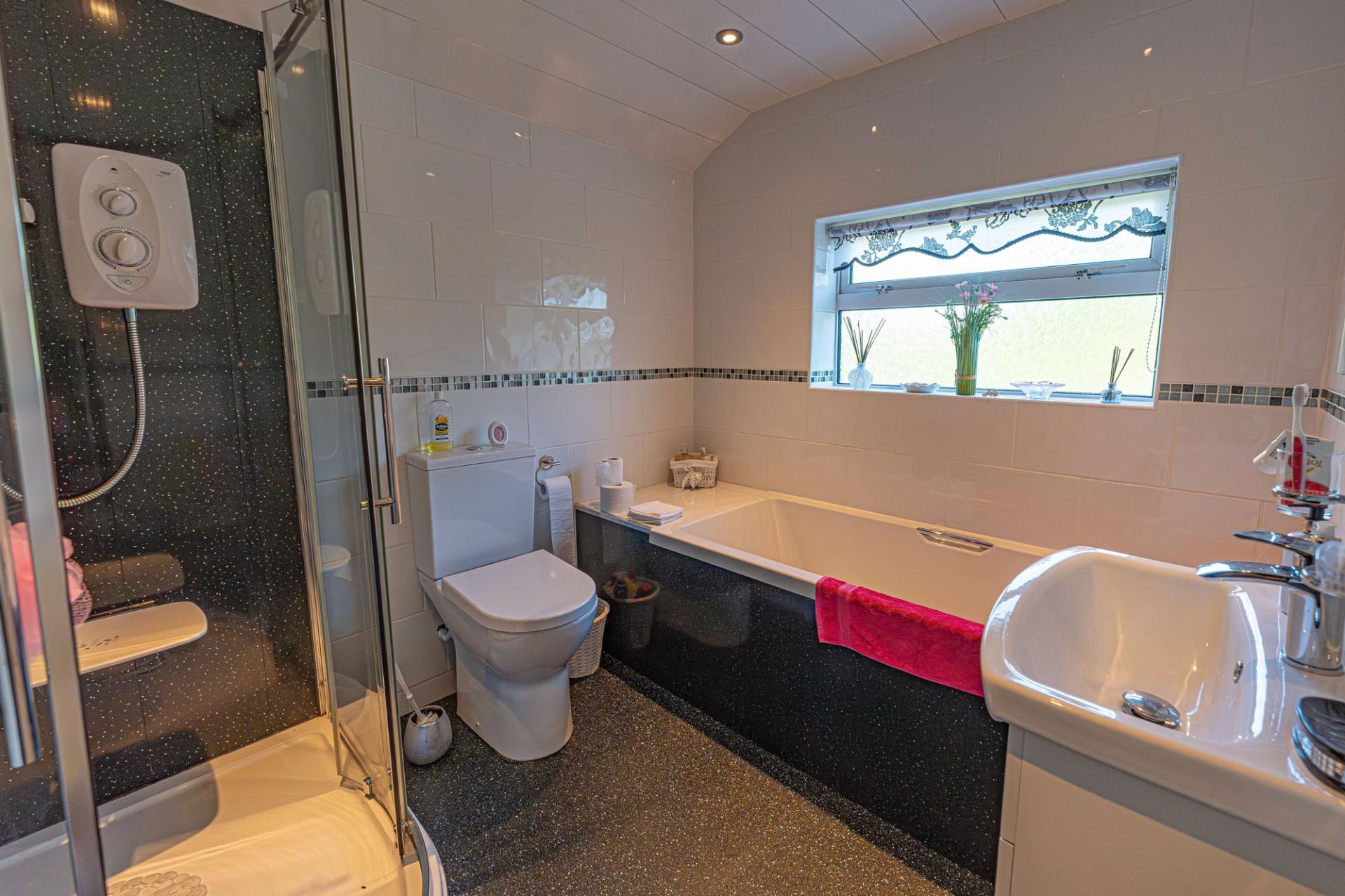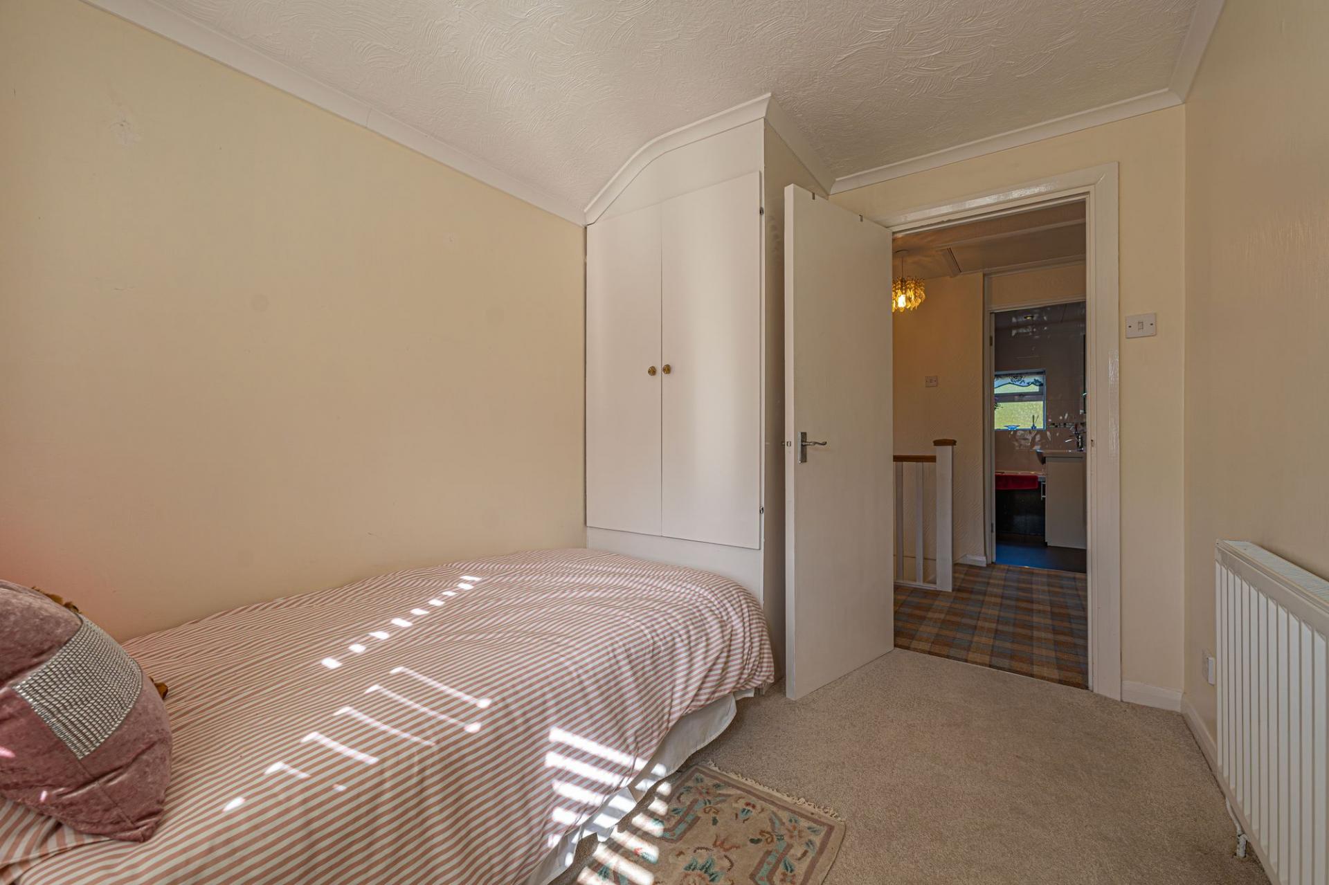 To the first floor we have the three bedrooms, two of which are spacious double rooms, with the third being a useful single, with the latter also being perfect for a home office, dressing room or nursery. All three bedrooms are equipped with fitted wardrobes to offer residents with a marvellous amount of fitted storage, while the family bathroom is also found from the landing, featuring a bath suite and a separate shower cubicle.