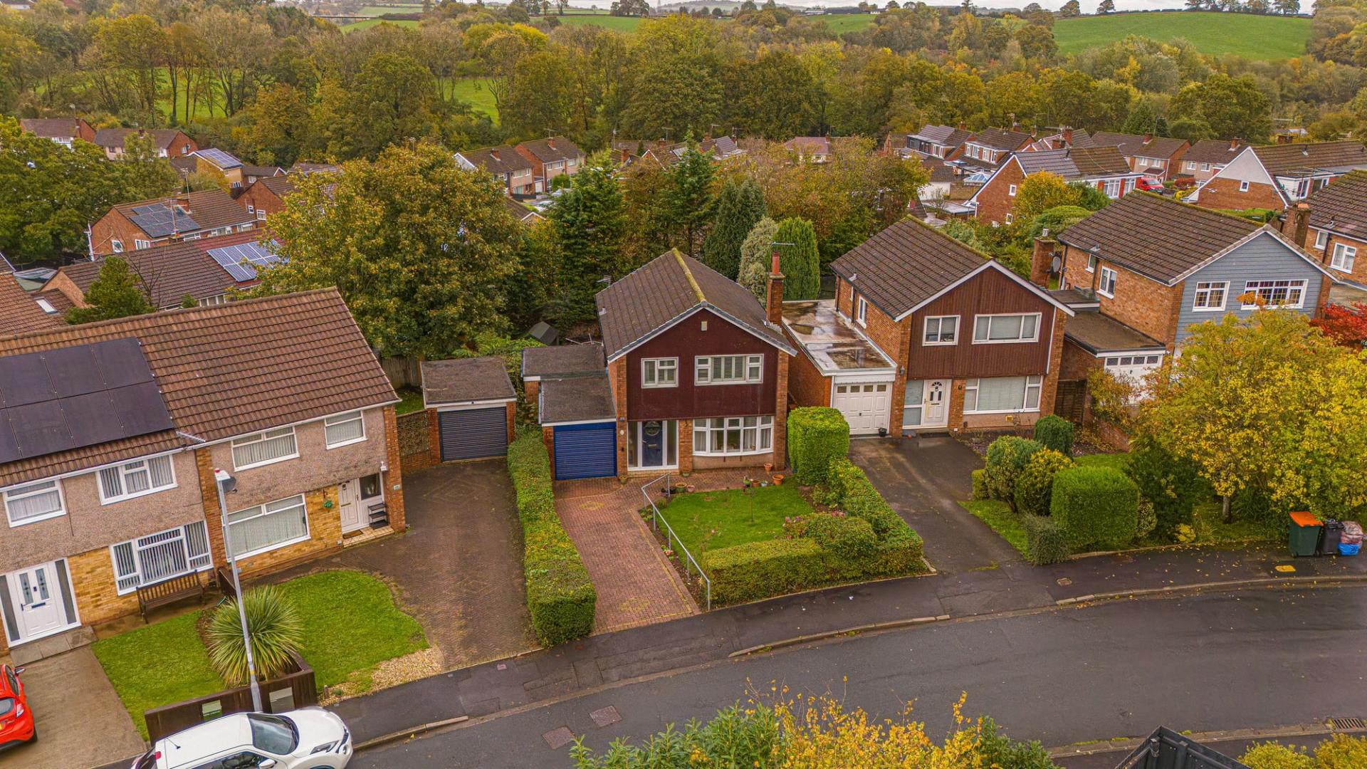 At the front of the house, another lawn space can be found to provide additional outdoor space, and a warm welcome to the property, with the large driveway being able to fit two to three vehicles when parked in tandem.