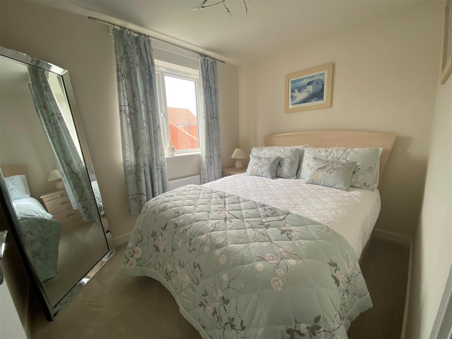 Bedroom One - 3.67 x 2.88 (12'0" x 9'5") - Having fitted double width full-height wardrobe and mirrored doors with hanging rail and shelving. Front aspect double glazed window and radiator. Further storage cupboard over stairs.