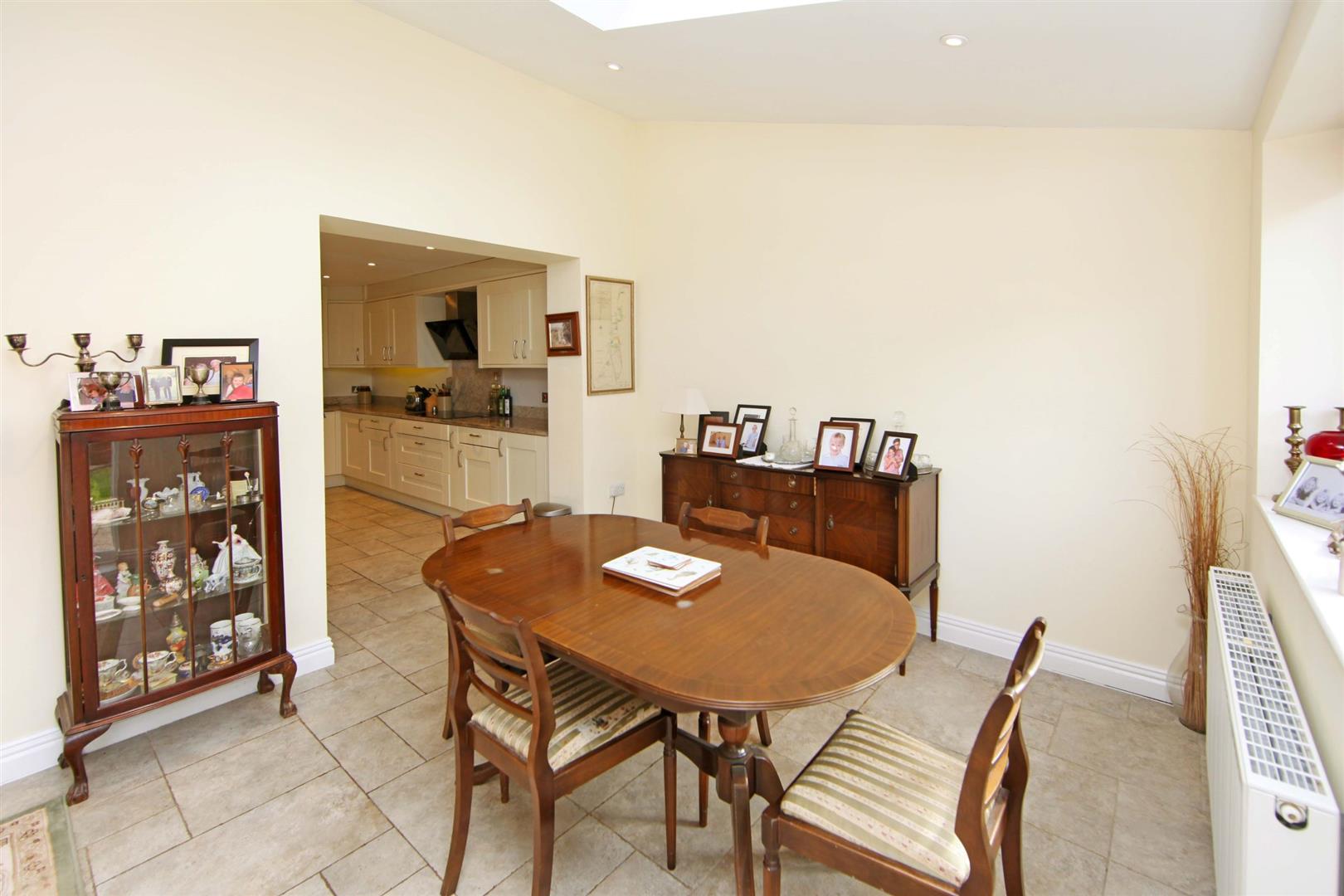 Dining area with radiator and uPVC framed double glazed window with outlook to rear garden. Recess spotlights and electric operated Velux rooflights with integrated blind. Tiled floor. Opening to....