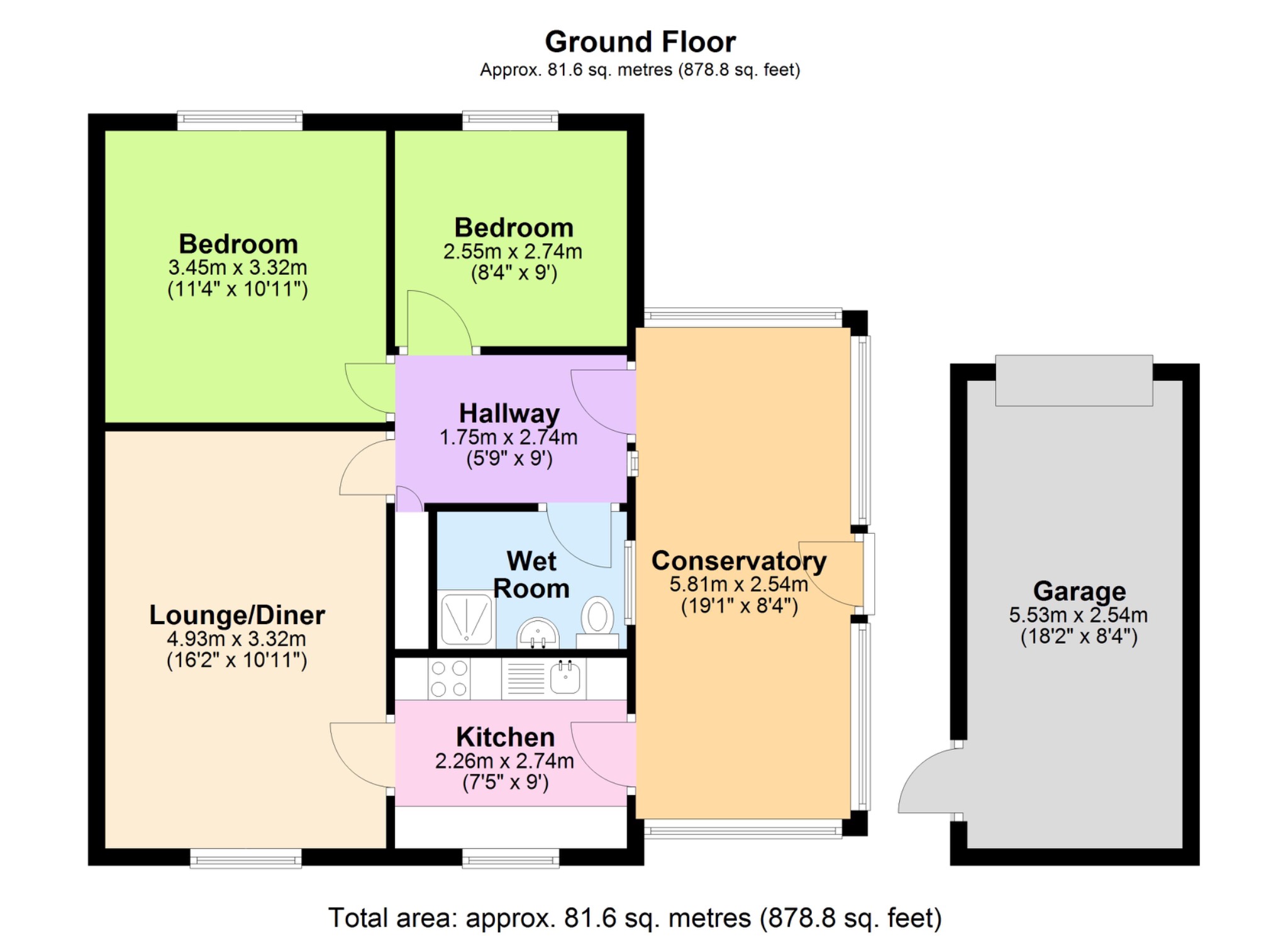 The home houses two generously sized bedrooms. Each bedroom offers ample space for furnishings and personal touches, providing peaceful retreats at the end of the day. These rooms are designed to offer comfort and privacy, making this bungalow an ideal home for individuals or couples seeking a manageable yet spacious property. Serving the property is a convenient wet room, thoughtfully designed for accessibility and modern comfort.