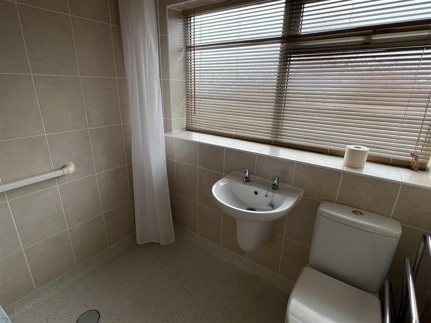 Wet Room - Having fully-tiled walls, electric shower head and hand rail. Wall mounted wash basin and low-level WC. Side aspect double glazed window.