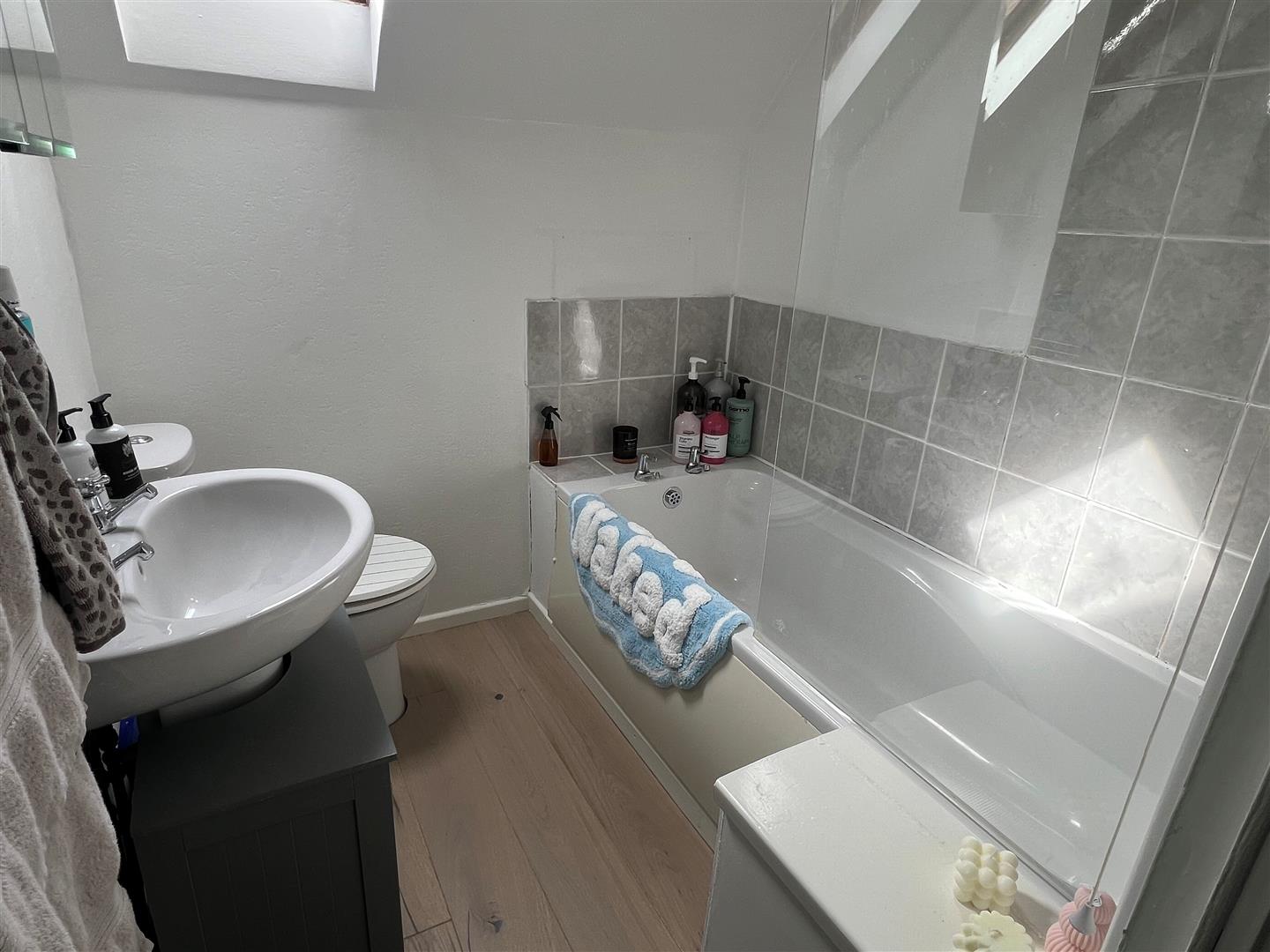 Bathroom - Being partially tiled having a panelled bath with overhead electric shower unit. Low-level flush WC and pedestal wash hand basin. Sky light and radiator.