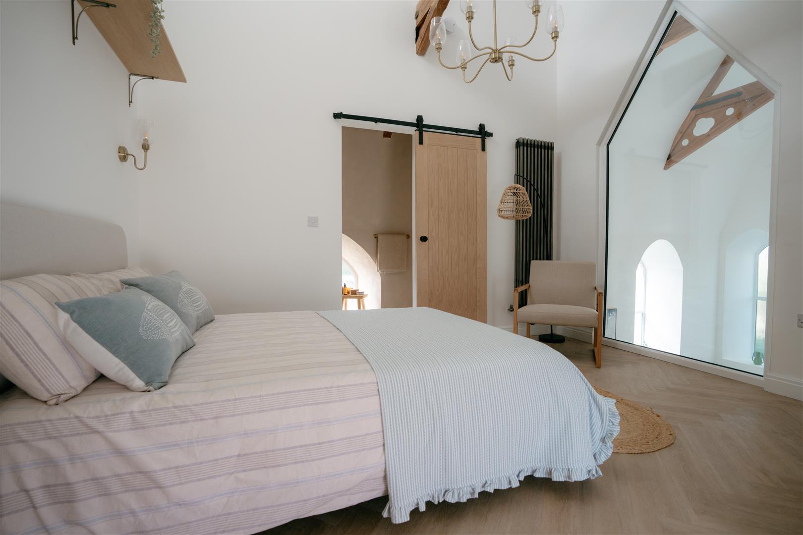 Built from local rubble stone with granite dressings, the chapel displays elegant pointed-arched windows, steeply pitched roofing, and a gabled entrance porch, all characteristic of its Gothic style. Inside, the thoughtful residential conversion has retained the integrity of the original architecture while introducing modern comfort and contemporary design, creating a distinctive and atmospheric living space.