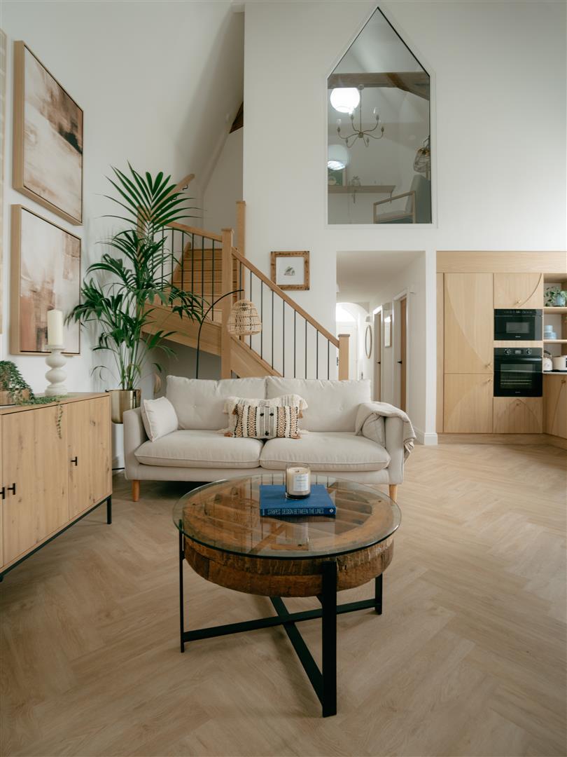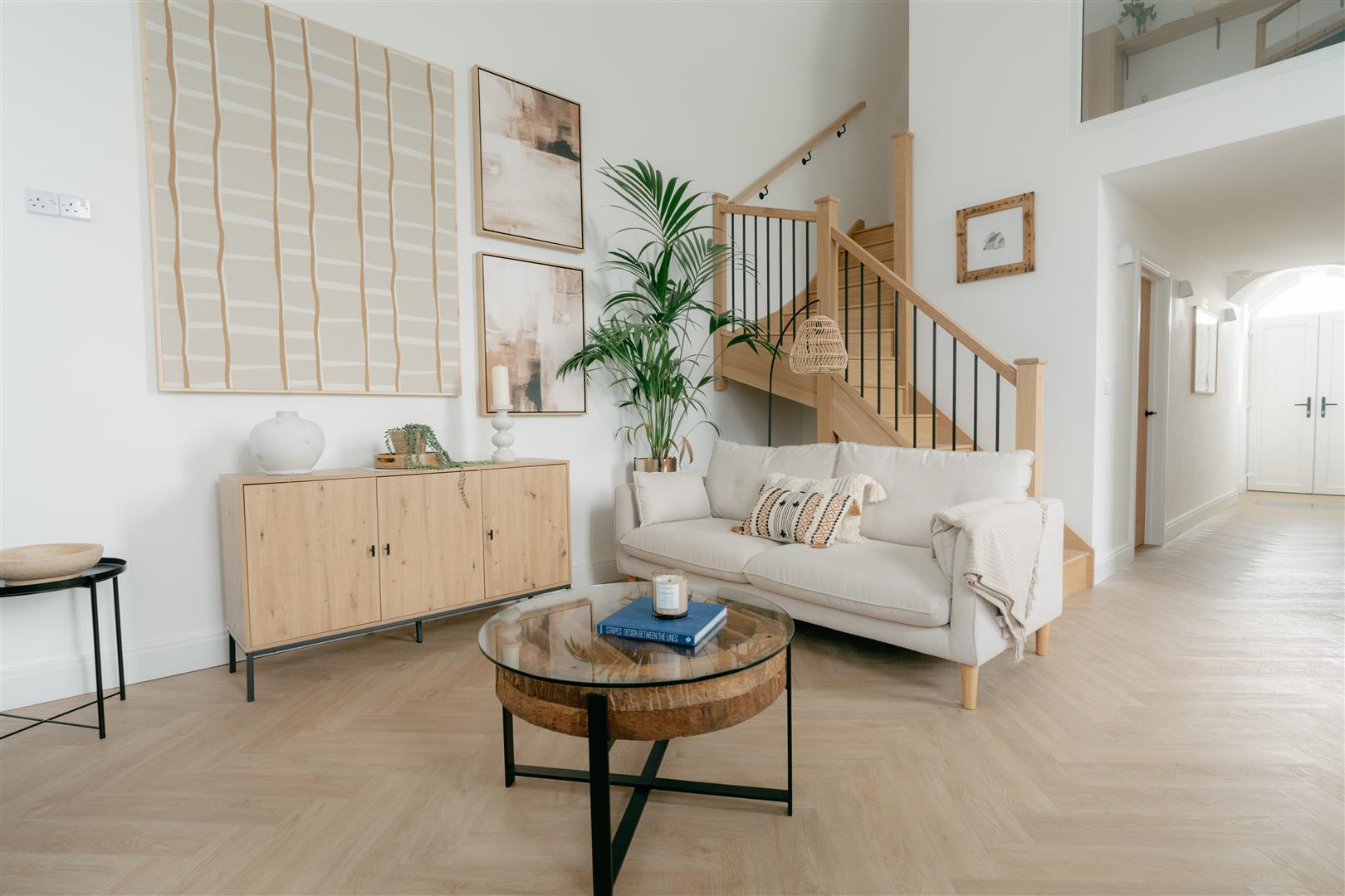 Hallway - Upon entering Lane Chapel, you are greeted by an inviting hallway with beautiful wooden herringbone flooring, which runs throughout the property, leading into the open-plan living area. Doors lead off the hallway to;