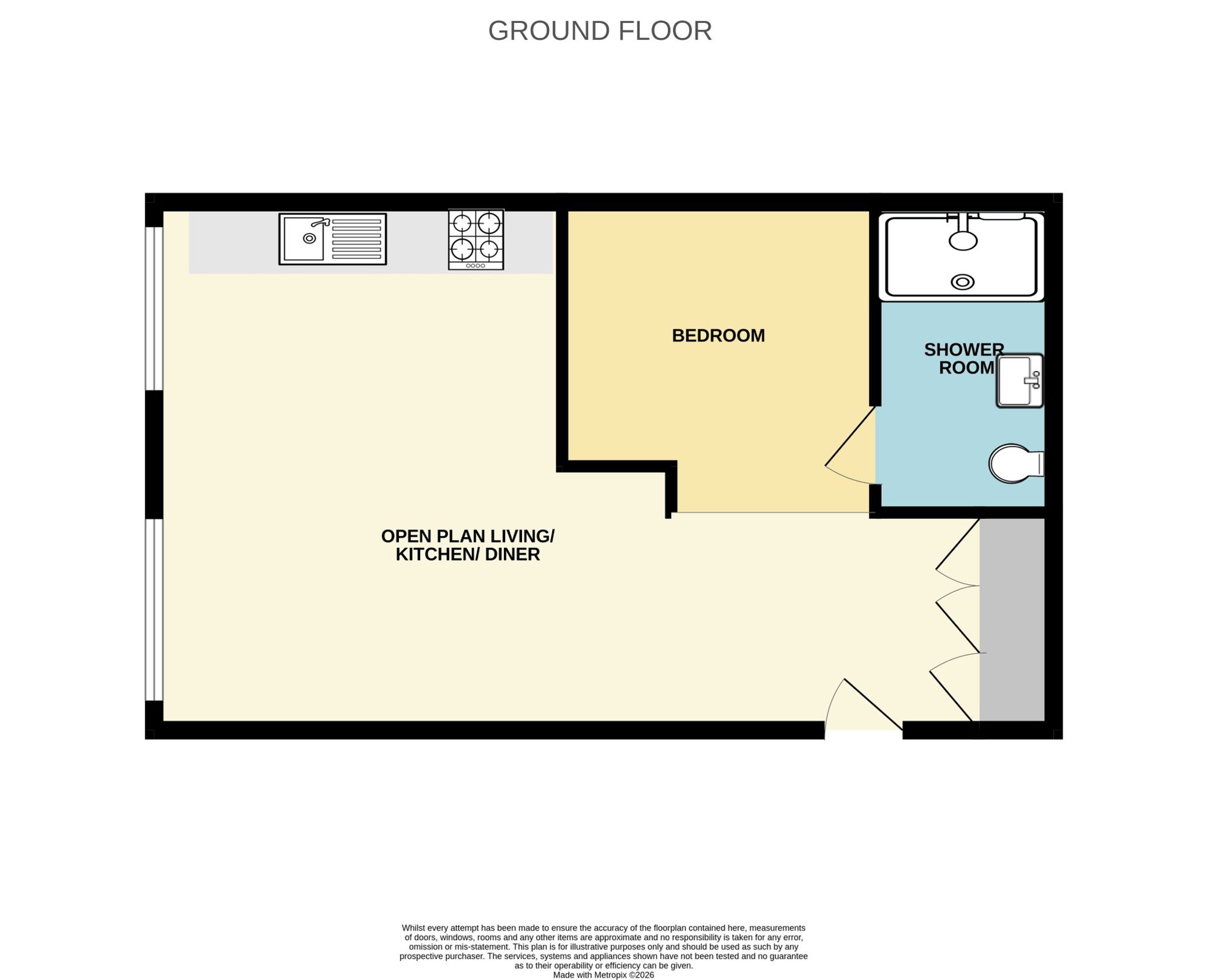 - BRIGHT OPEN PLAN LIVING/KITCHEN/BEDROOM SPACE